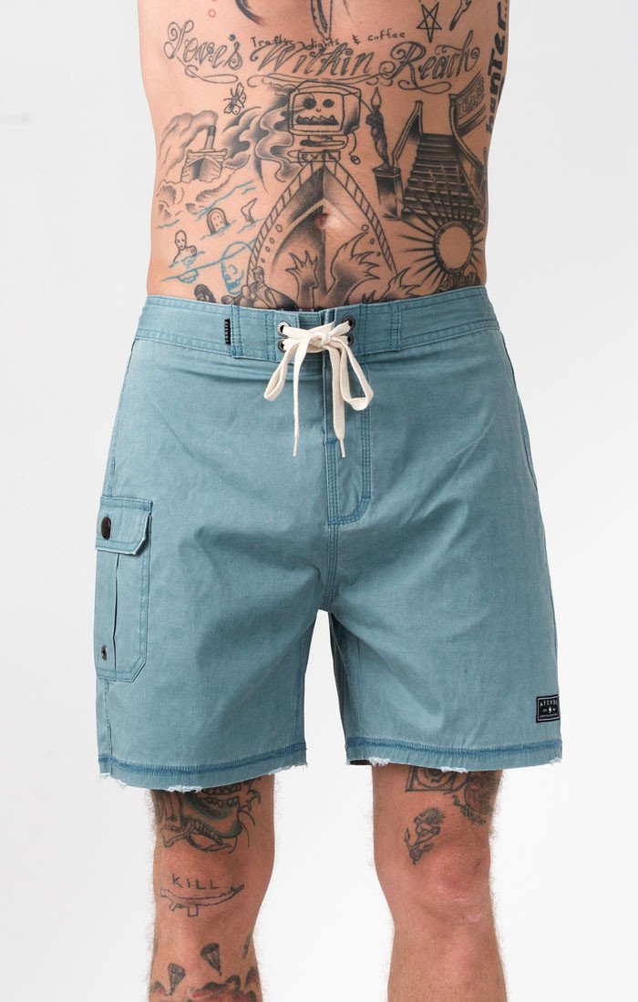 Afends Easyrider Boardshorts are our go to surf trunks! Featuring the everlasting fixed waist, classic velcro fly, drawstring front, traditional length (sits just above the knee so it doesn't catch), and single back pocket with velcro tab and elastic key loop.|