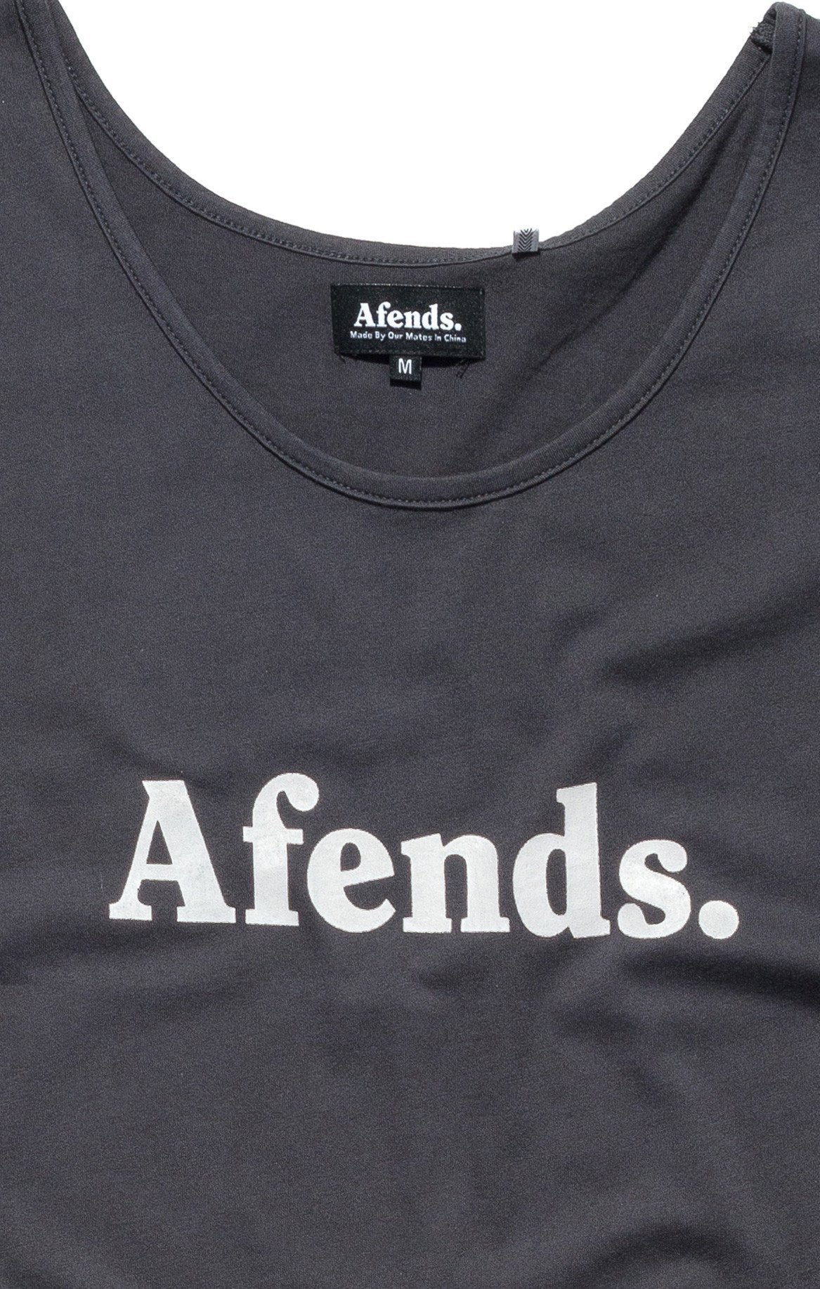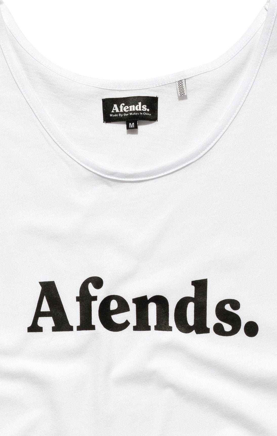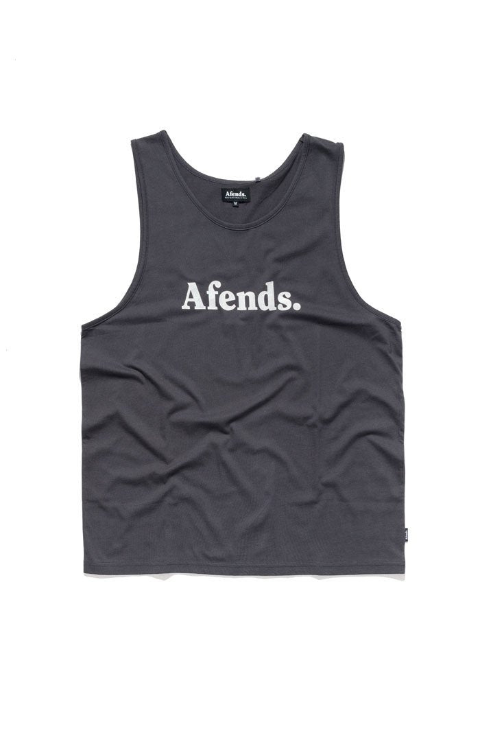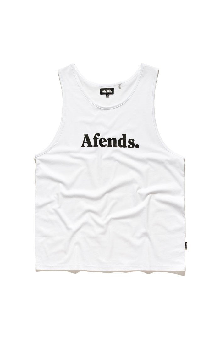 The Afends Singlet is a slim, comfort fit with open neck, wide shoulder straps, bottom raw edge (no hem), and small neck and armhole edging.