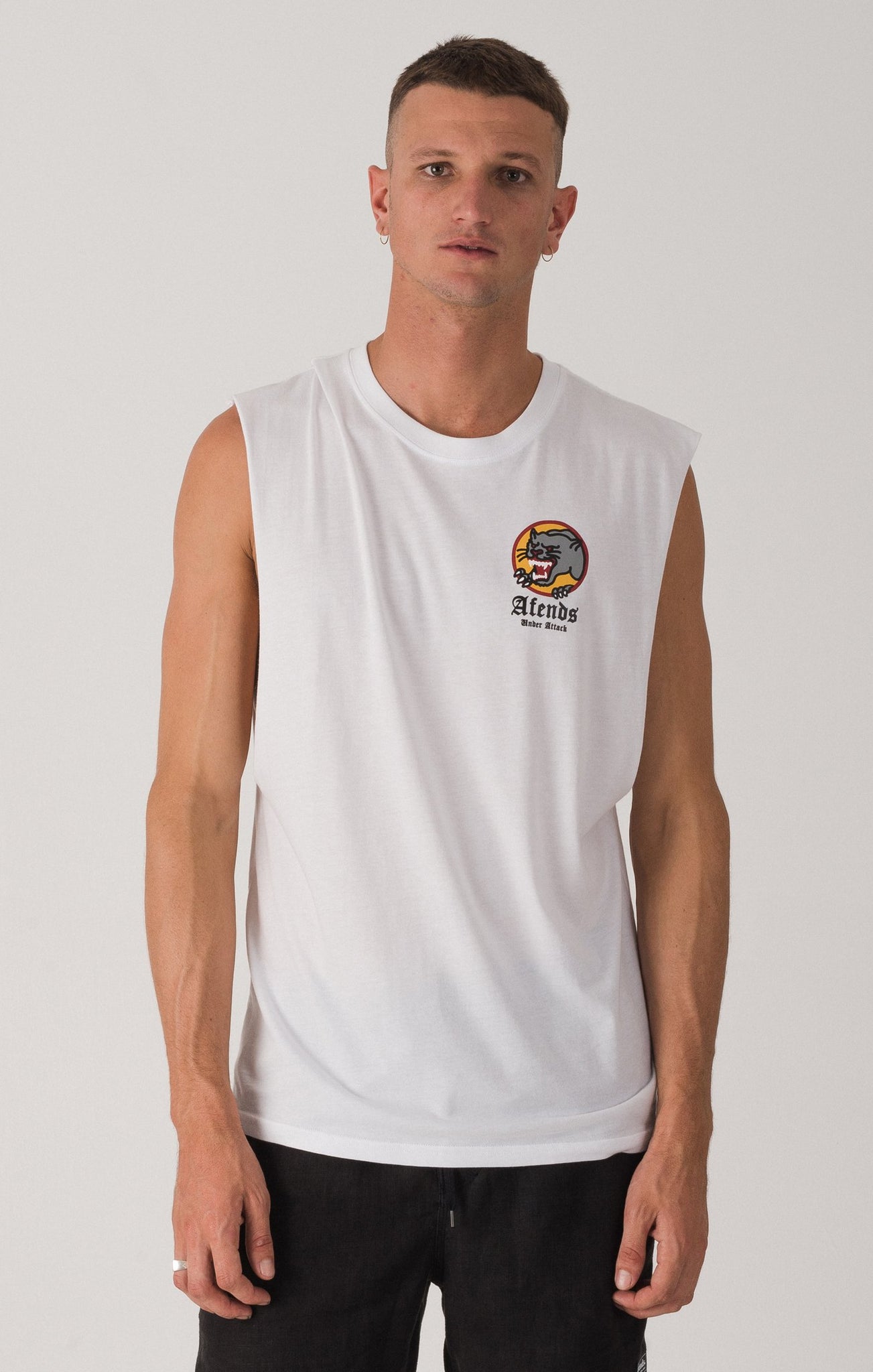 The Afends Bandcut is a comfort fit, sleeveless tee cut with over-sized raw-edge armholes and cotton ribbed neck band. Cut the same as our 'Slim Fit' tee.