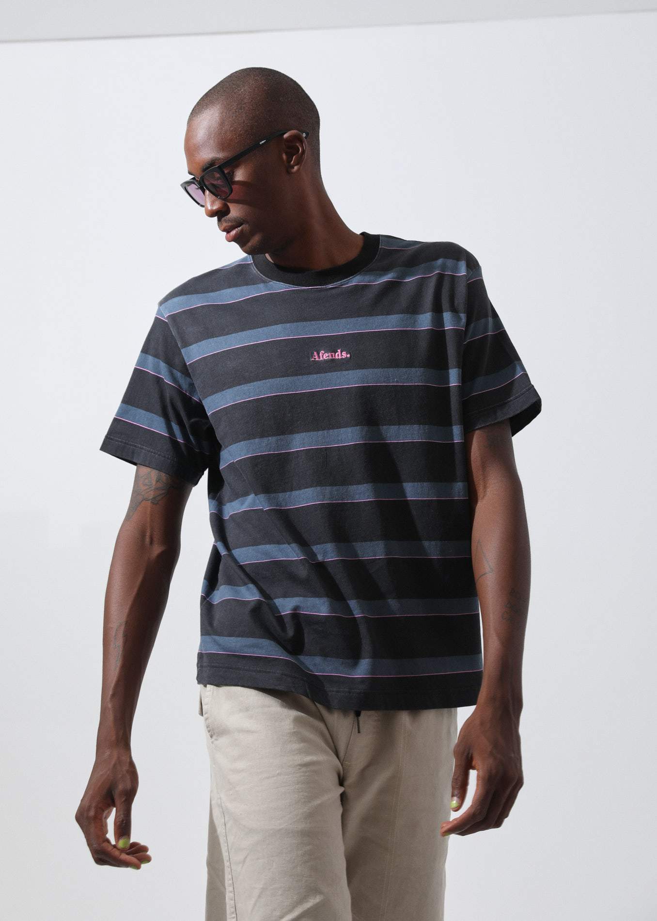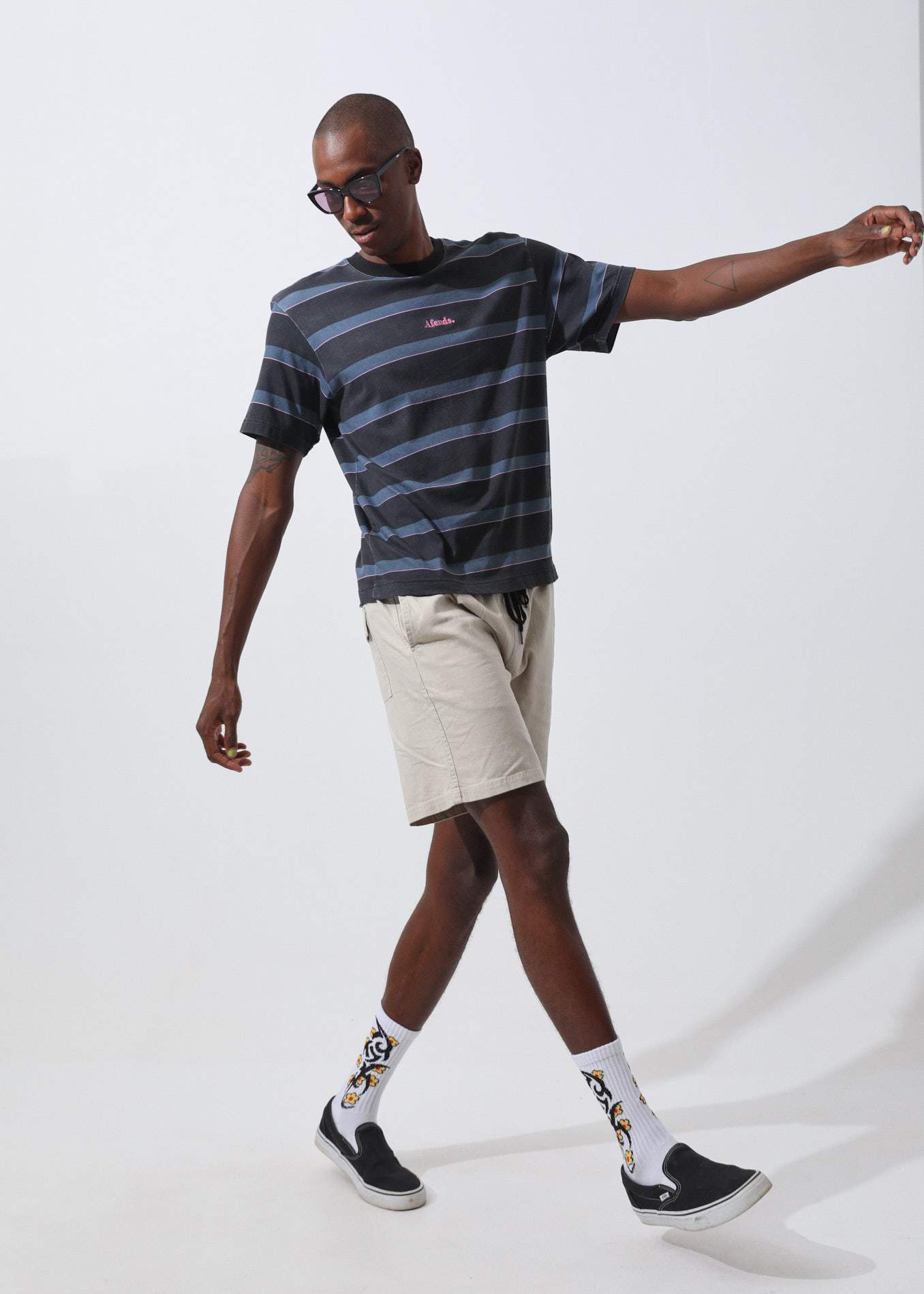 The Doof Retro Fit Tee offers a nonchalant pop of colour to your t-shirt line-up. The short sleeve tee is designed with a bold stripe print with contrast neckline and embroidered Afends logo on the chest.