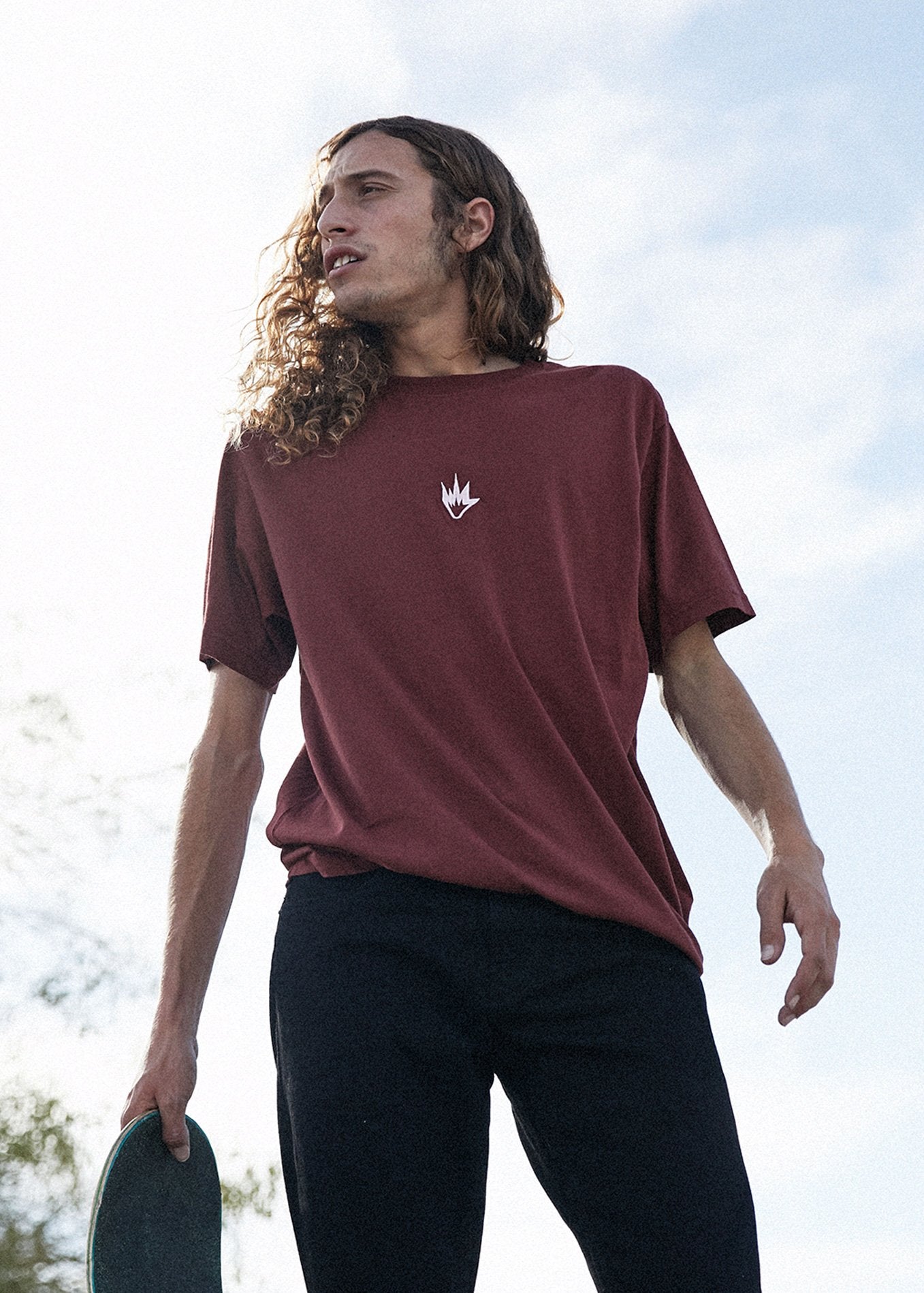 The Afends Flame Logo Tee is cut in our favourite retro fit with a higher neckline and a thicker ribbed crew neck. Spun from super soft cotton jersey, the short sleeve t-shirt comes in a bunch of easy-to-wear everyday colours and is finished off with our signature Afends flame logo embroidered on the chest.