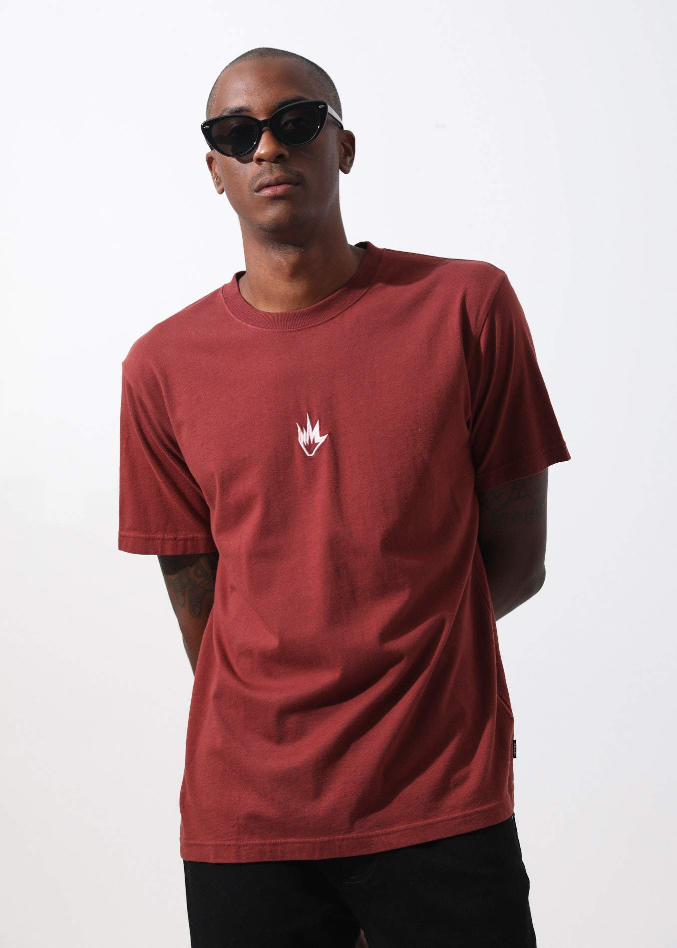 Afends Mens Flame Logo - Retro Fit Tee - Rojo