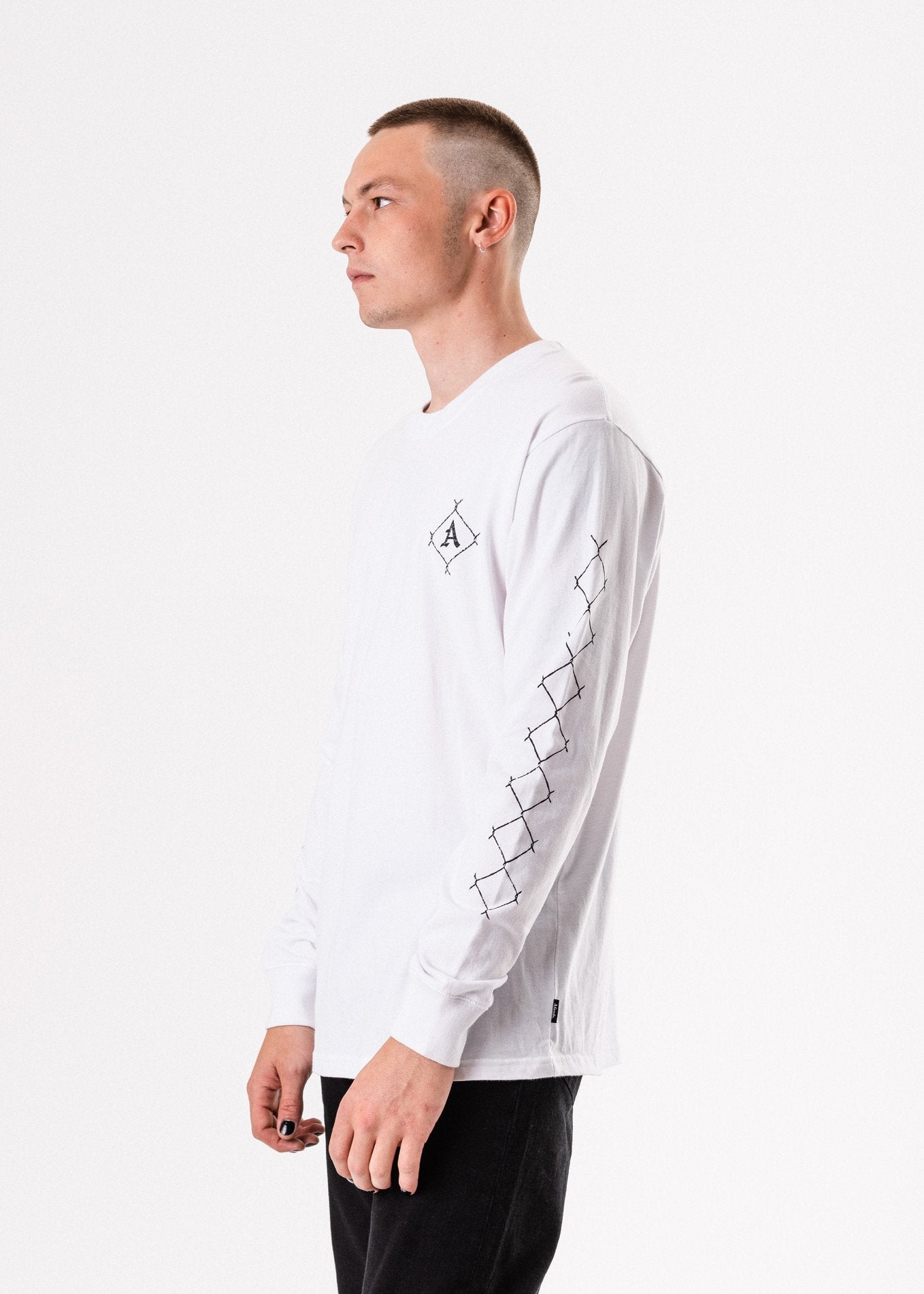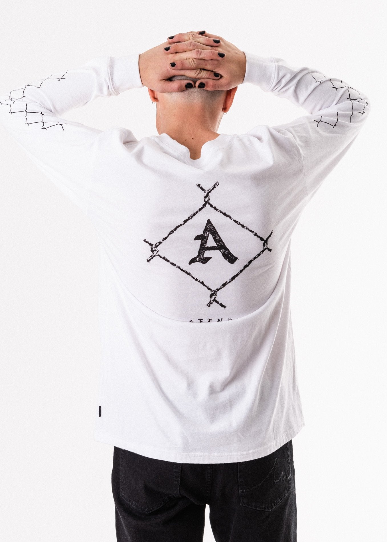 Our 'Get Free' long sleeve tee is a mid-weight retro fit tee. It's got a slightly boxier shape than our standard fits. Also featuring a thicker ribbed neck, cuff and hem band.