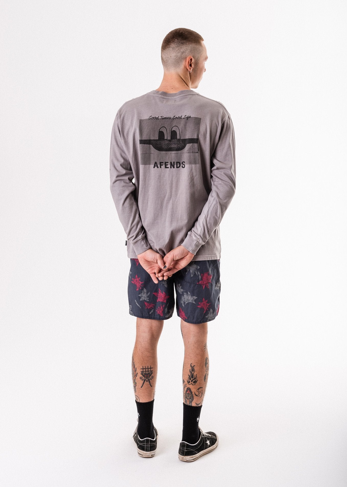 Good Times, Good Life. This is a mid-weight long sleeve tshirt in a retro fit - slightly shorter than our standard fits and also slightly wider.