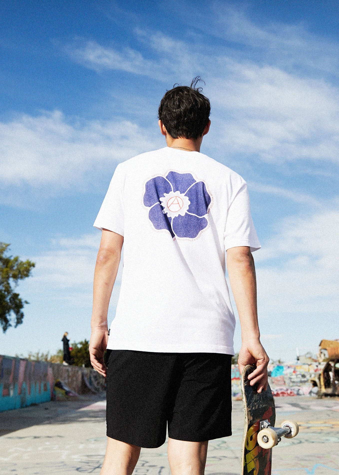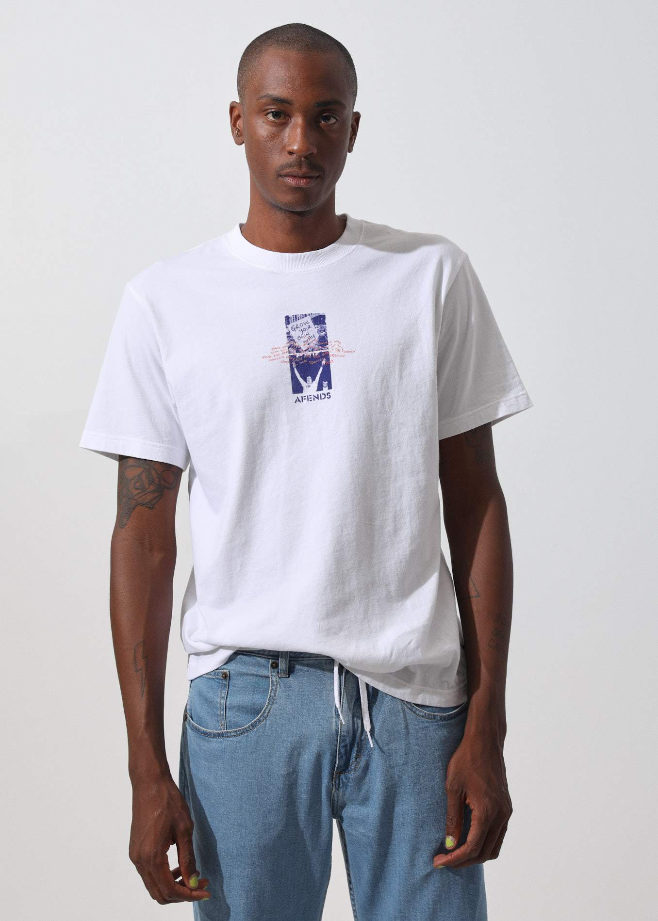 The Grow Your Own Way Retro Fit Tee features a custom Hawaiian punk collage print blended with our very own propaganda poem to make you stop, think and smell the roses.