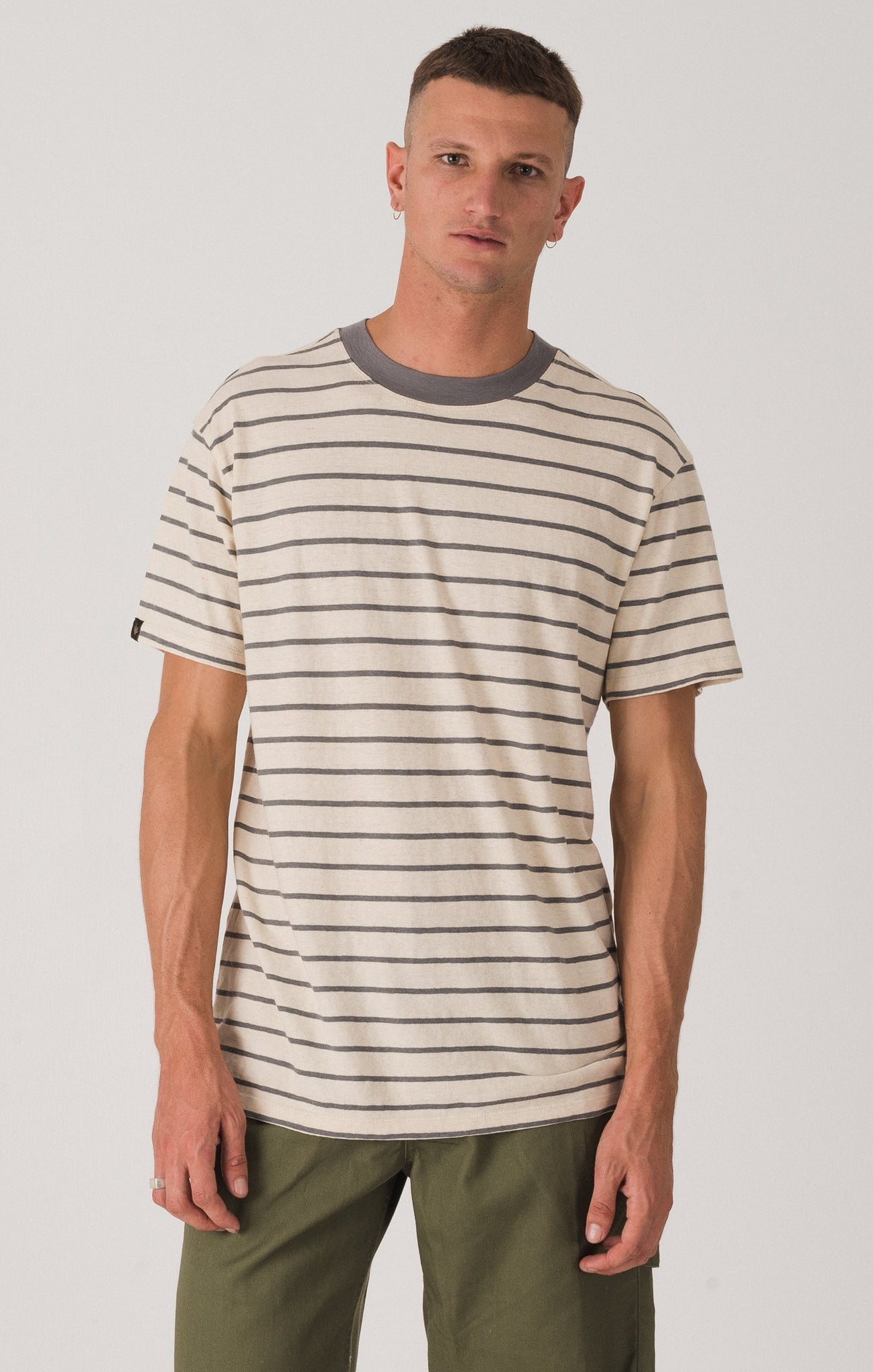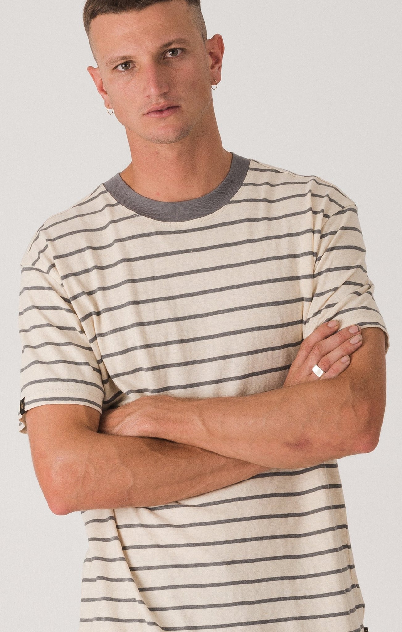 The Hemps retro fit tee is made from a blend of organic cotton and hemp in a yarn dyed natural & charcoal stripe and contrasting neck band. It's organic blend mix means this tee is soft yet durable - hemp wears in, not out - and best of all, eco-friendly! Afends retro fit tee has a wider body & sleeve than your standard fit tee, giving it a more relaxed fit.