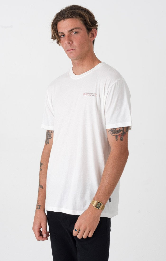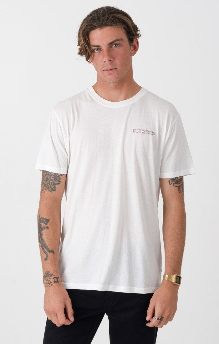 The mens Layers T-Shirt is cut to our standard fit, a classic design that fits just right with a narrow ribbed neckband. Featuring a retro red to white gradient print of AFENDS down the back and a simple, subtle contrast logo on the front left chest.