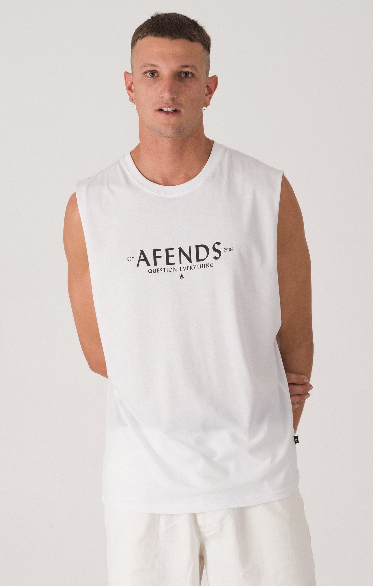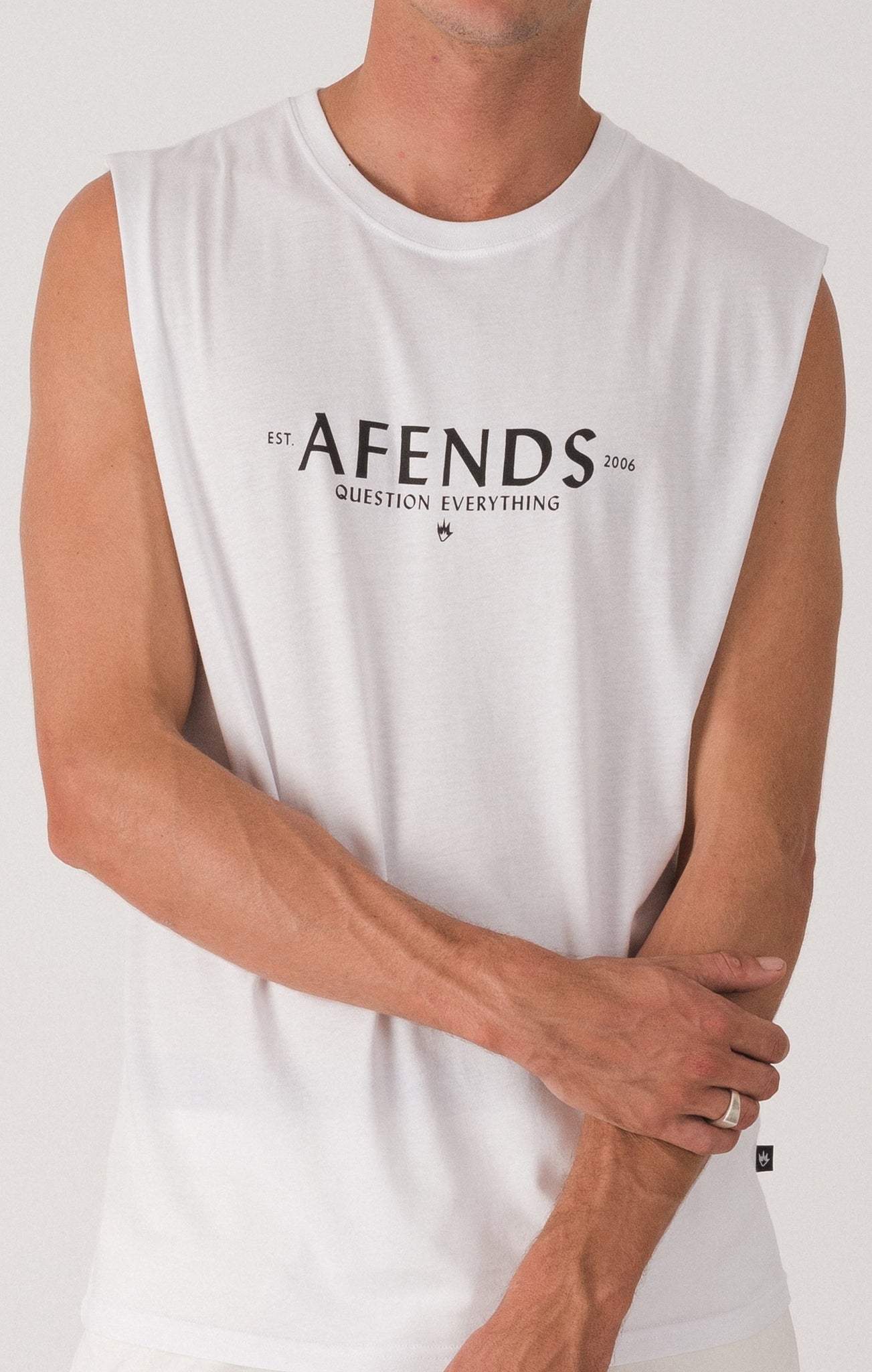 The Afends Bandcut is a comfort fit, sleeveless tee cut with over-sized raw-edge armholes and cotton ribbed neck band. Cut the same as our 'Slim Fit' tee. Logo Bandcut Tee100% Cotton - 145gsm JerseyGarment SoftwashAfends Loop Label on Lower Left Side-seam