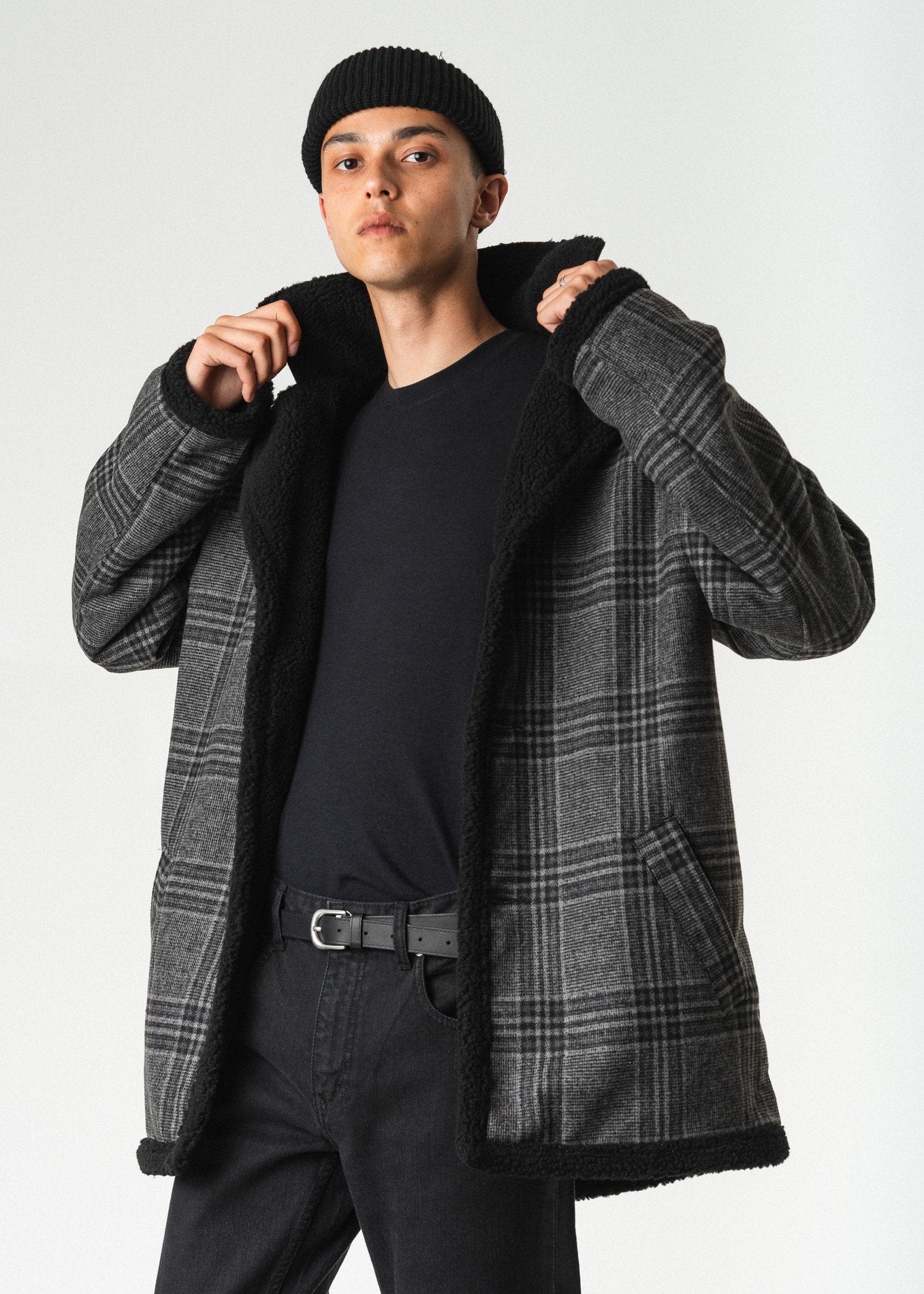 Effortlessly stylish and designed for a lifetime of use, the coat is constructed with a brushed wool check exterior and full sherpa lining to keep you warm on those cold winter days.