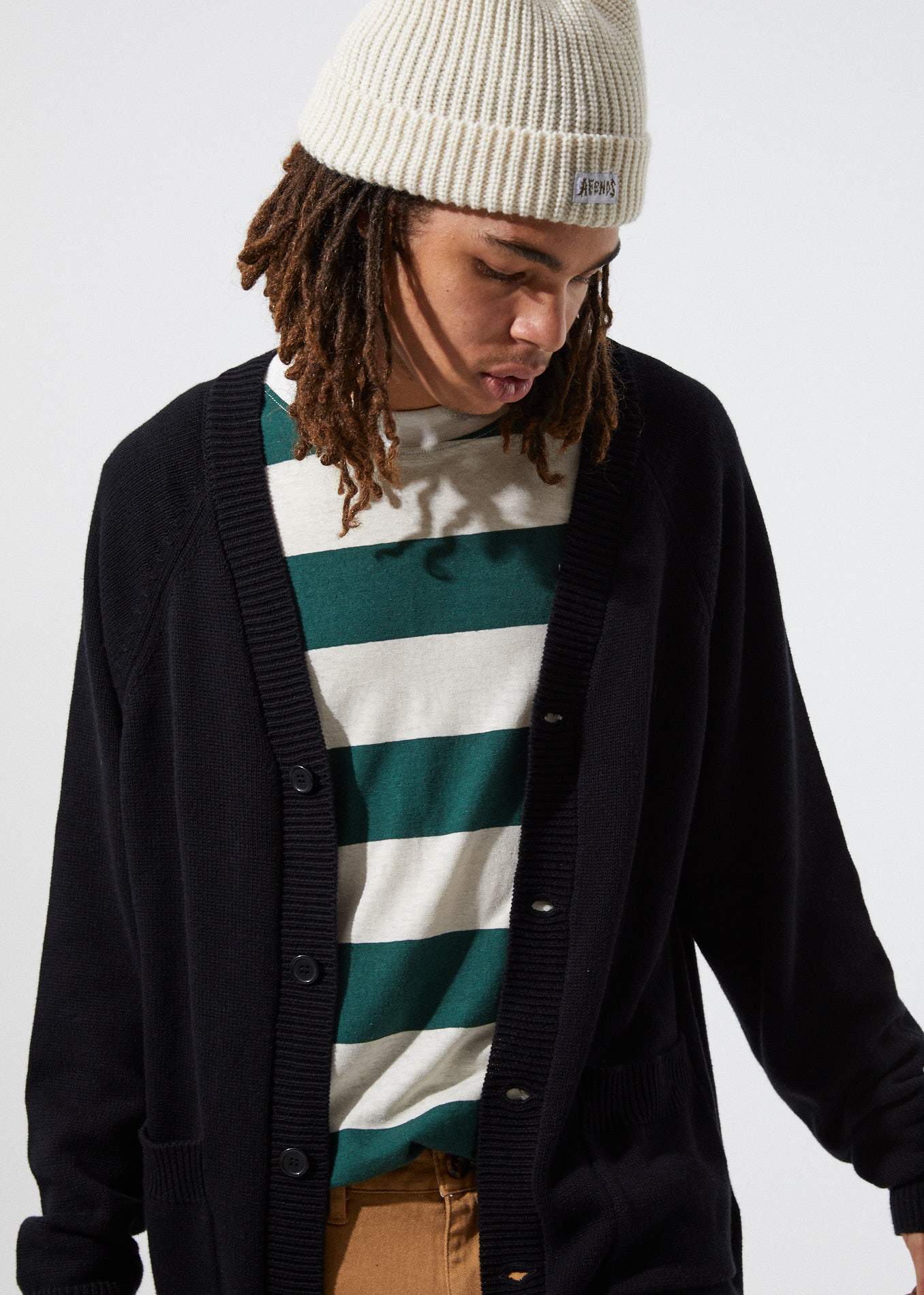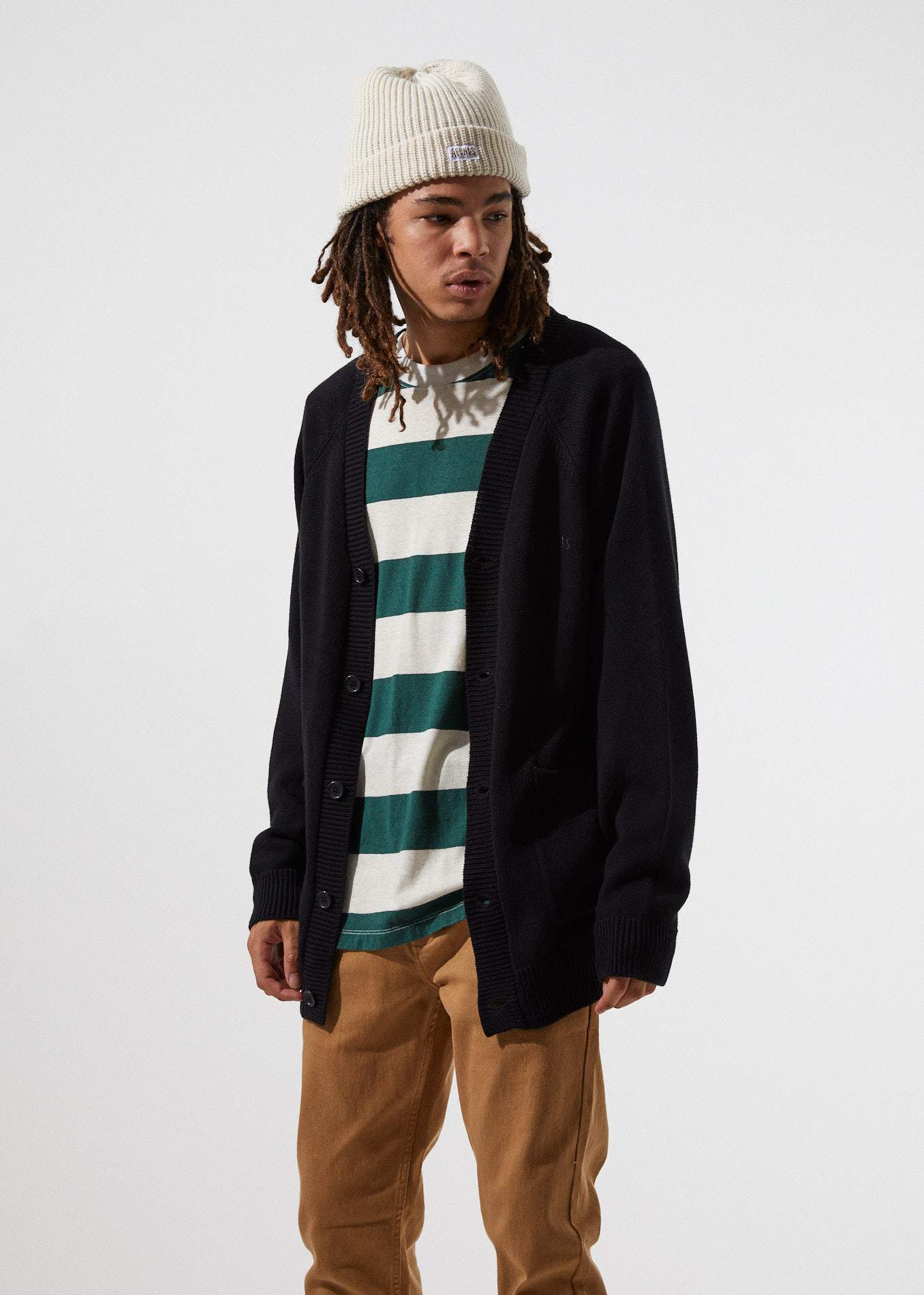 Our Bleach Knit Cardigan is a 90's revival with an Aussie grunge feel. The knitted cardigan is made from super soft cotton and features front patch pockets, ribbed trimming and finished with embroidered Afends logo.