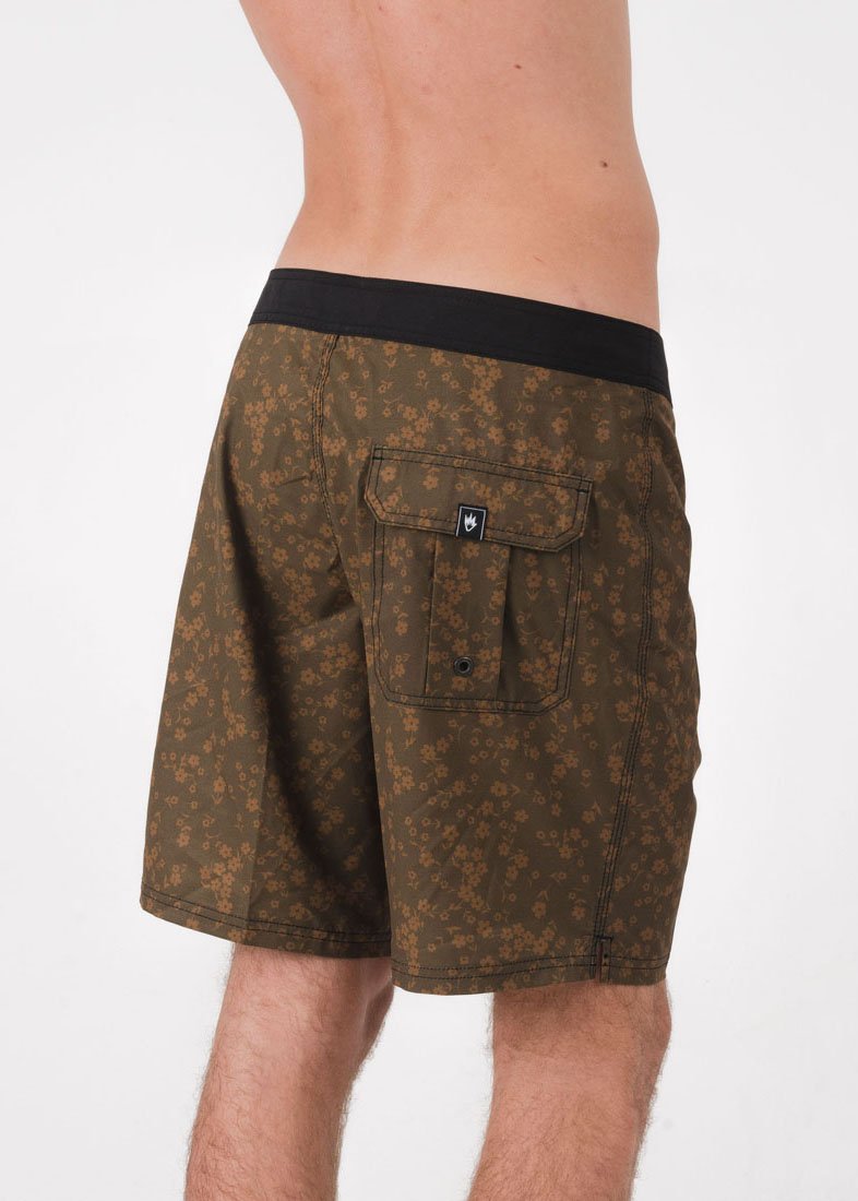 Introducing our Blood Rose Boardshorts with an everlasting fixed waist and a new vintage floral army print. These surf trunks are cut to our 2-way stretch block and feature a classic velcro fly with drawstring for extra security and comfort, internal back pocket with an elastic loop and velcro tab to keep your keys & wallet safe and heavy duty eyelets for durability.