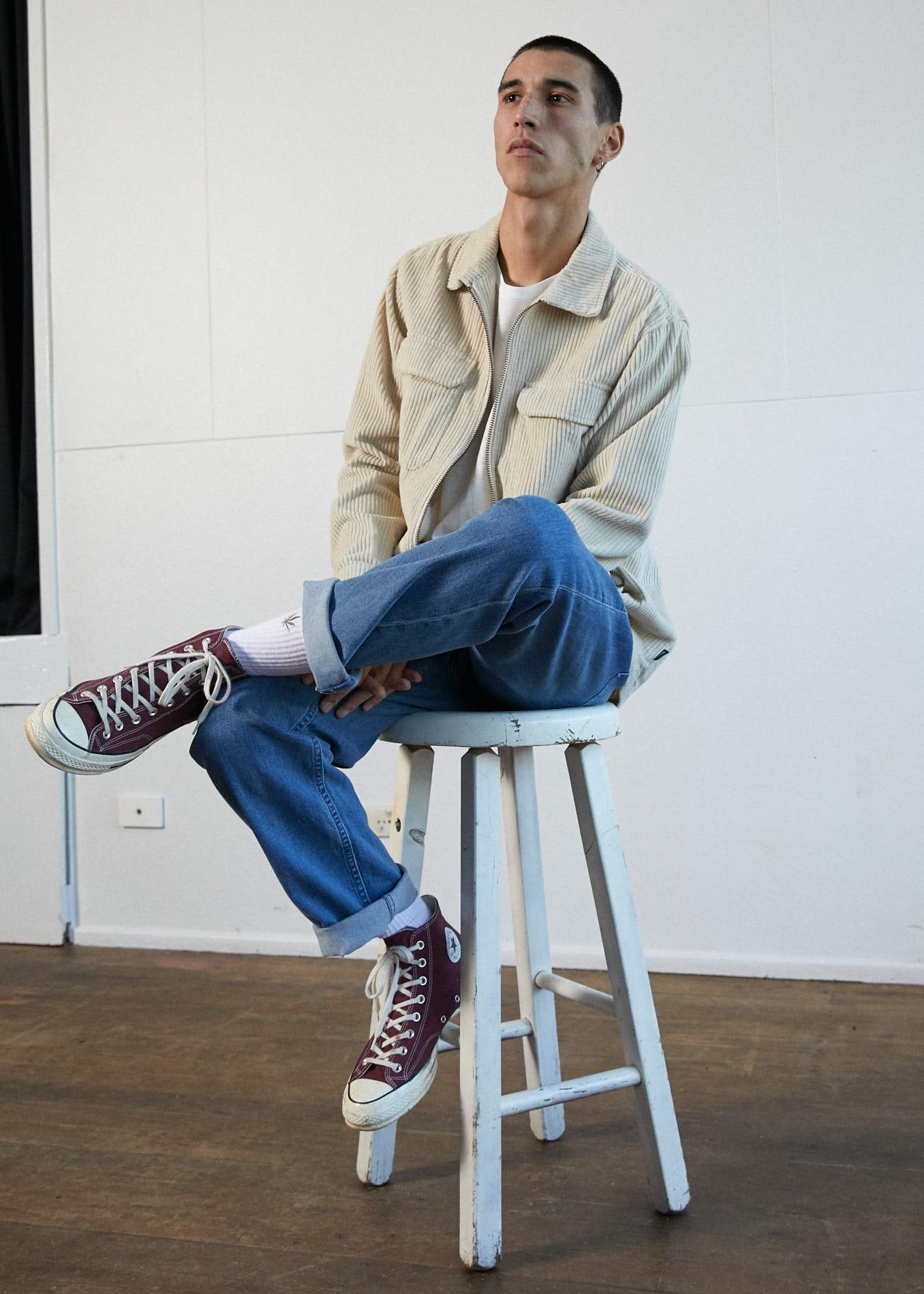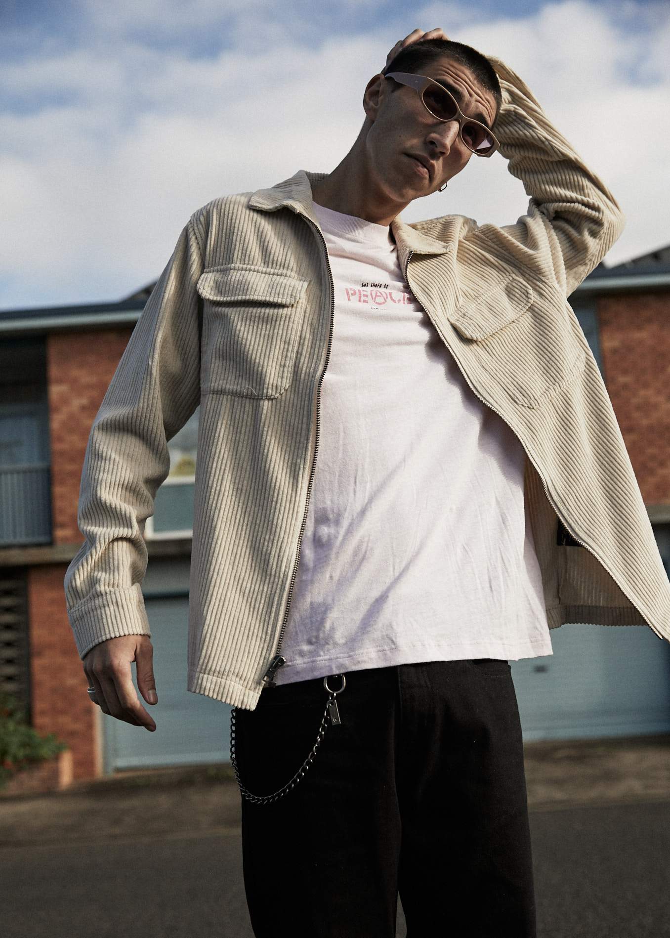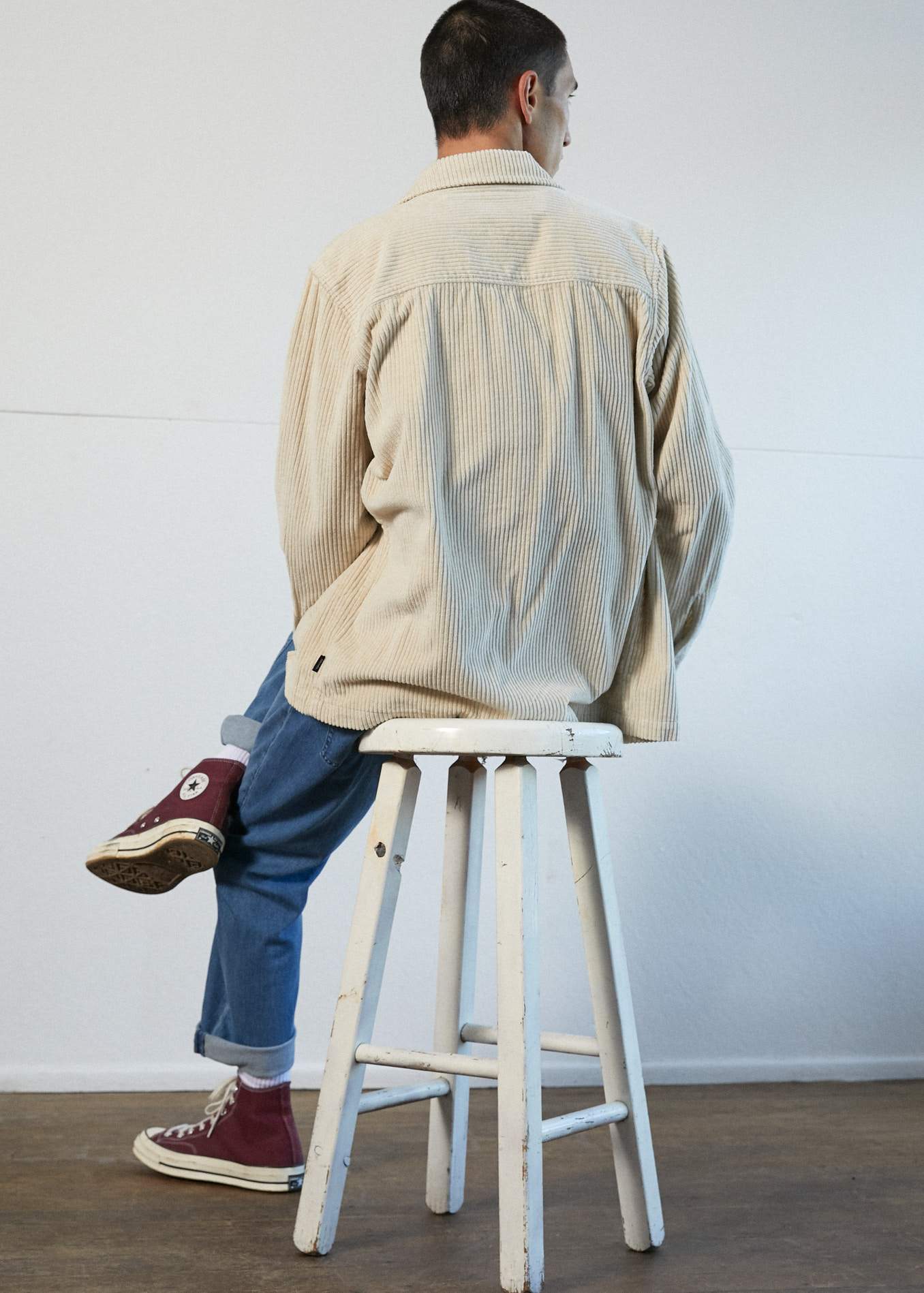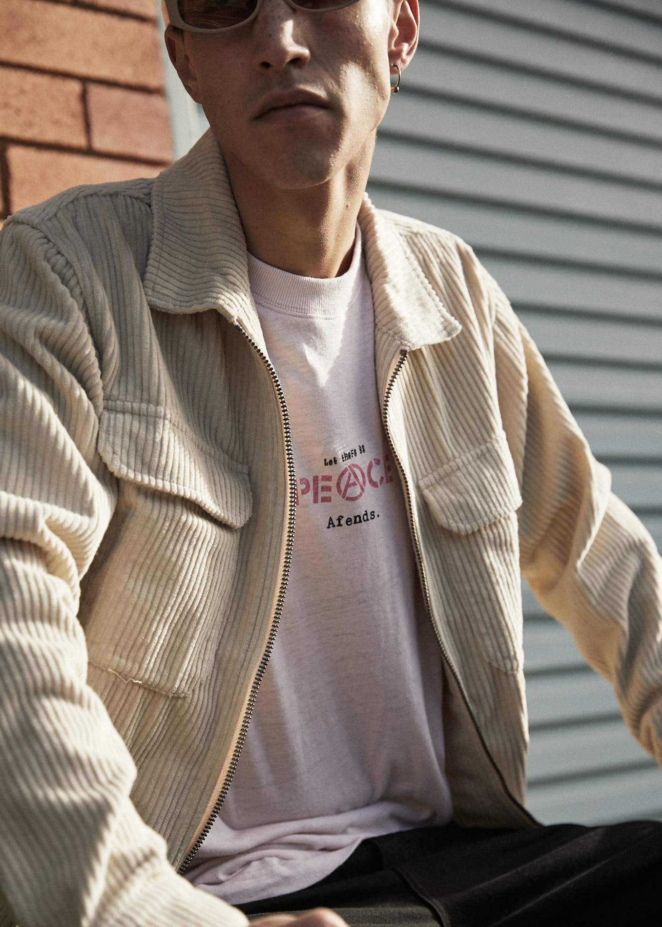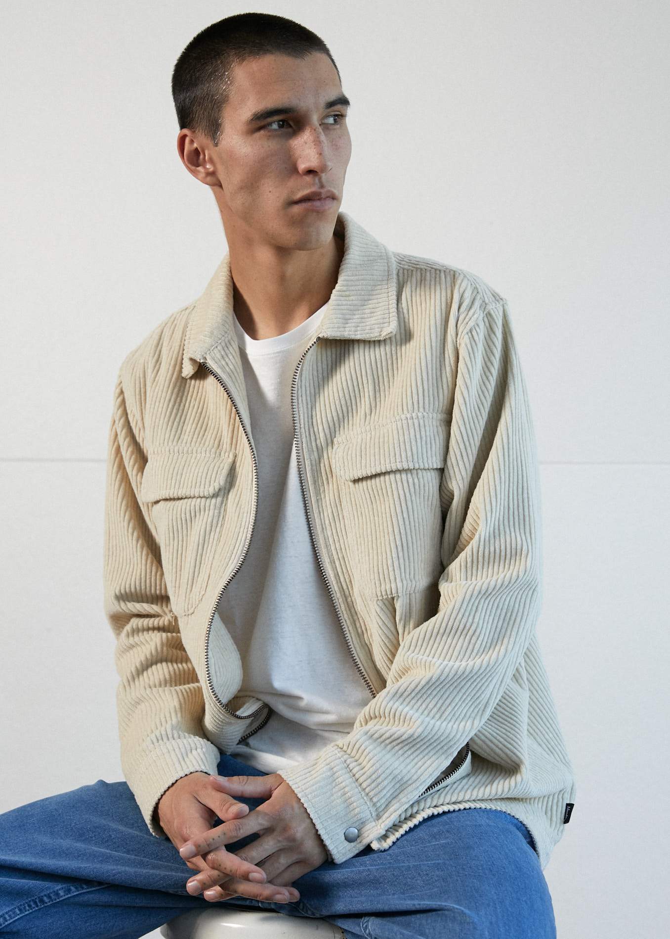Afends Mens Bones - Corduroy Zip Work Jacket - Macadamia