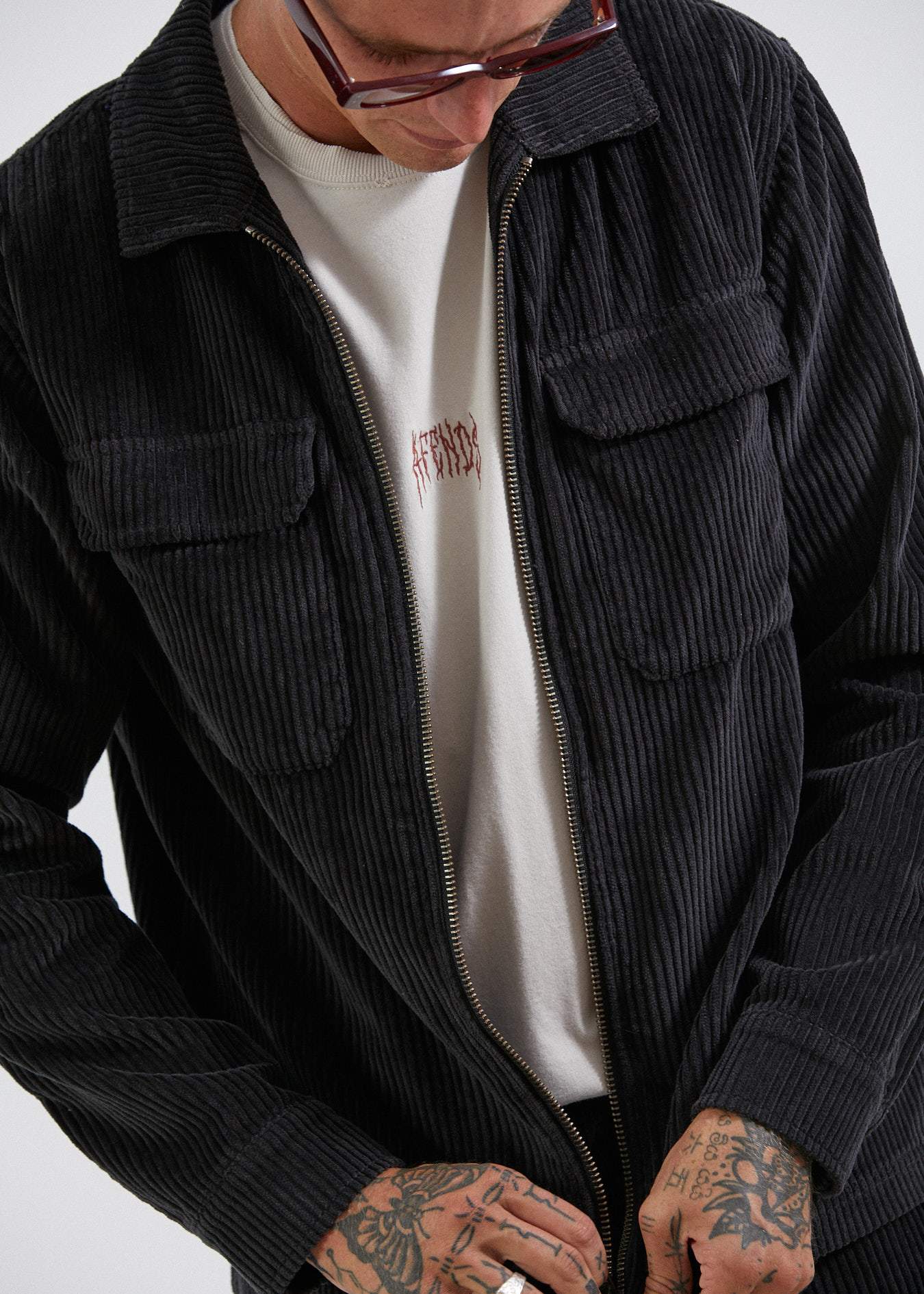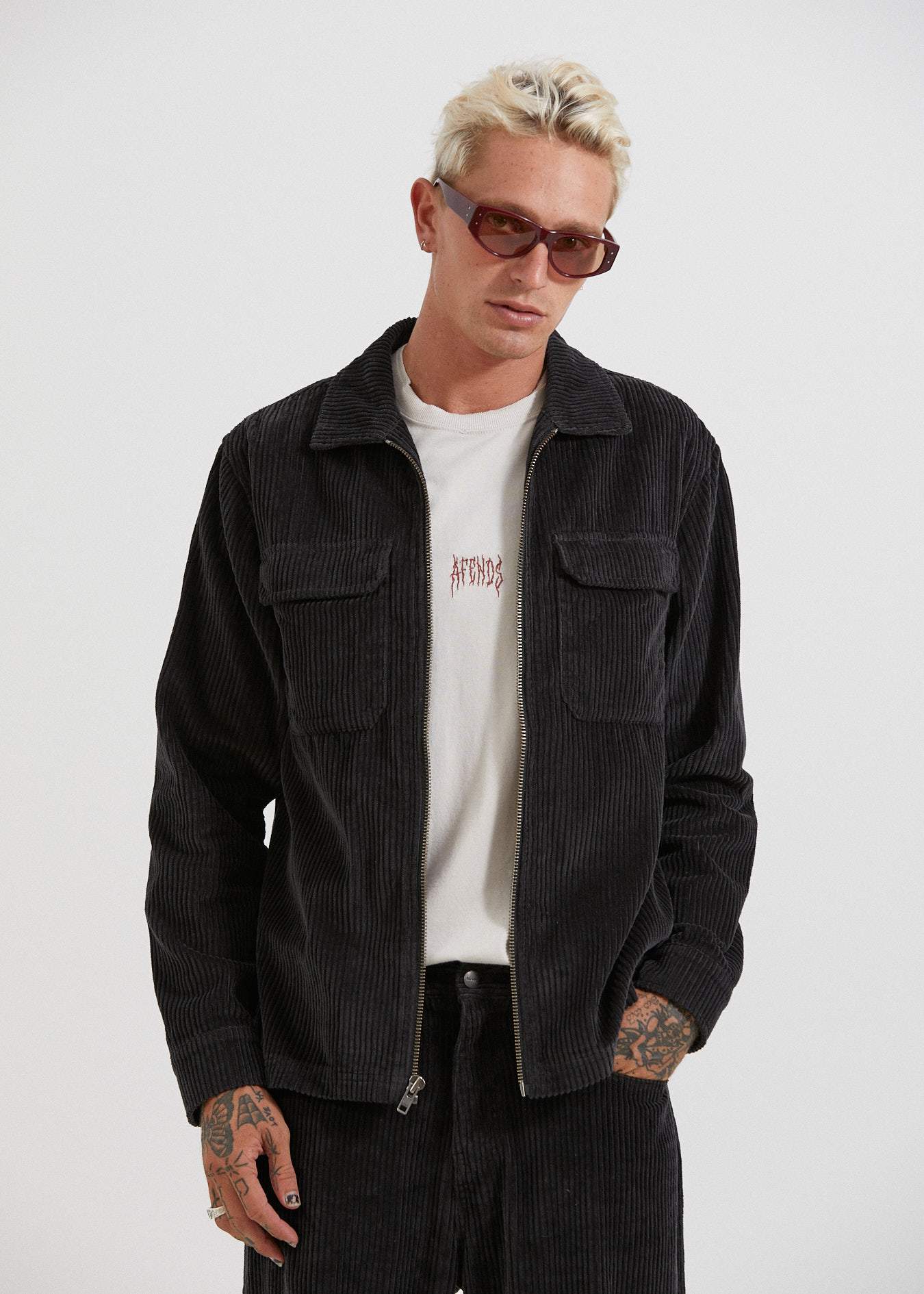 Afends Mens Bones - Corduroy Zip Work Jacket - Raven