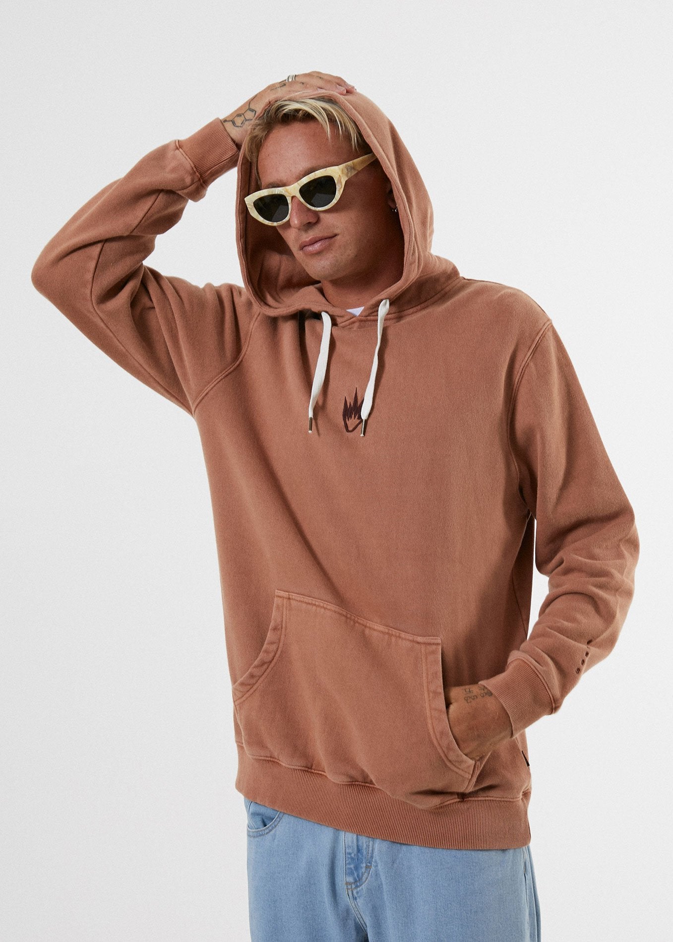 Our mens CF Flame Pull On Hood is made from premium cotton brushed fleece to deliver maximum comfort. Featuring our signature Afends flame logo on the front with a double lined hood with adjustable drawstring and a large front pocket to stash your goods, this hoodie will keep you warm & snug.