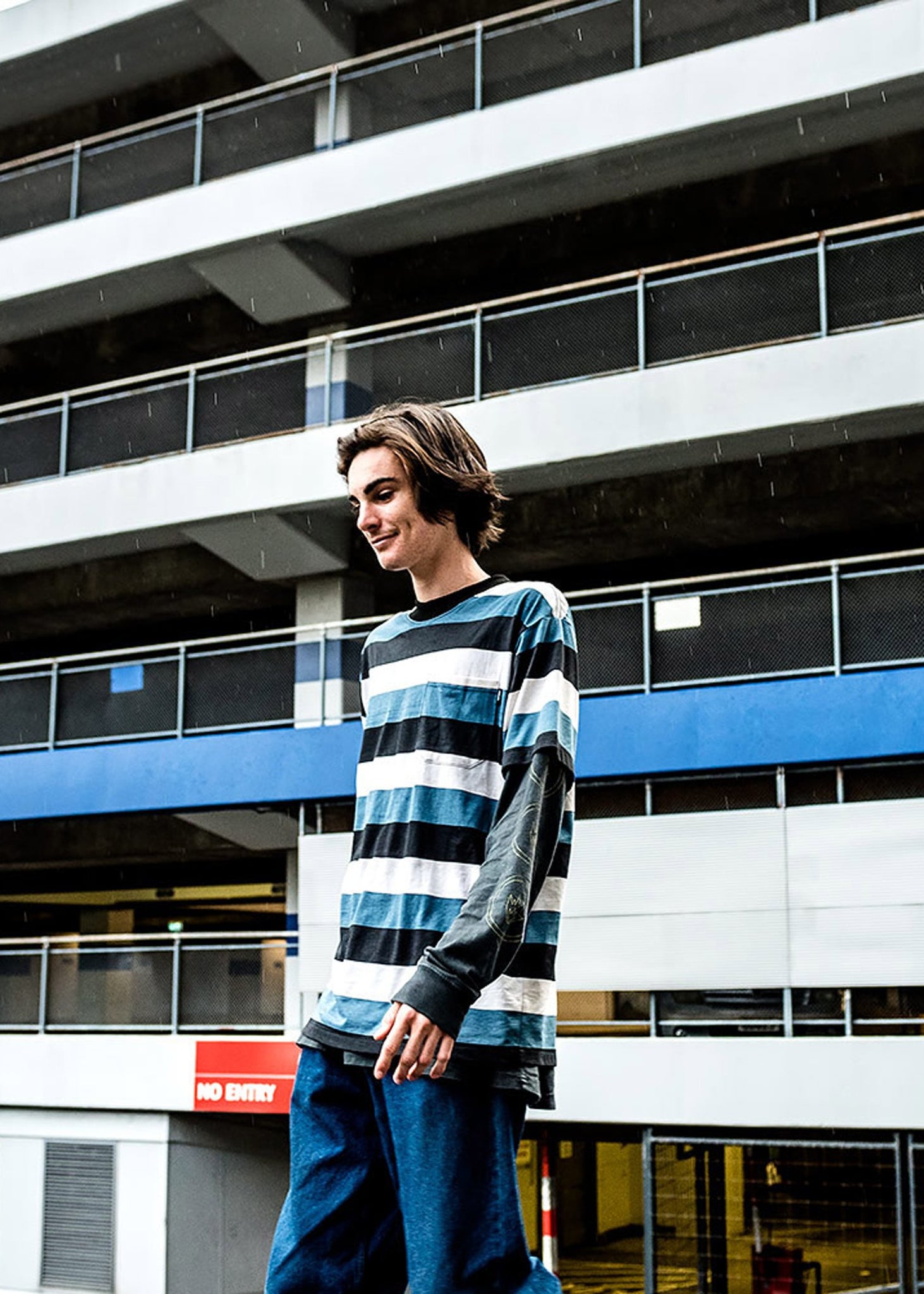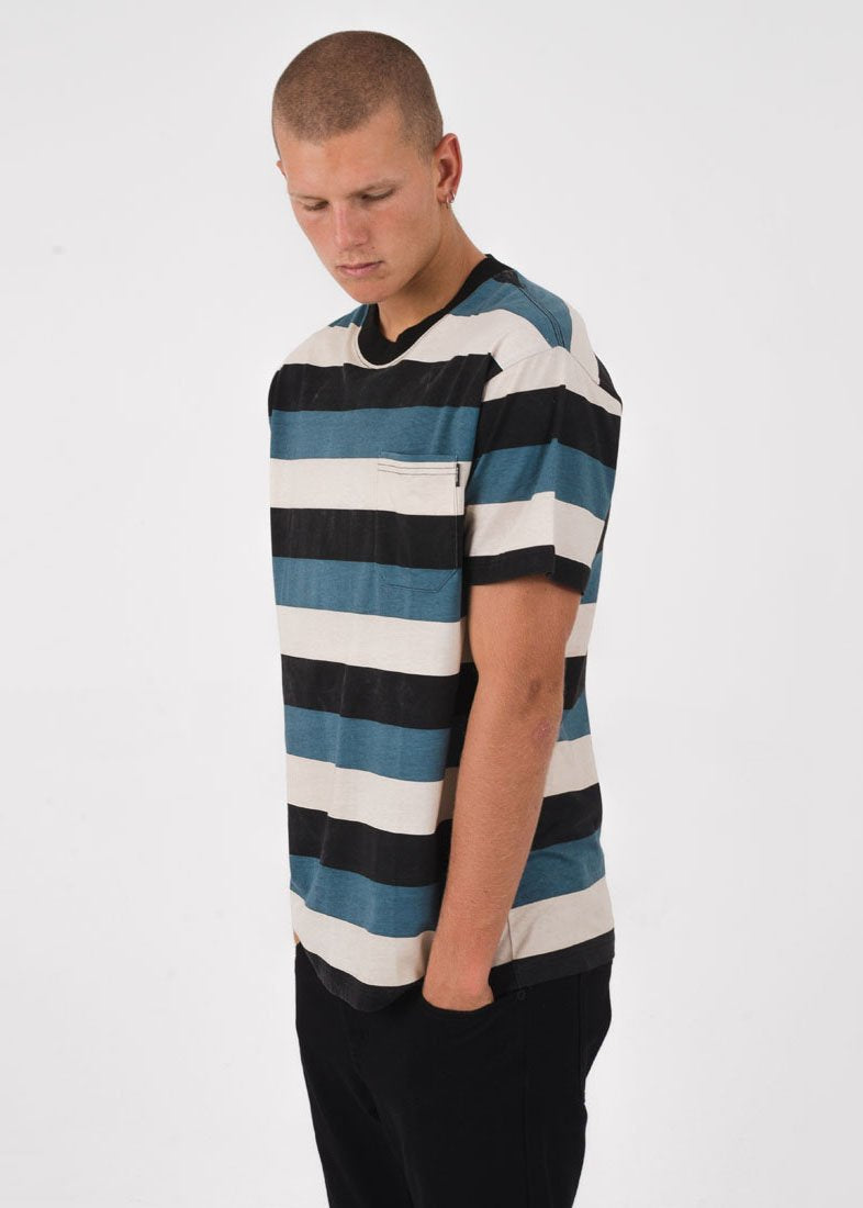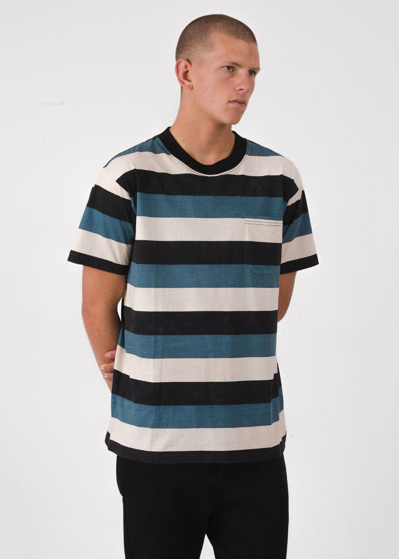 The 'Chubs' Tee comes in our signature retro shape in a navy and cream stripe.