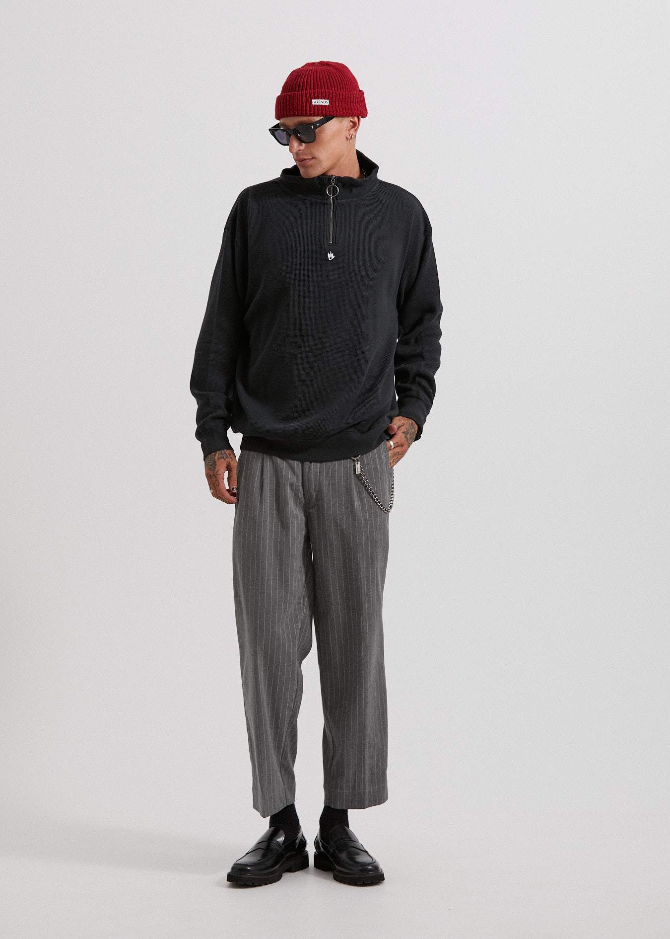 Featuring a YKK brushed metal half zip neck with embroidered flame detail and ribbed cuff sleeves and hemline.