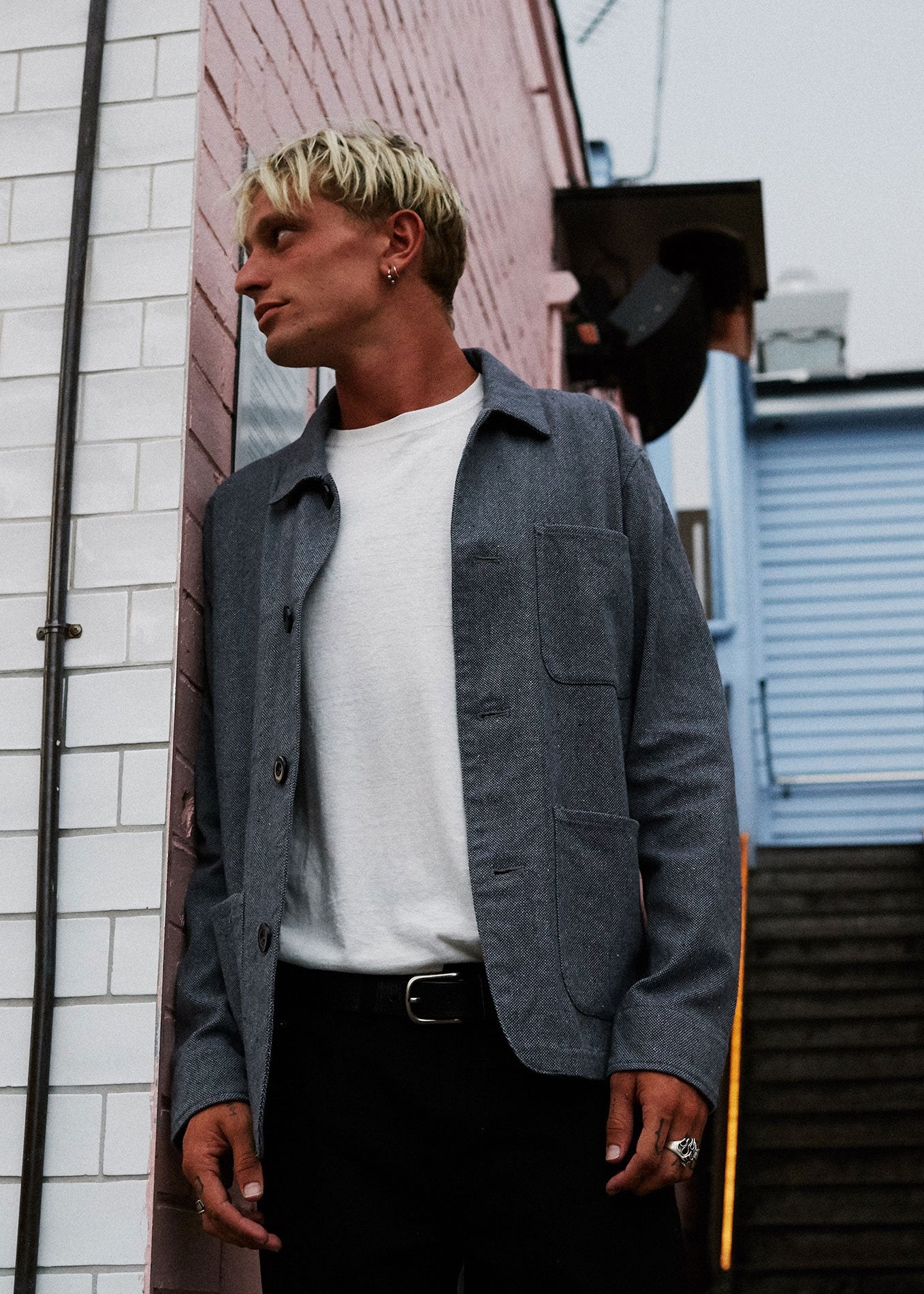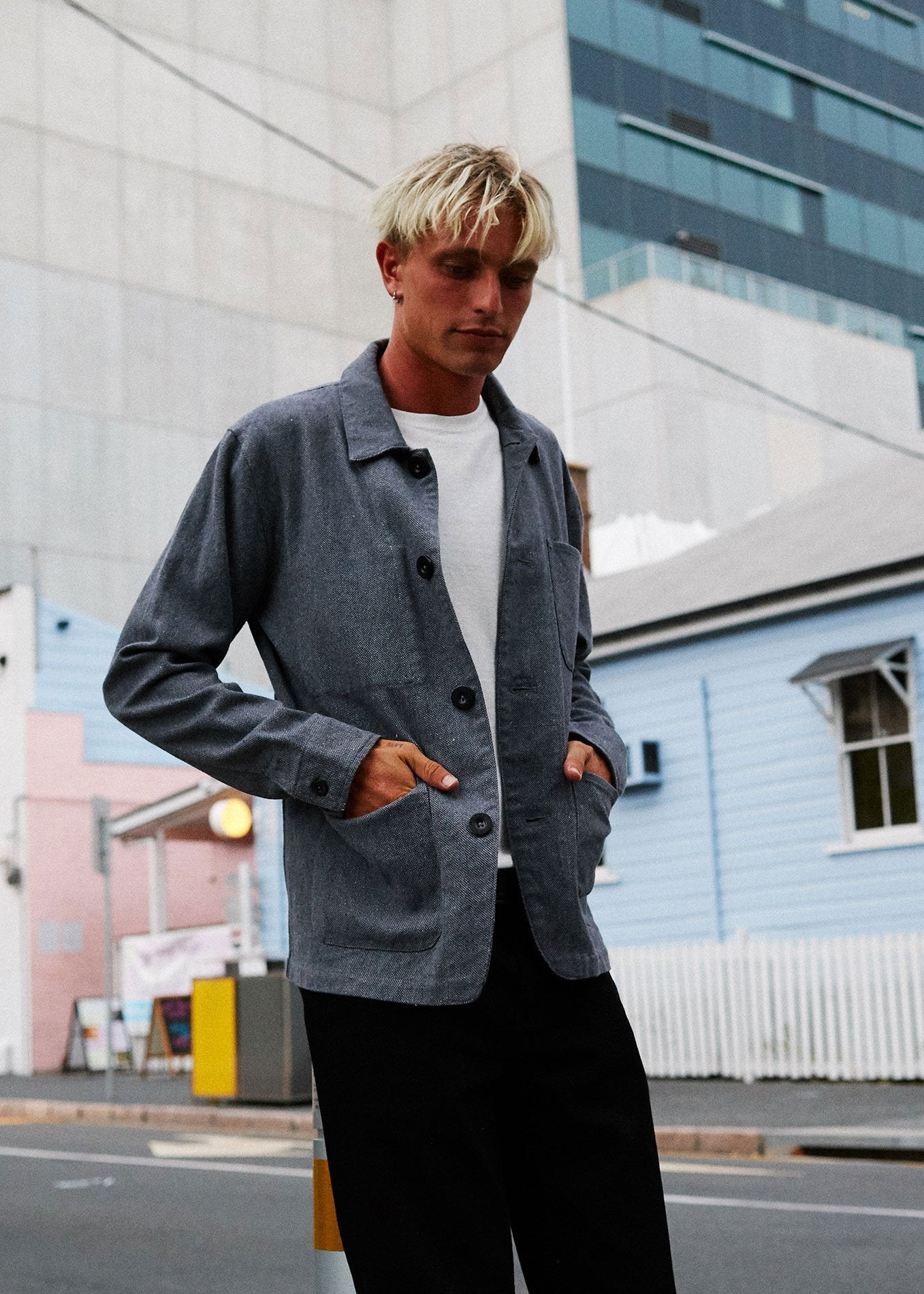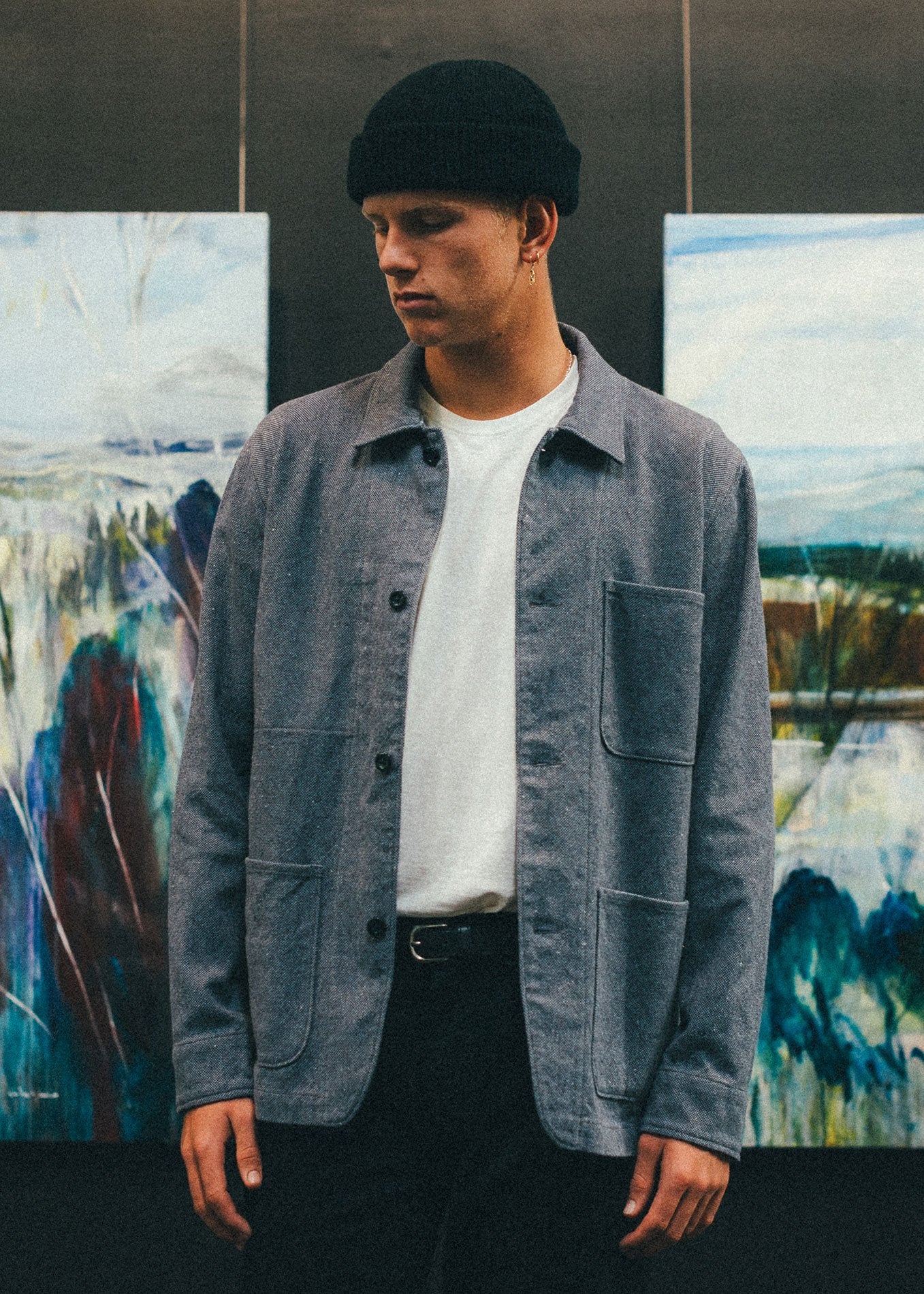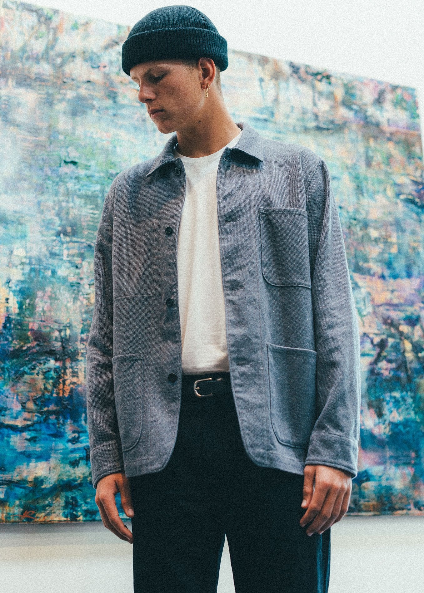 Our Culture Wave Chore Jacket is constructed from a unique recycled hemp and organic cotton blend. From afar the fabric looks to be denim but on closer inspection reveals an array of colours that are unavoidable in the textile recycling process.