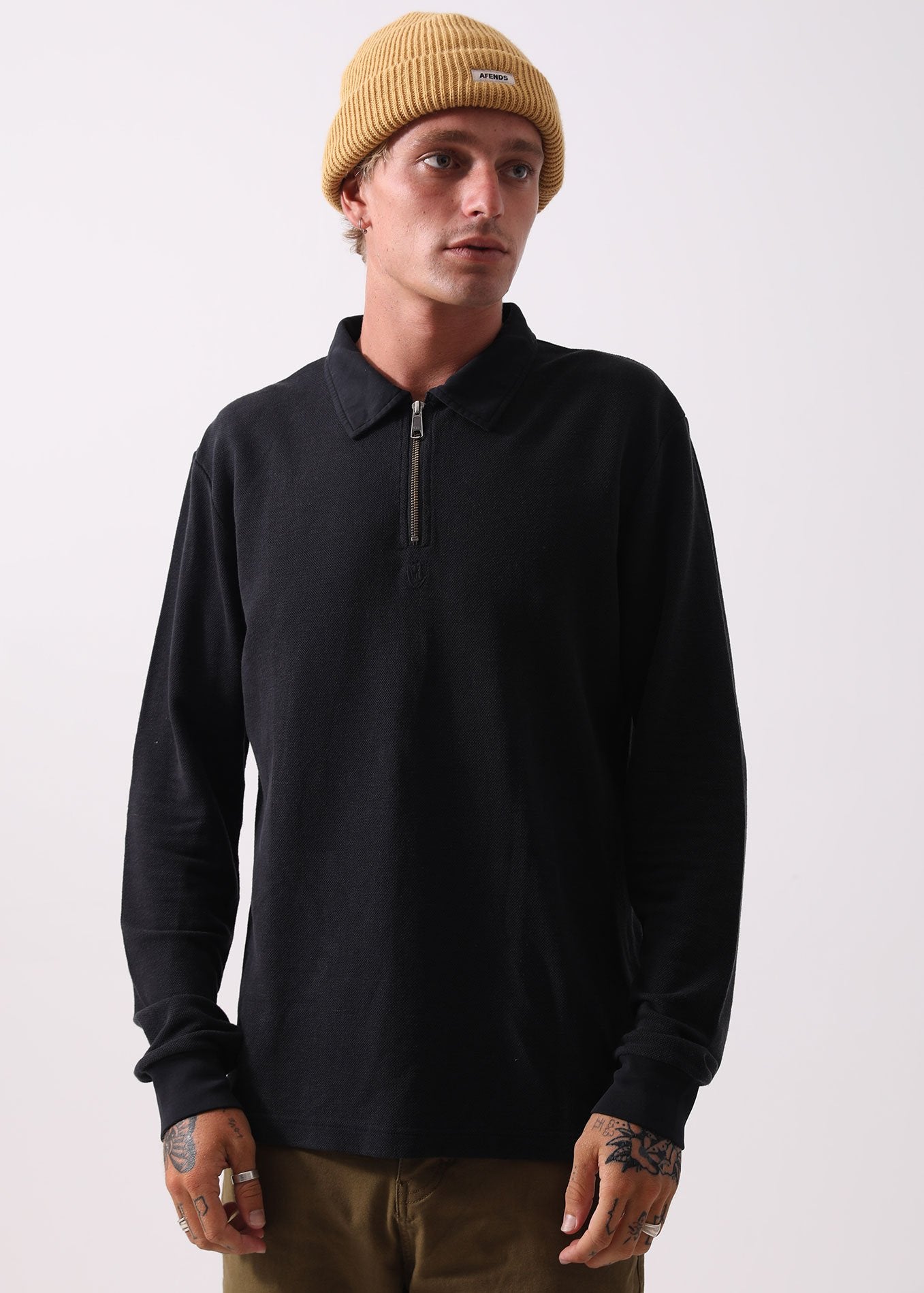 Afends Mens Daly - Hemp Long Sleeve Polo Tee