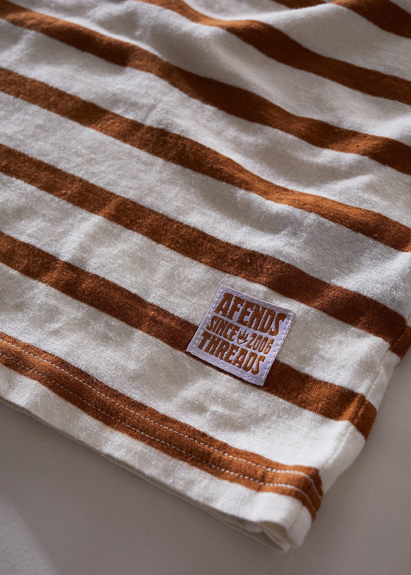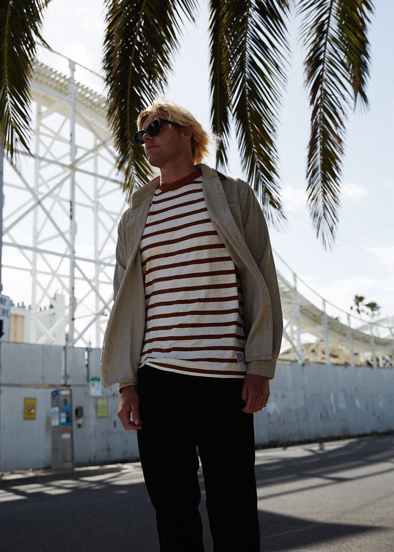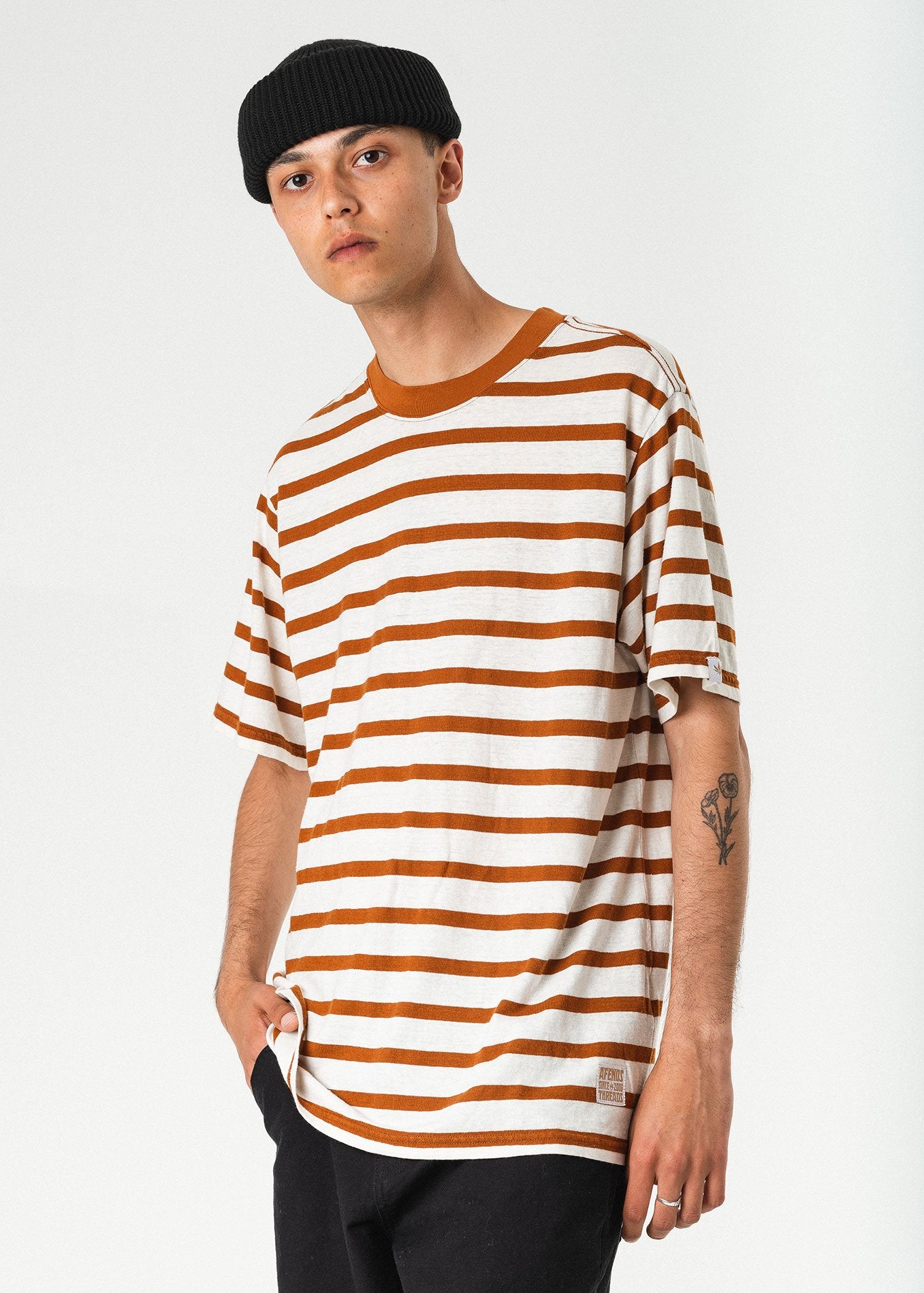 Be part of the Afends Hemp Revolution in the Diggers Hemp Tee. Made from our eco-friendly Hemp and Organic Cotton blend, the Diggers tee features a contrast ribbed crew neck in an all-over yarn dye stripe with minimal branding making it super easy to incorporate it into your everyday wardrobe.