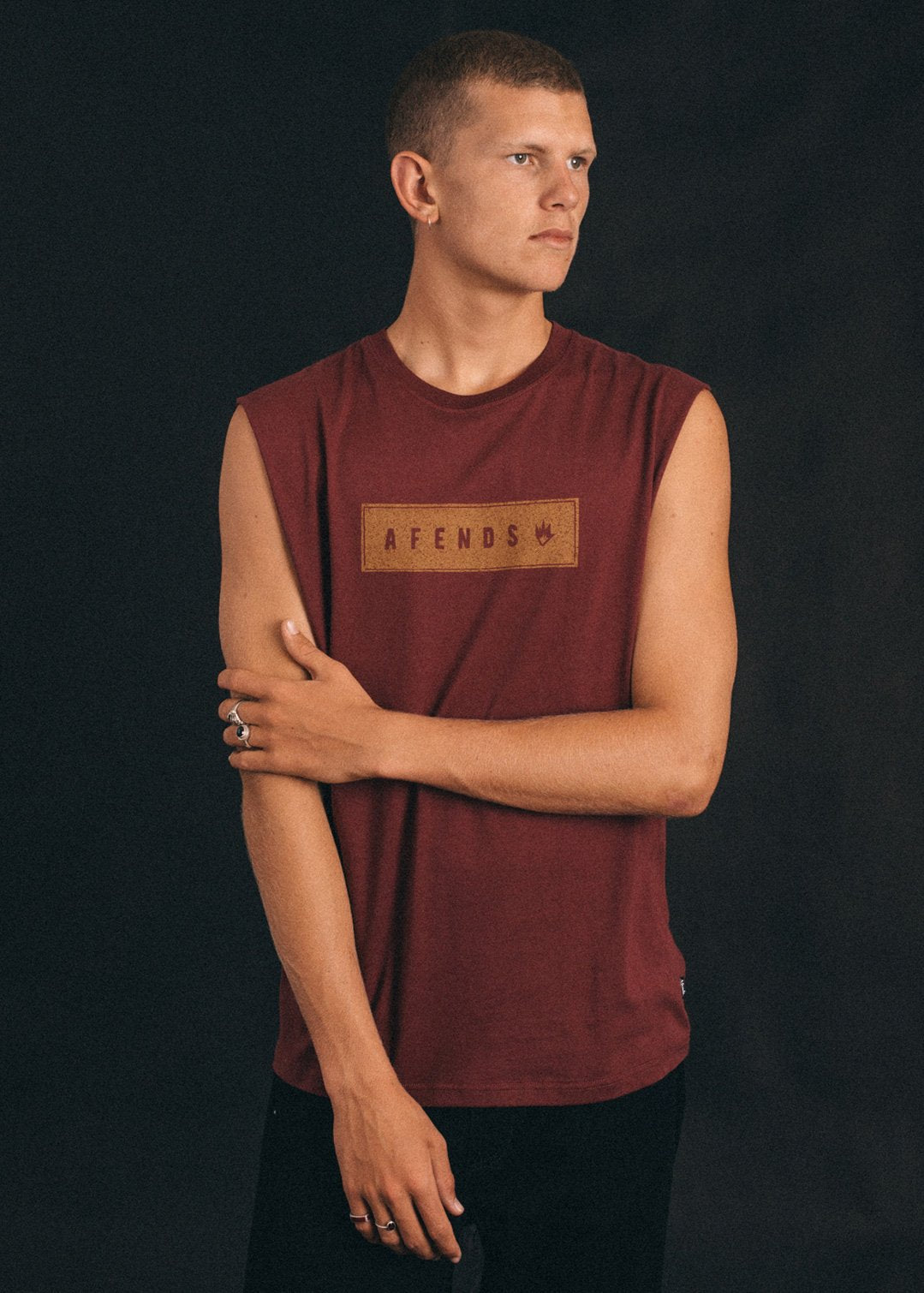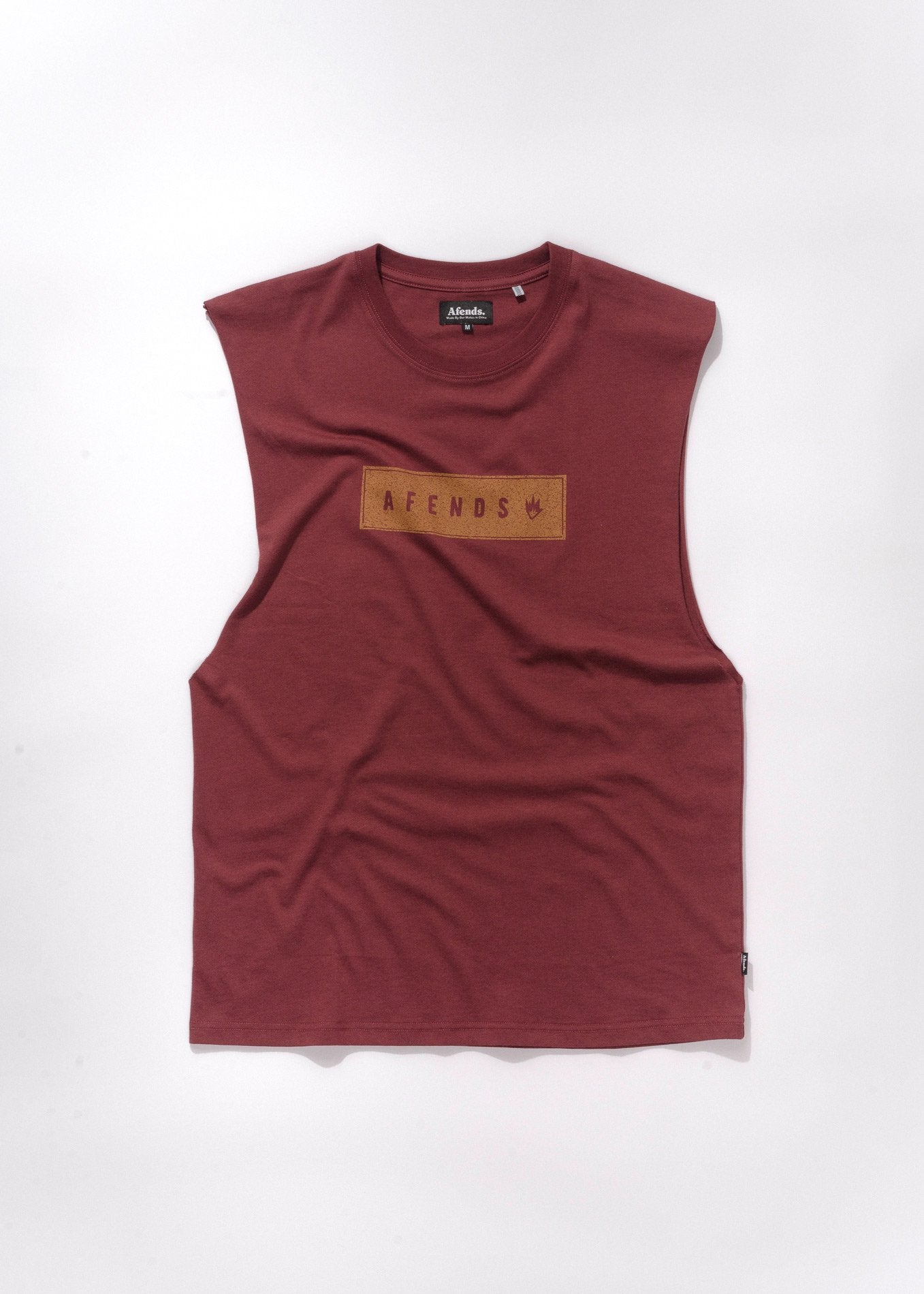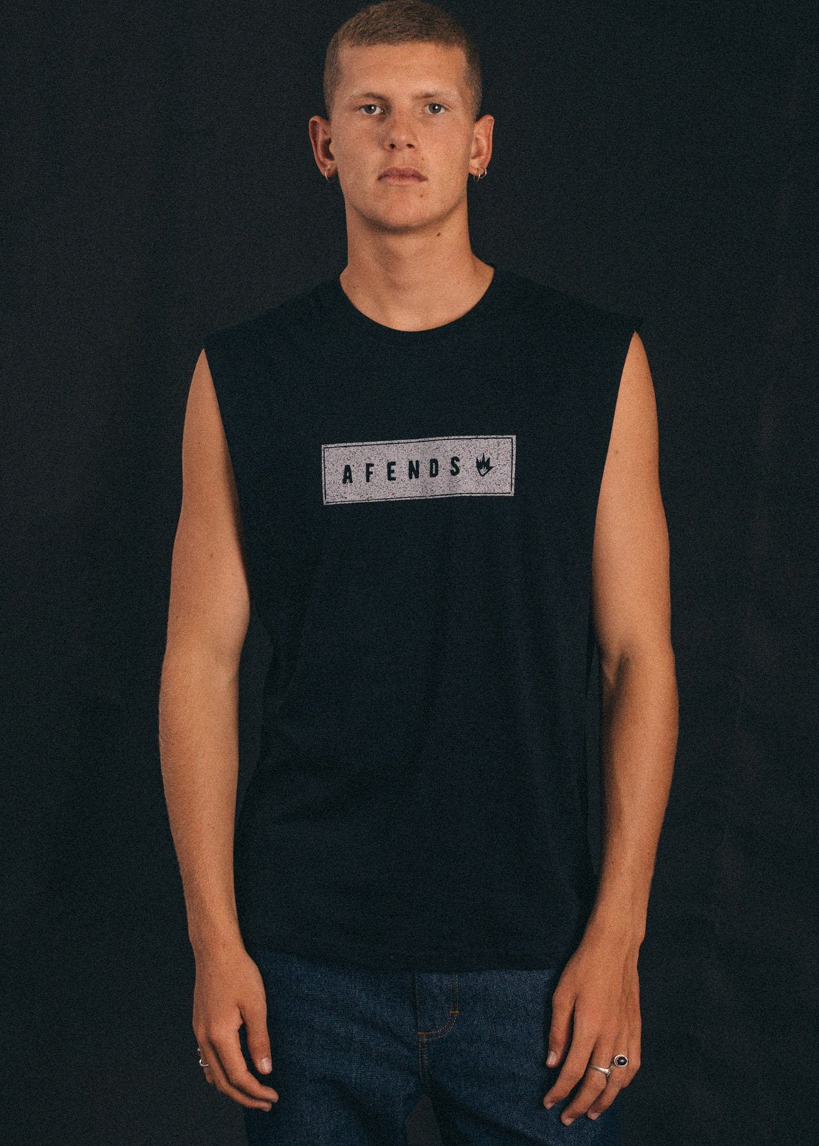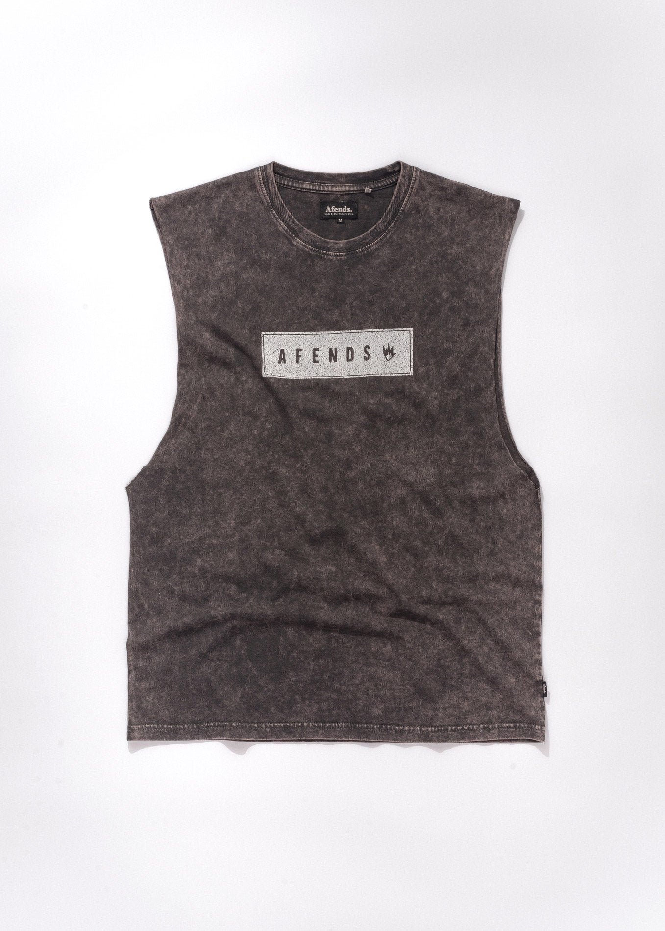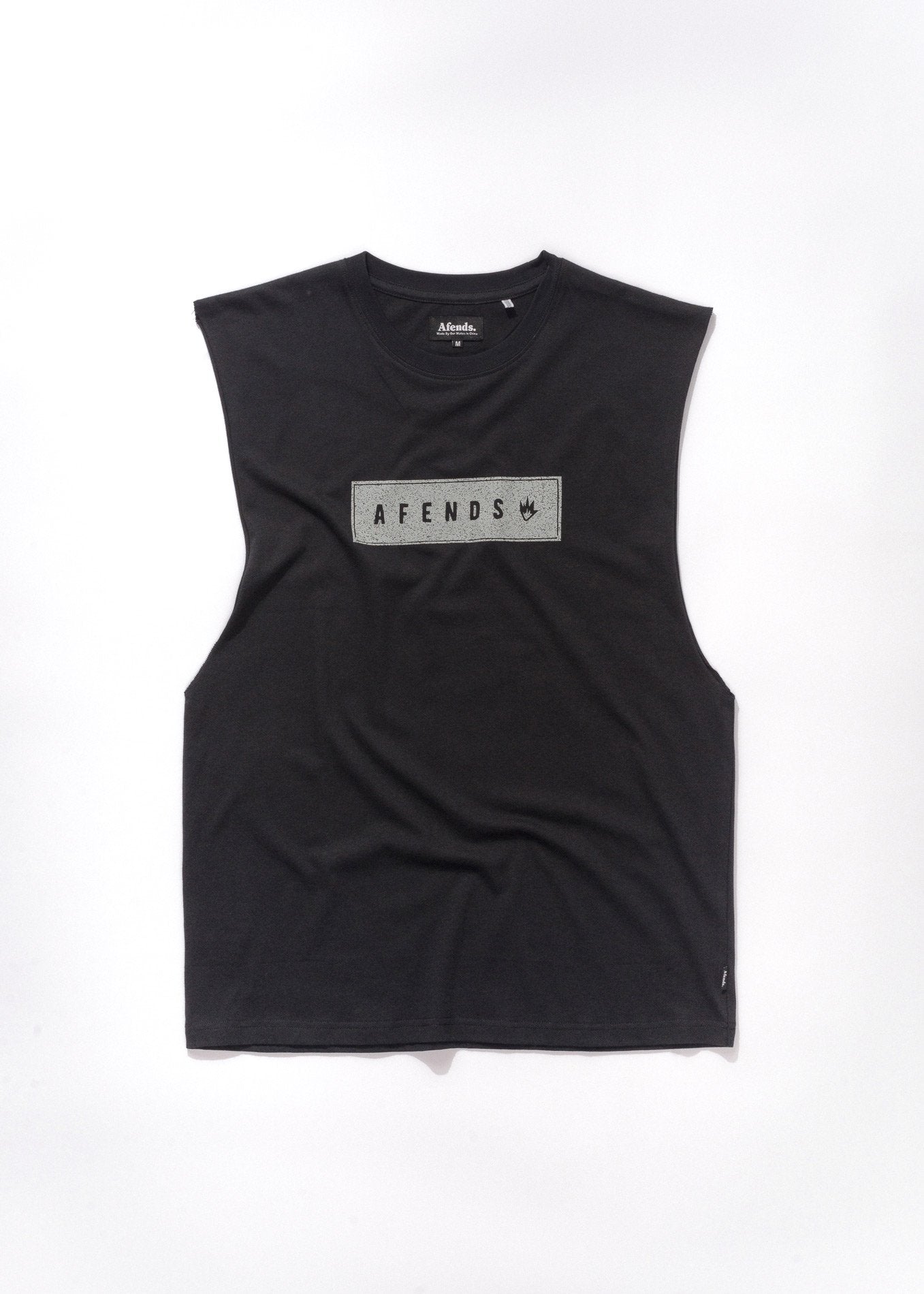 'Distorted' is a simple band cut tee with raw cut-off sleeves, a ribbed neck band and a simple logo print.