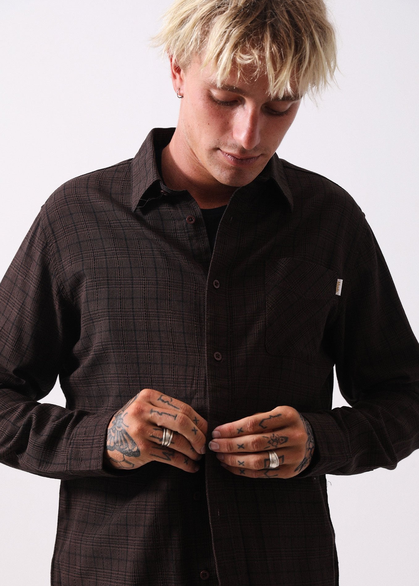 The Afends Drogstore Long Sleeve Shirt is a throwback to the early nineties skate and punk scene. Featuring button up front, single chest pocket, a curved hemline and an all-over yarn dye plaid print. The Drogstore shirt is steezy, versatile and easy to layer your outfit with.