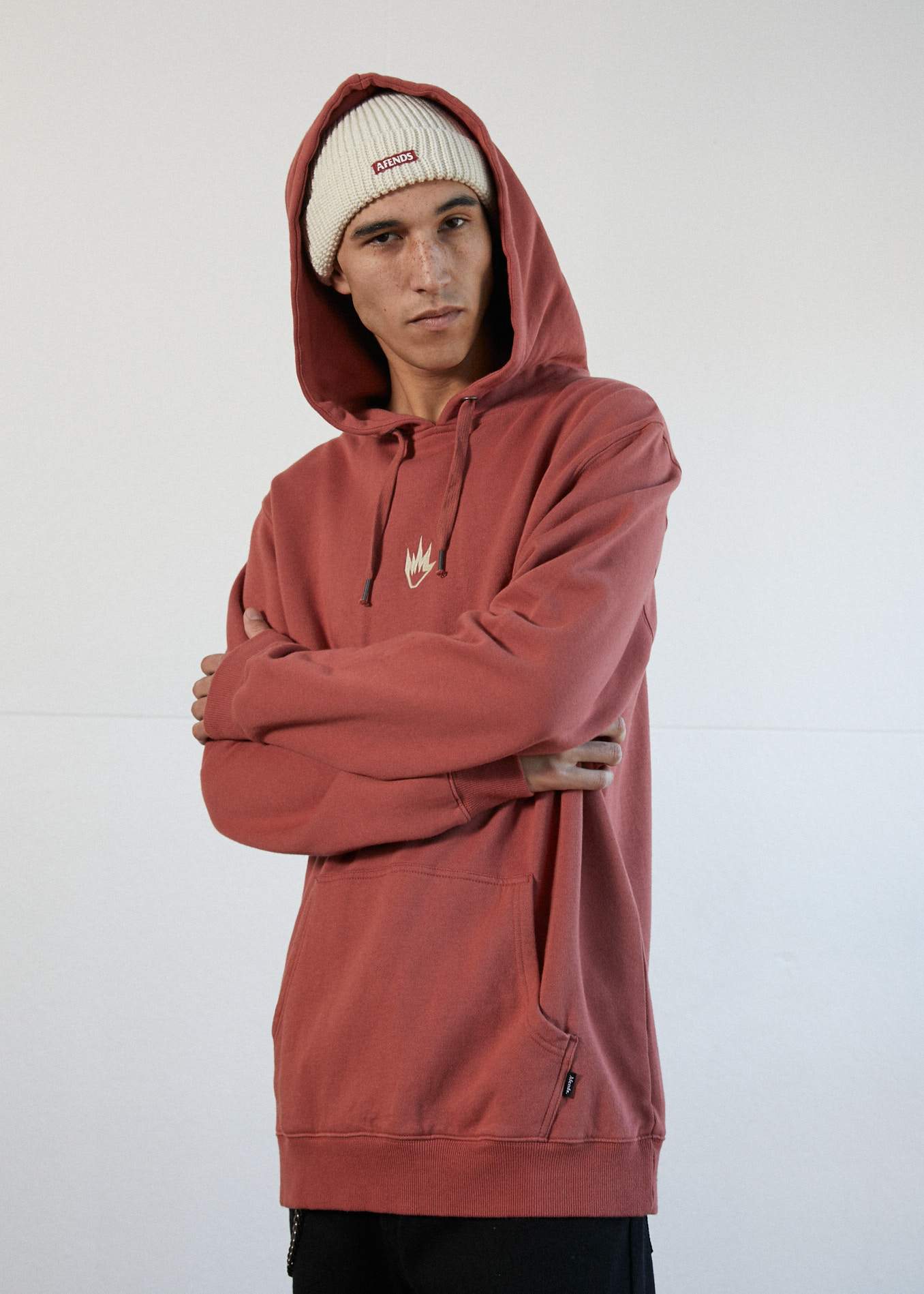 Made from Cotton Brushed Fleece for maximum comfort, it features a double lined hood with drawcord, oversized stash pocket and flame embroidery on the chest. Ideal for those post-surf chills or early morning dawn patrol.