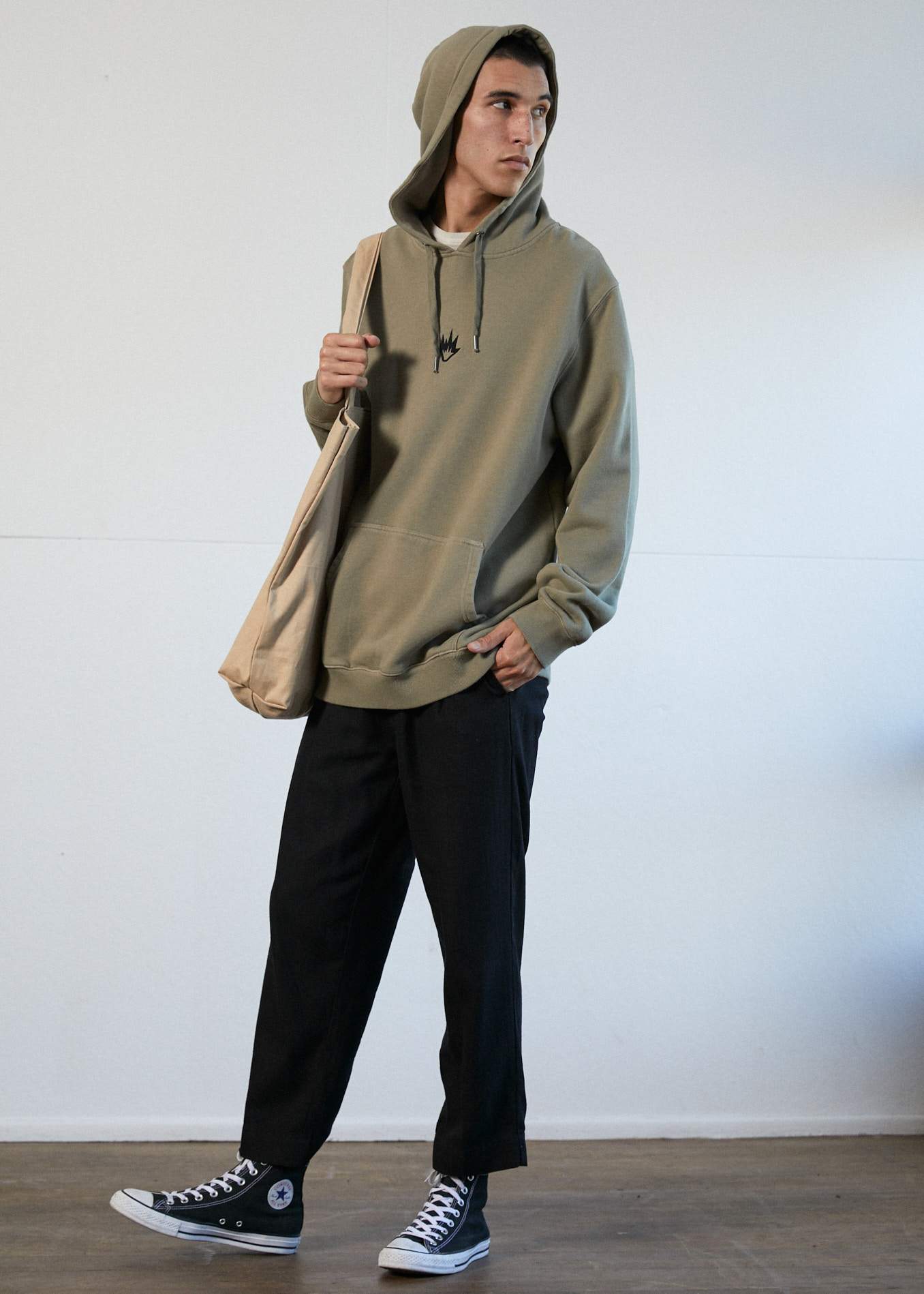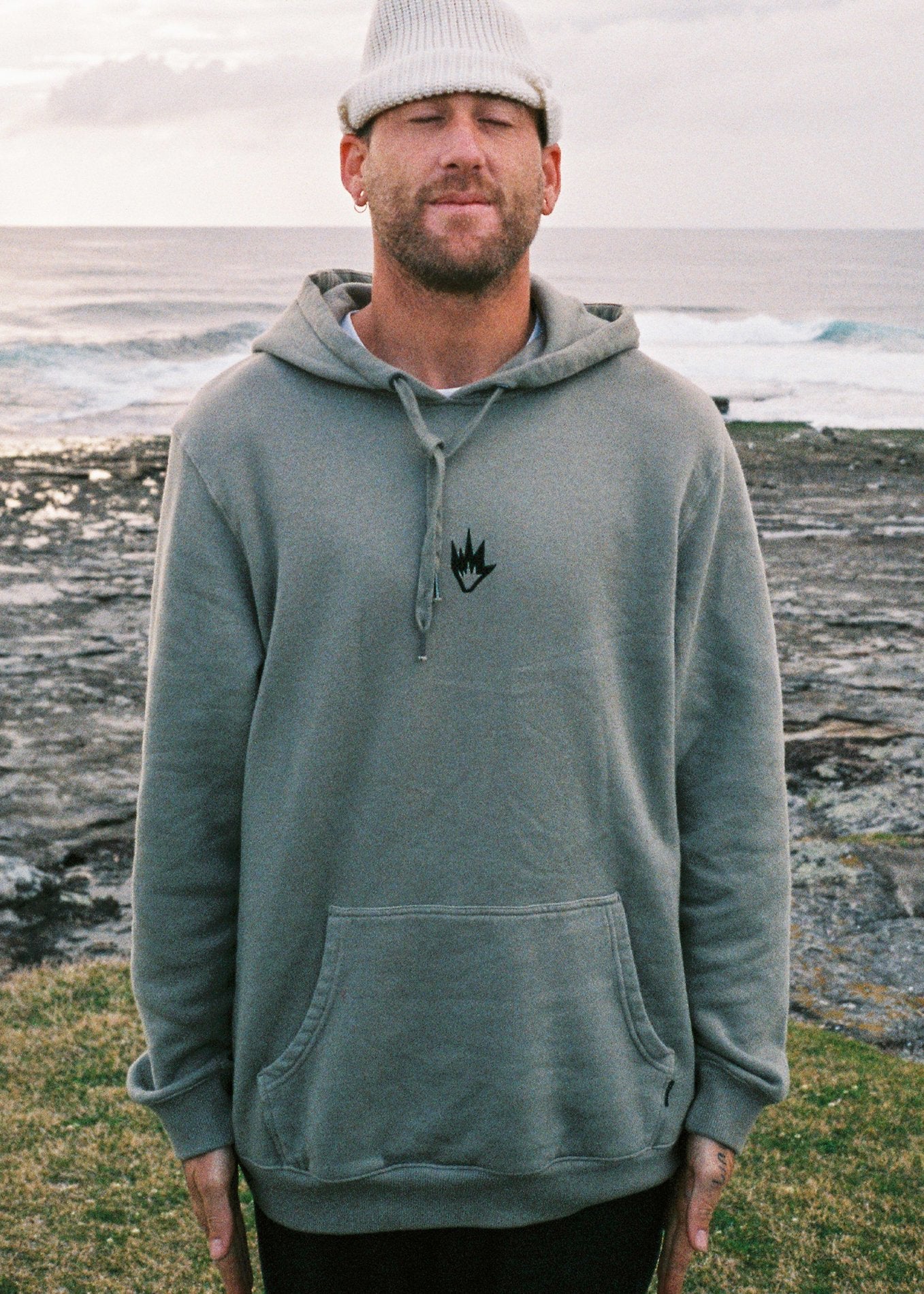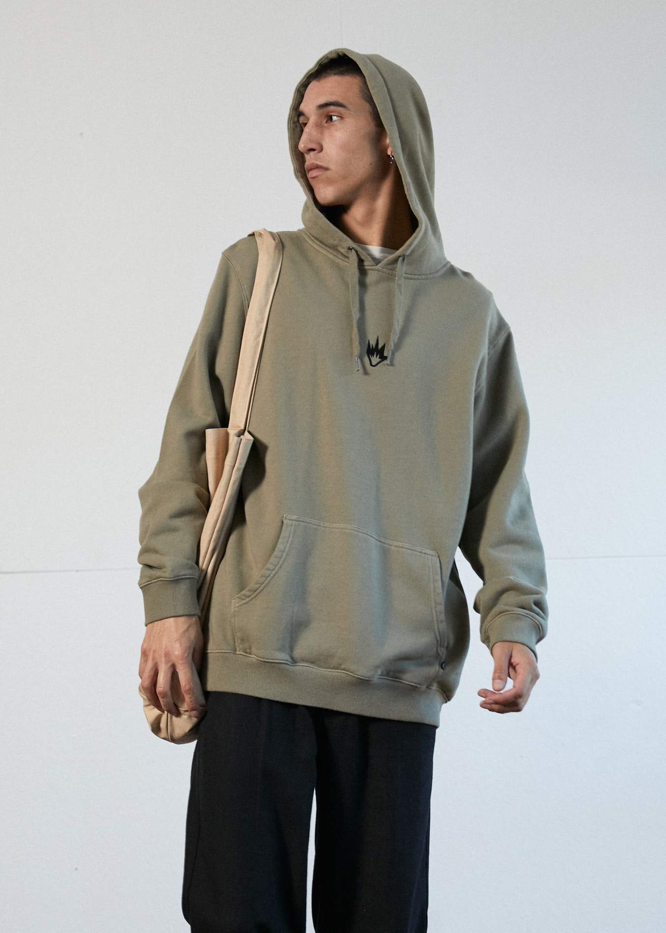 Made from Cotton Brushed Fleece for maximum comfort, it features a double lined hood with drawcord, oversized stash pocket and flame embroidery on the chest. Ideal for those post-surf chills or early morning dawn patrol.