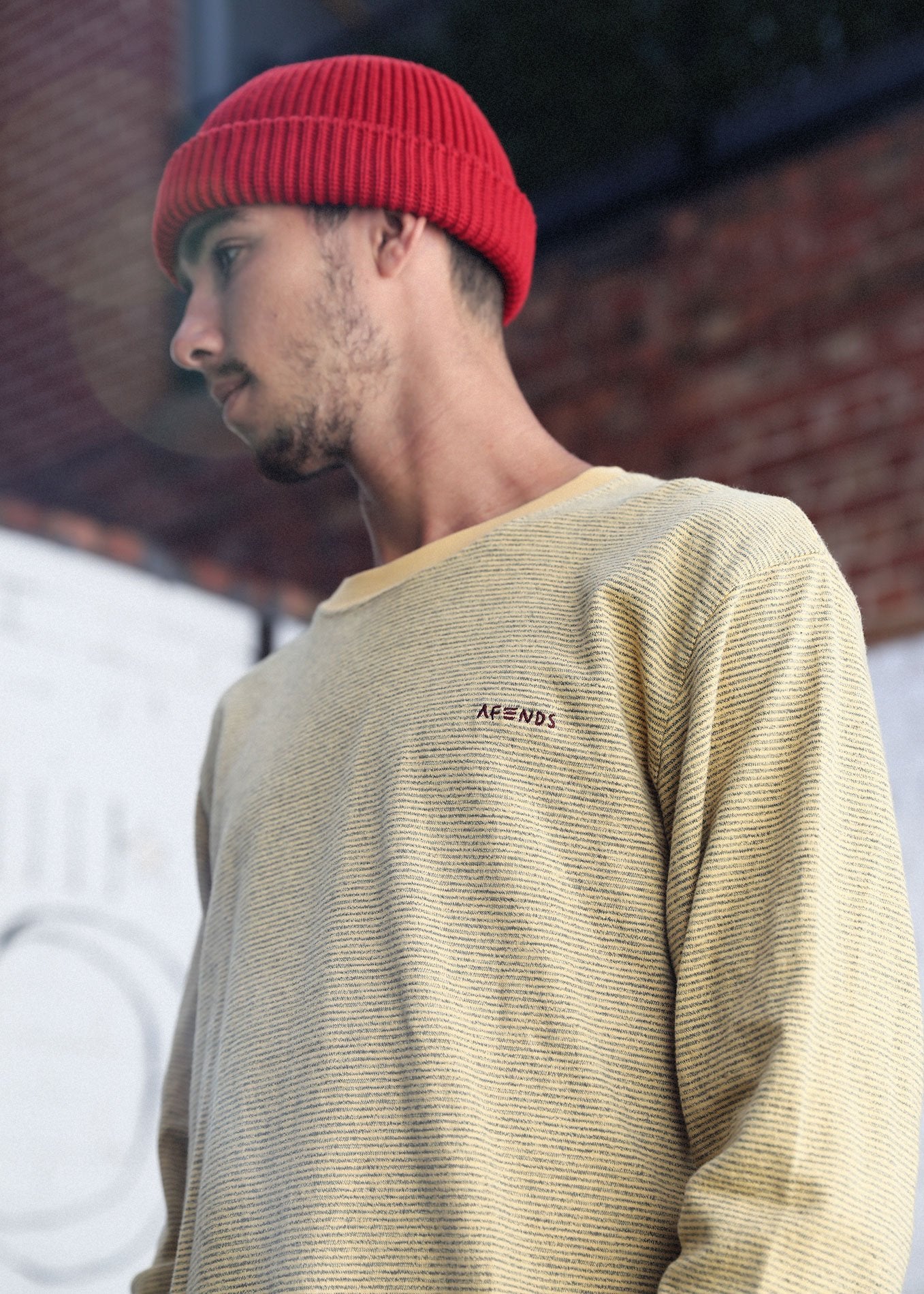 Made from our eco-friendly Hemp and Organic Cotton blend, the Future Long Sleeve Tee comes in a retro-fit and features a contrast ribbed crew neck and wrist cuffs in an all-over broken up stripe and finished with custom designed Afends x Doug Bennet logo embroidered on front.