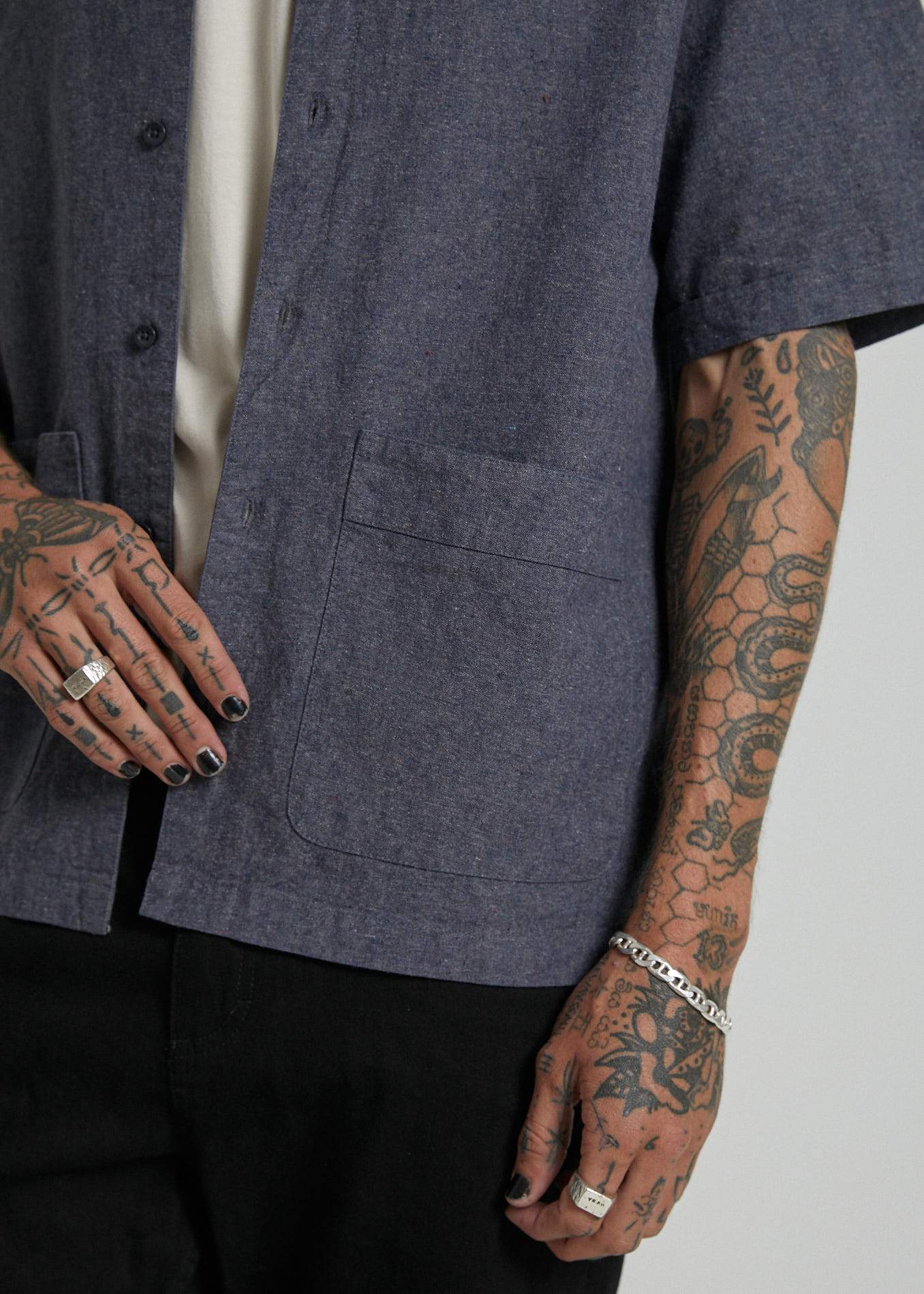 The Good Taste Shirt is exactly that. Designed in our classic short sleeve shirt with cuban collar and oversized front pockets, you can wear it open and layered over a singlet or buttoned up for a sharper look.