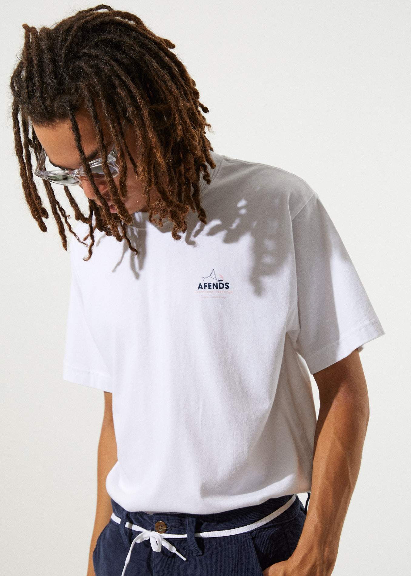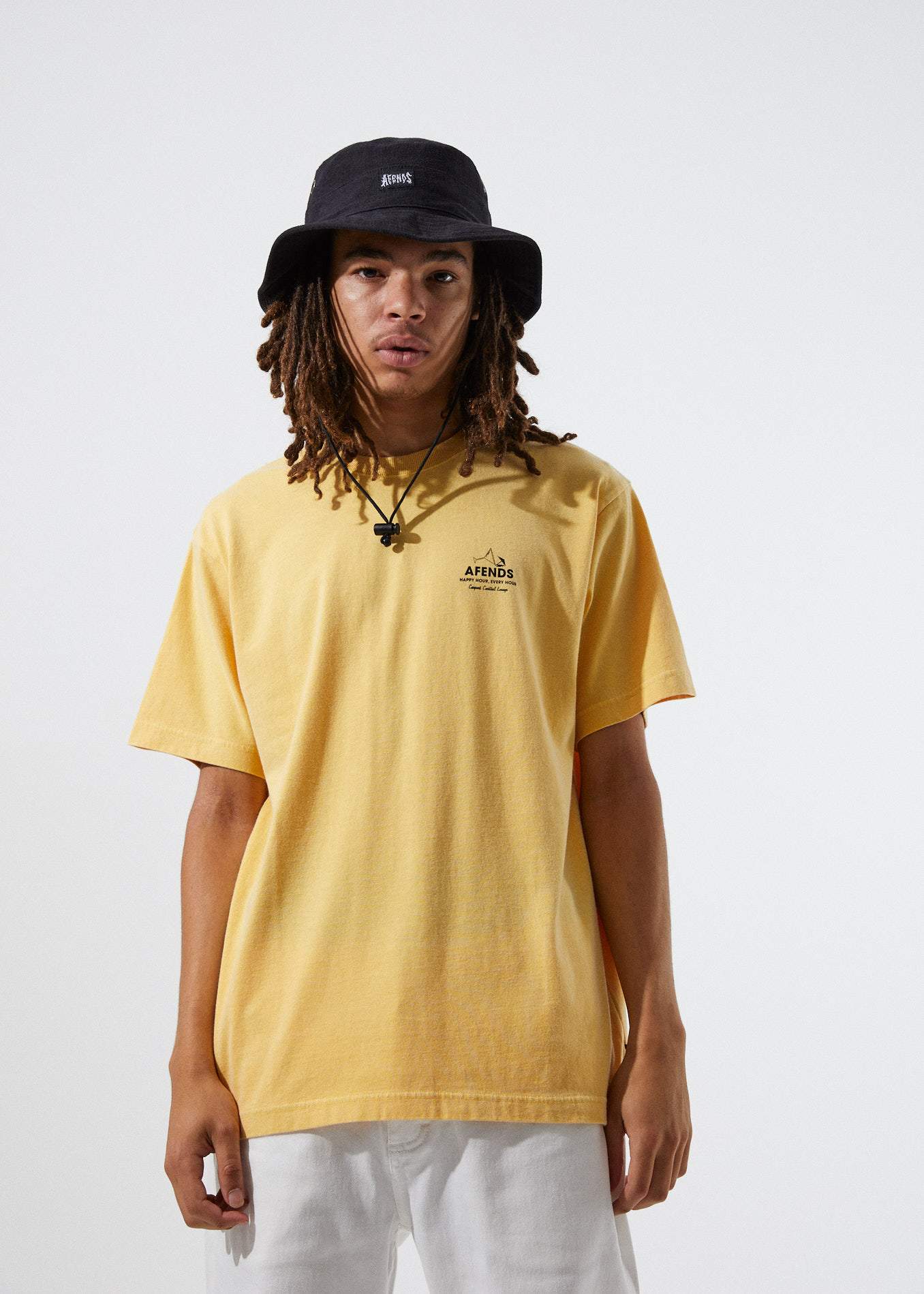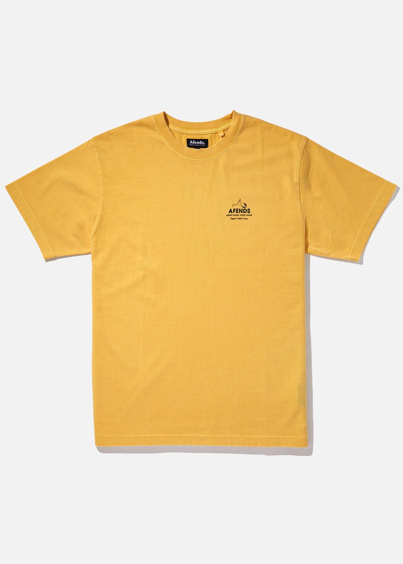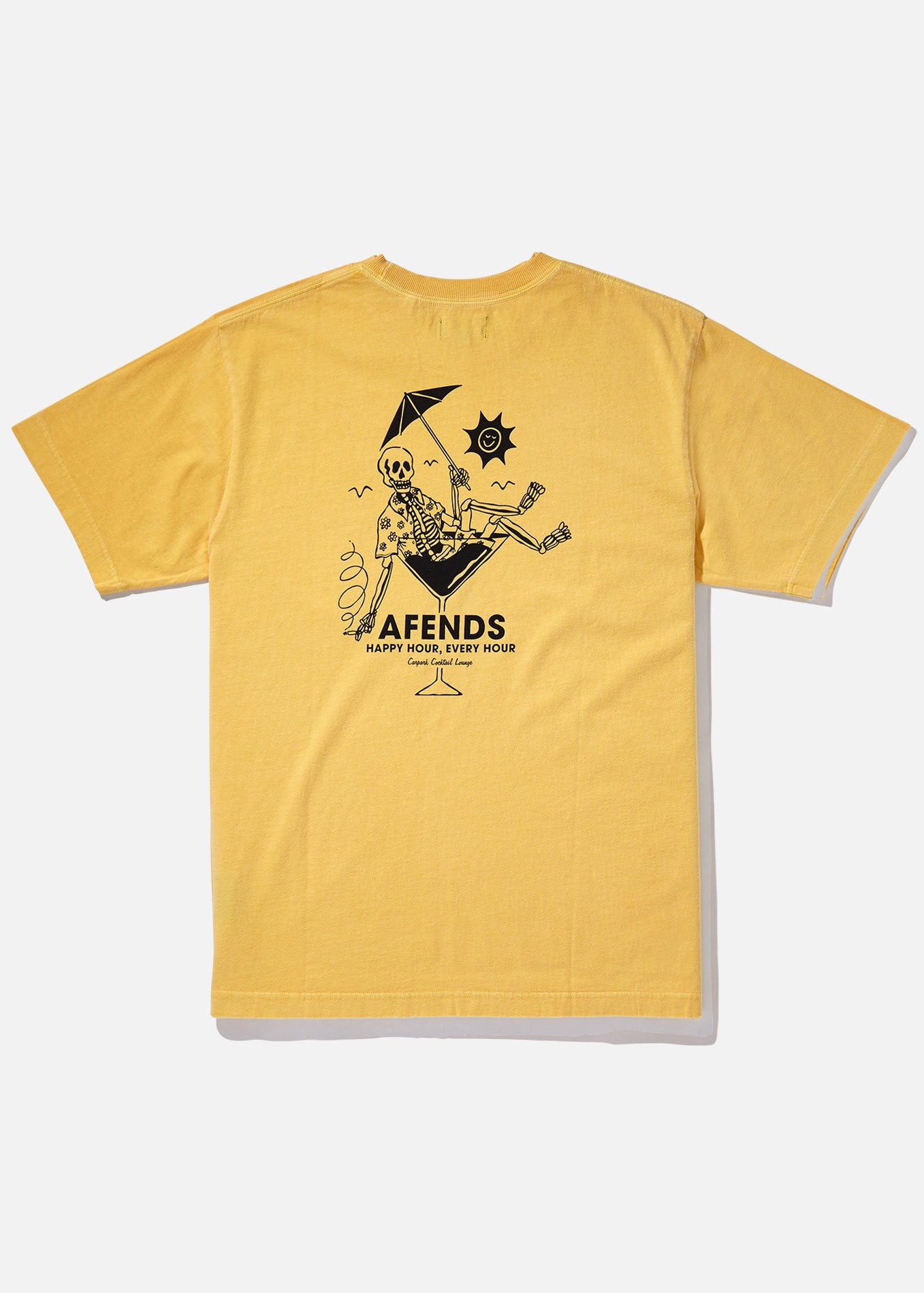 The Afends Happy Hour Retro Fit Tee is inspired by our favourite road tripping days, pulling up to cocktail lounges conveniently located at every beach carpark and serving up cold beers 24/7.