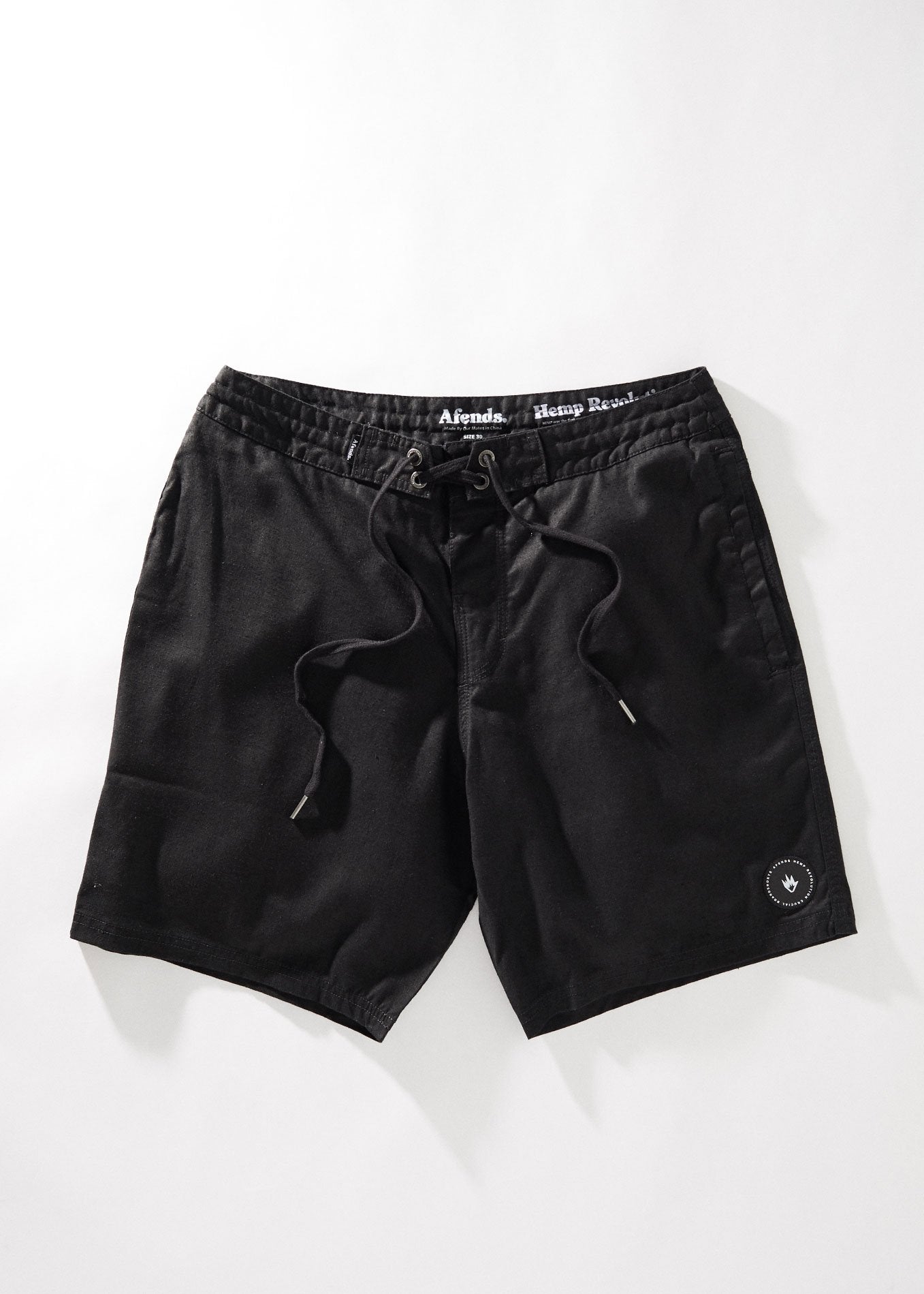 Afends Mens Hemp Crucial - Hemp Fixed Waist Boardshort - Black