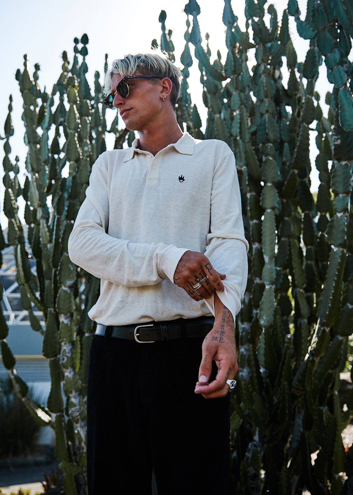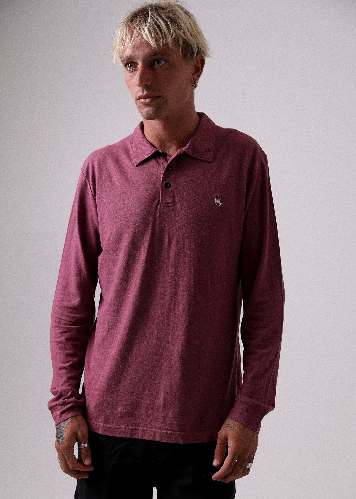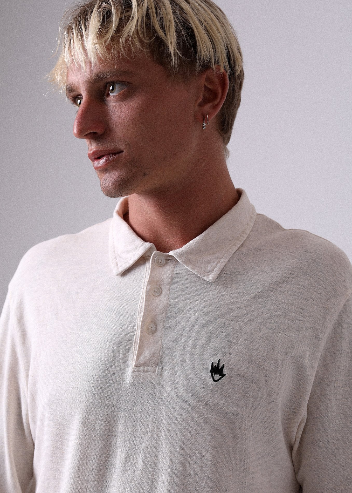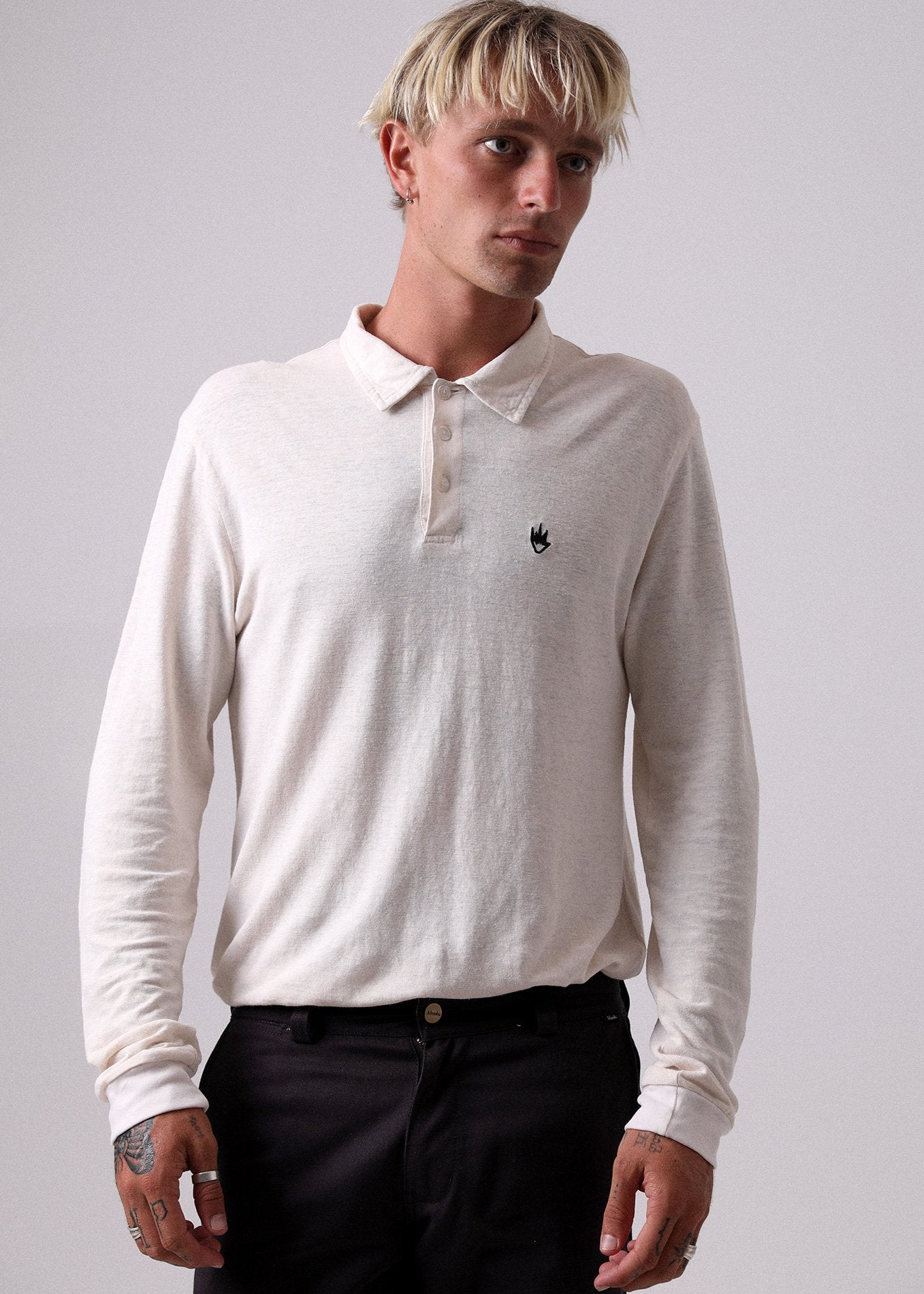 We've combined hemp & organic cotton to bring you our Flame long sleeve polo tee. Yeah lad.
