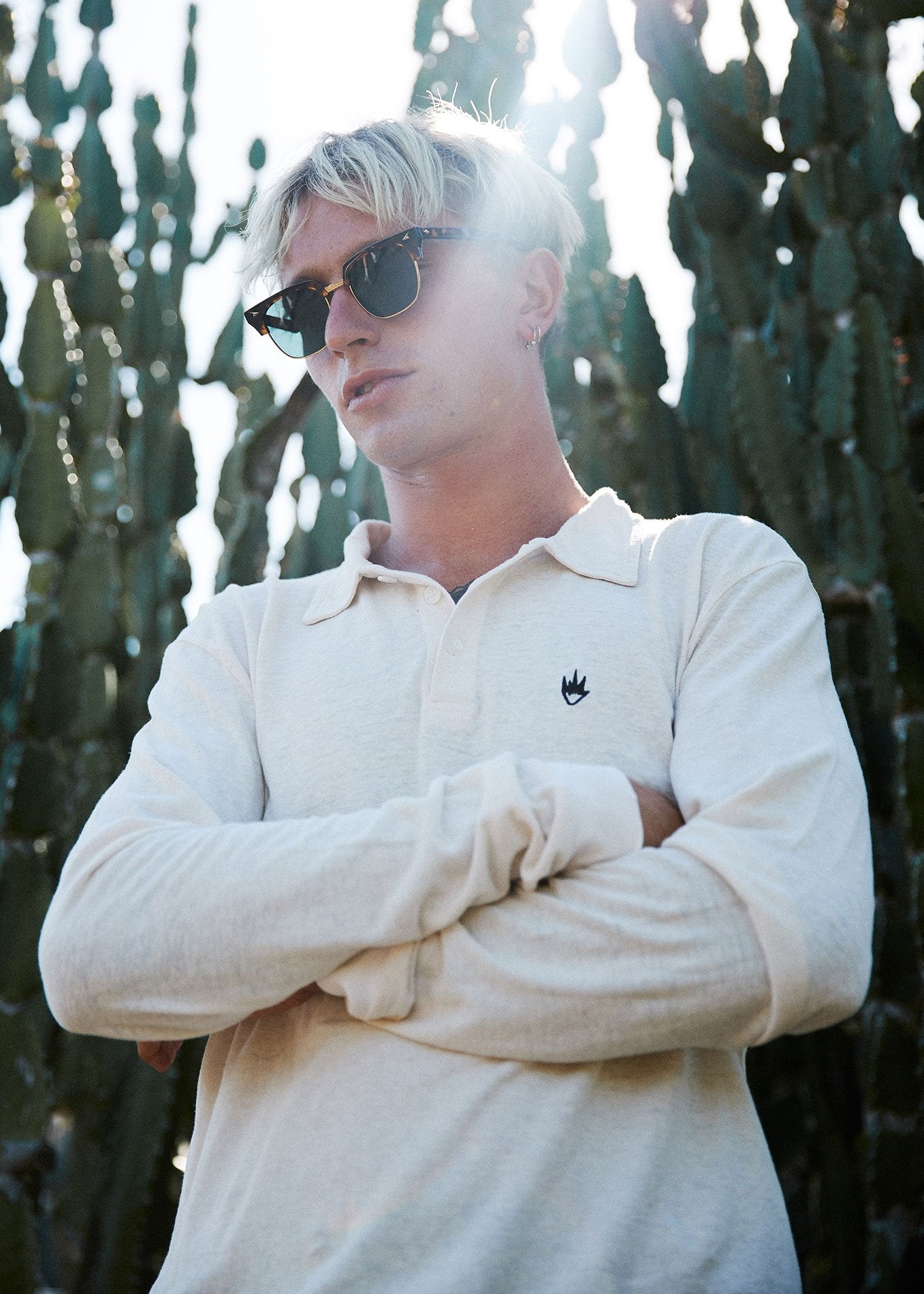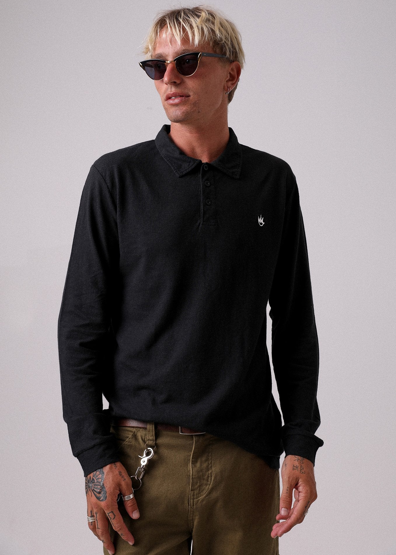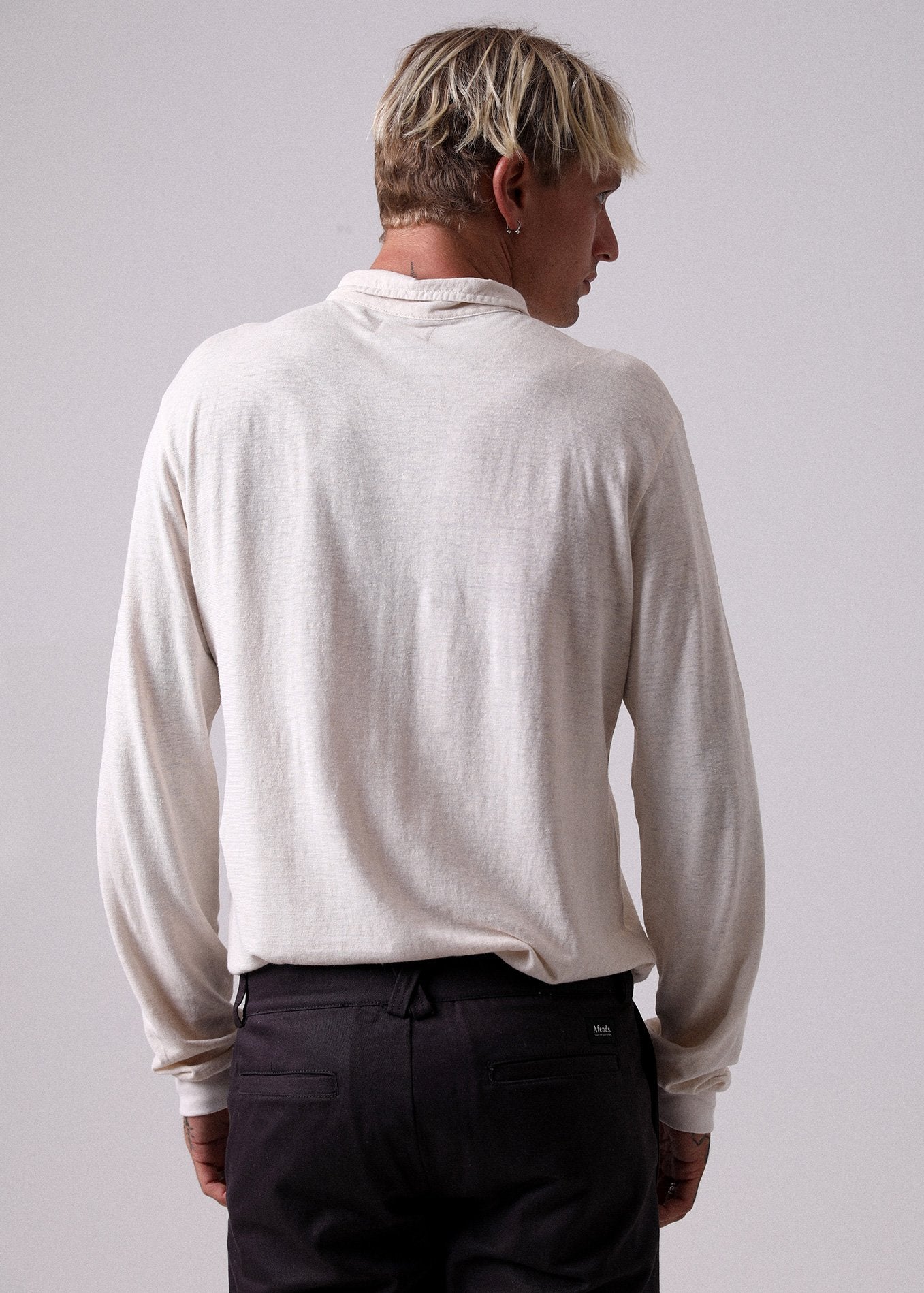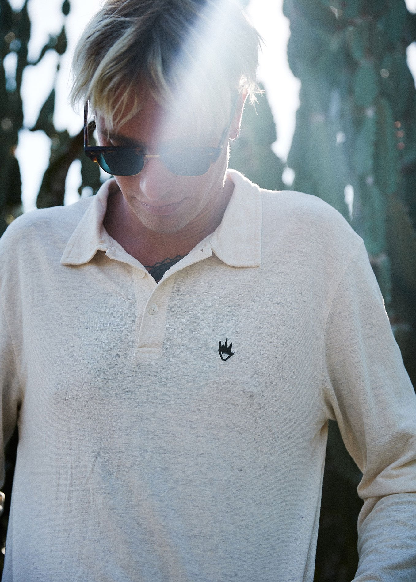 We've combined hemp & organic cotton to bring you our Flame long sleeve polo tee. Yeah lad.