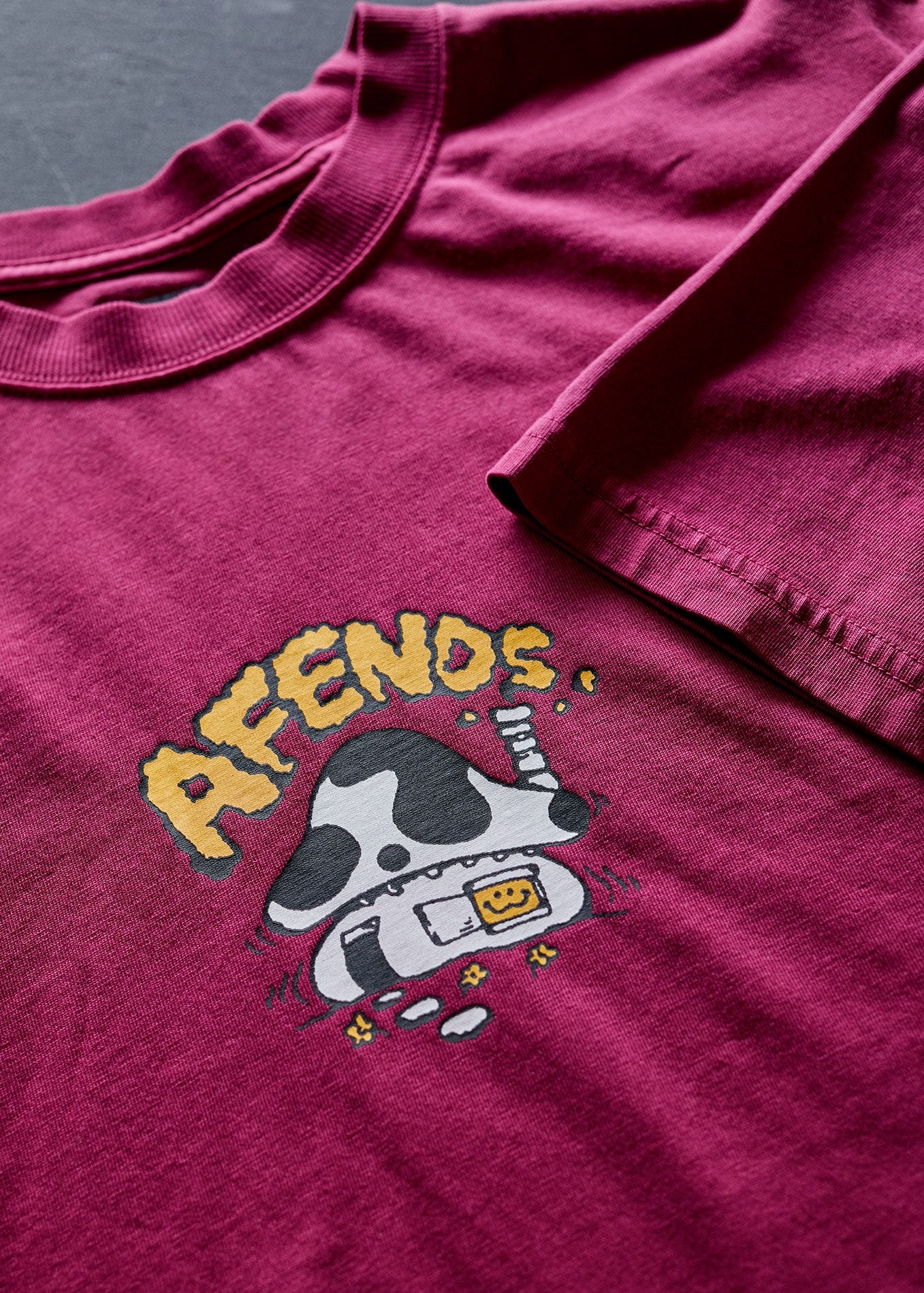 Crafted from midweight cotton jersey in our fave retro fit with a thicker ribbed crew neck and short sleeves, the House of Smiles t-shirt is finished with a pigment-dyed overwash for that true vintage feel.