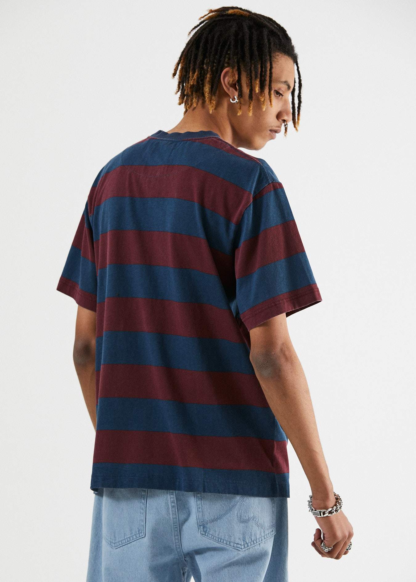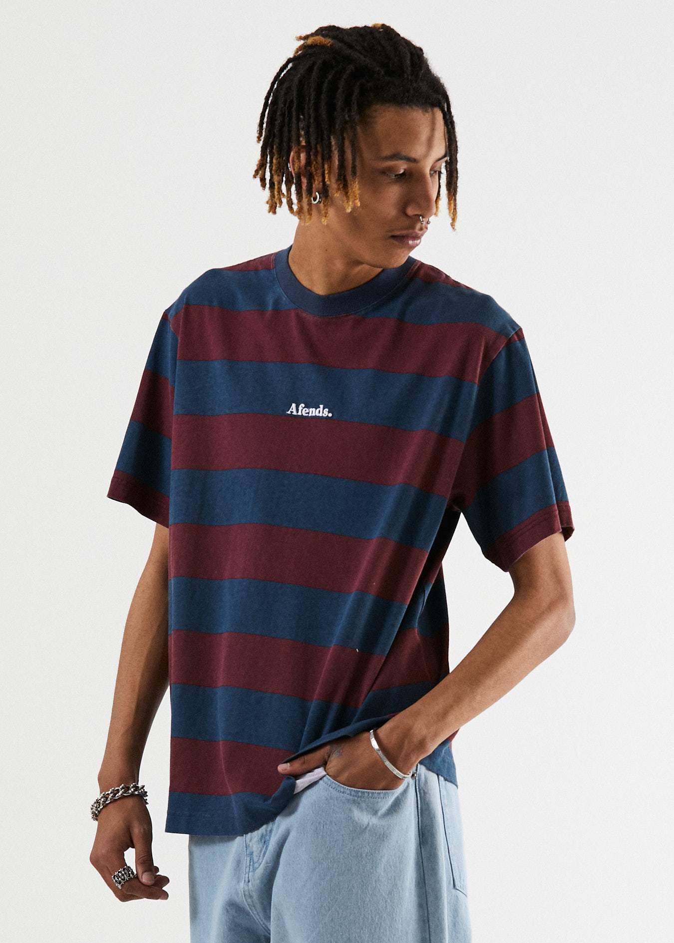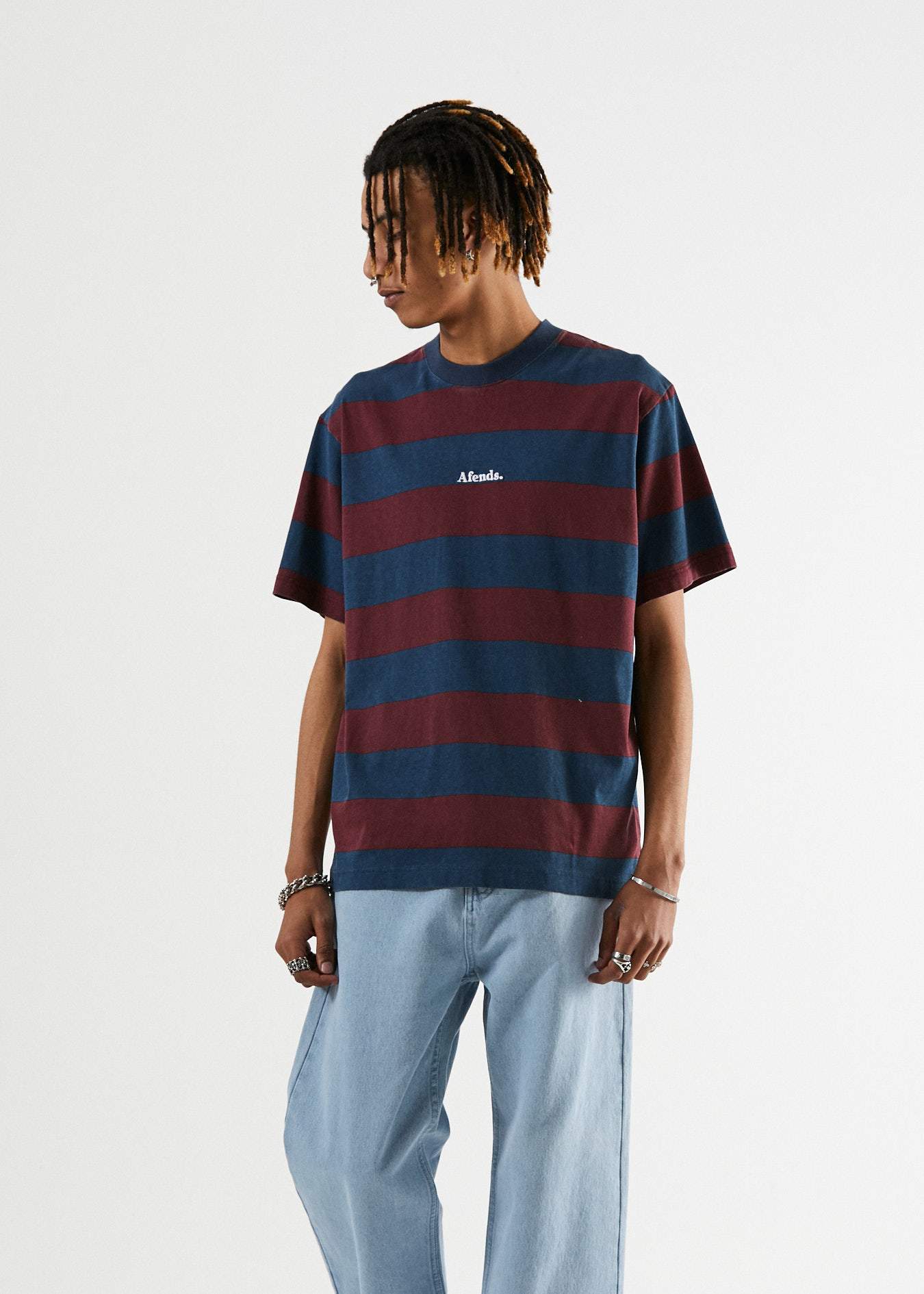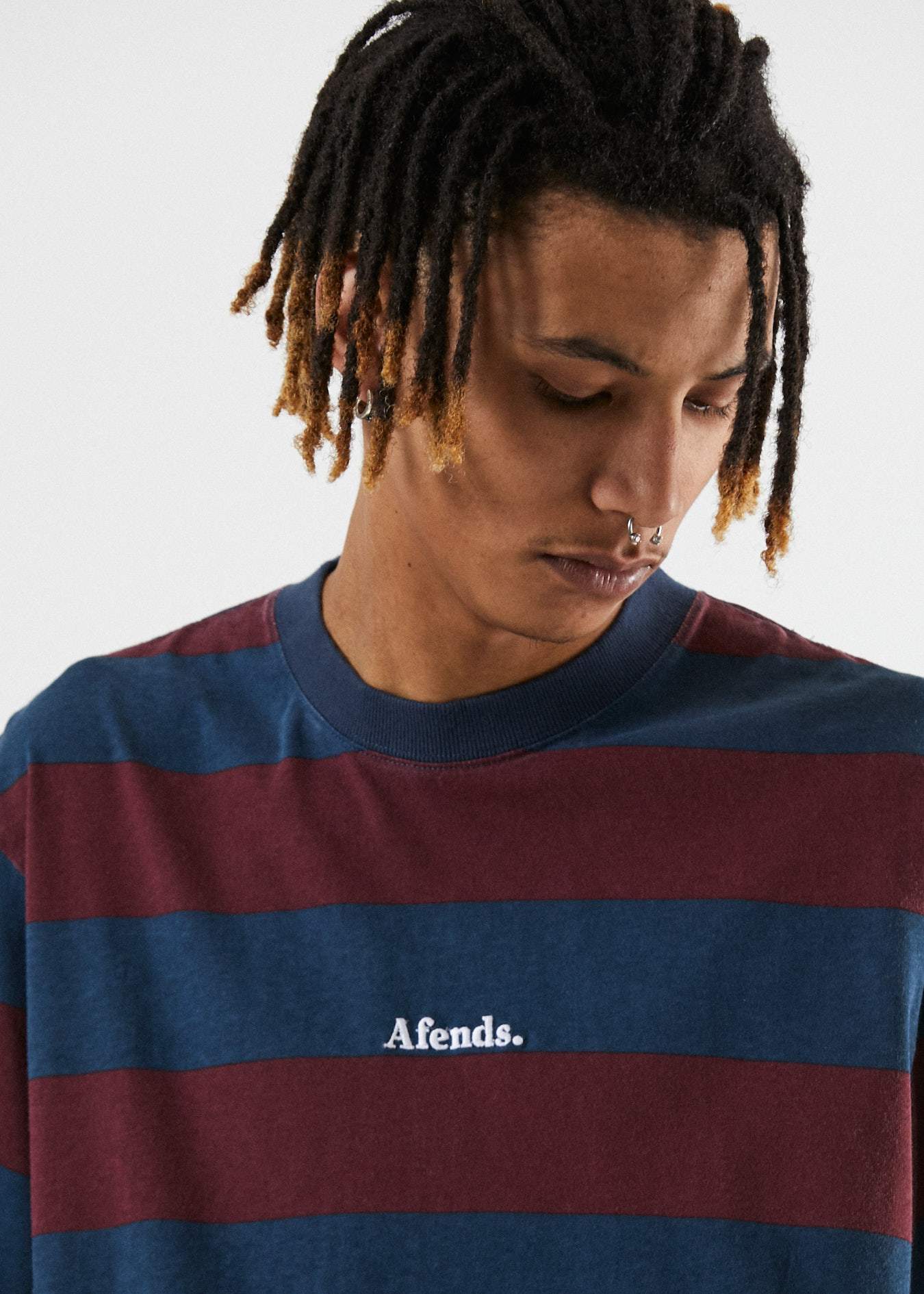 Our signature short-sleeve retro fit tees sport a wider boxier fit and higher ribbed crew neck for an authentic vintage look. Finished with centre front Afends embroidery in a bold retro stripe, this stripe t-shirt is the perfect addition to your everyday line-up.