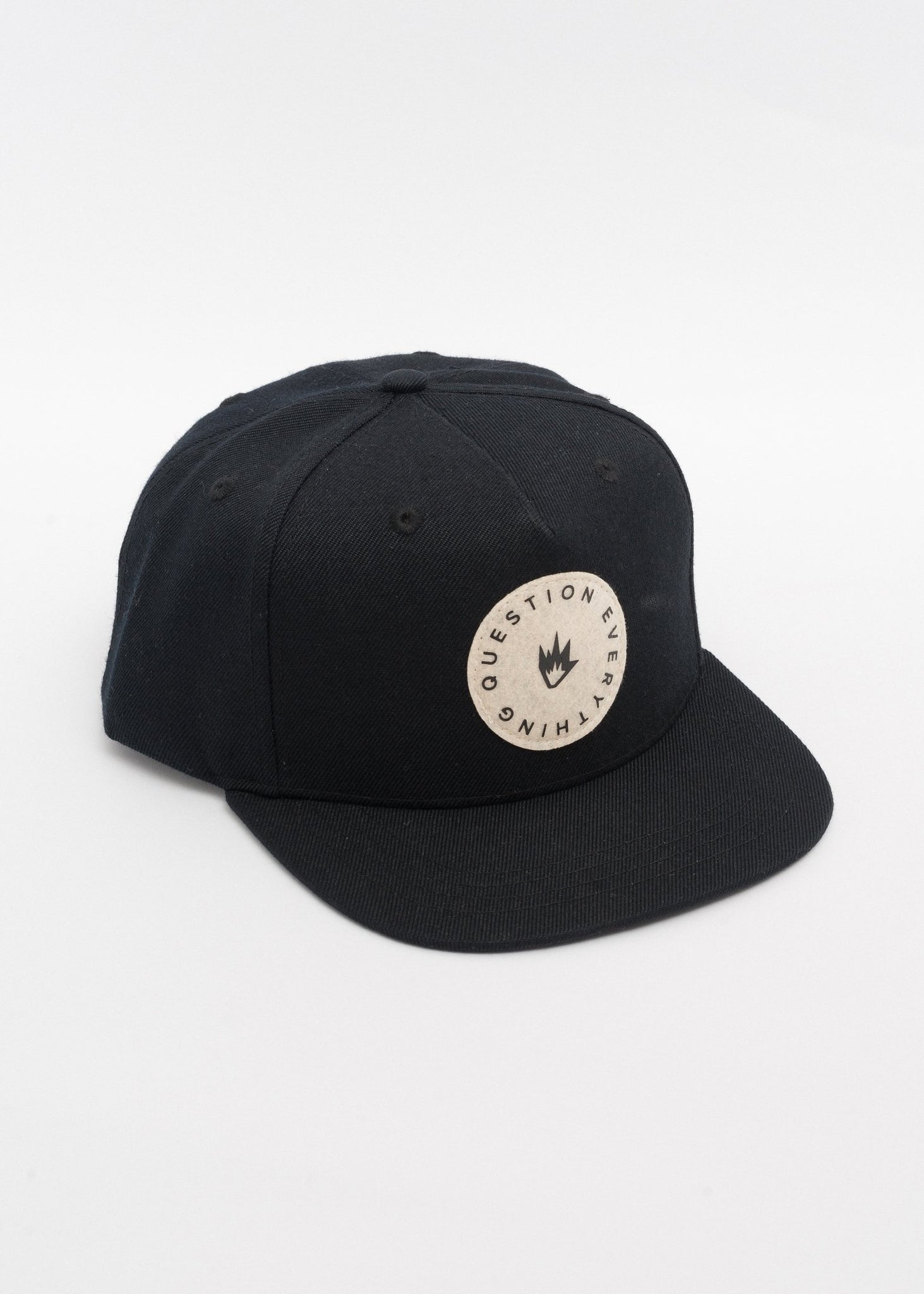 'Our International Snapback Cap is structured design featuring our 'Question Everything' patch front and center