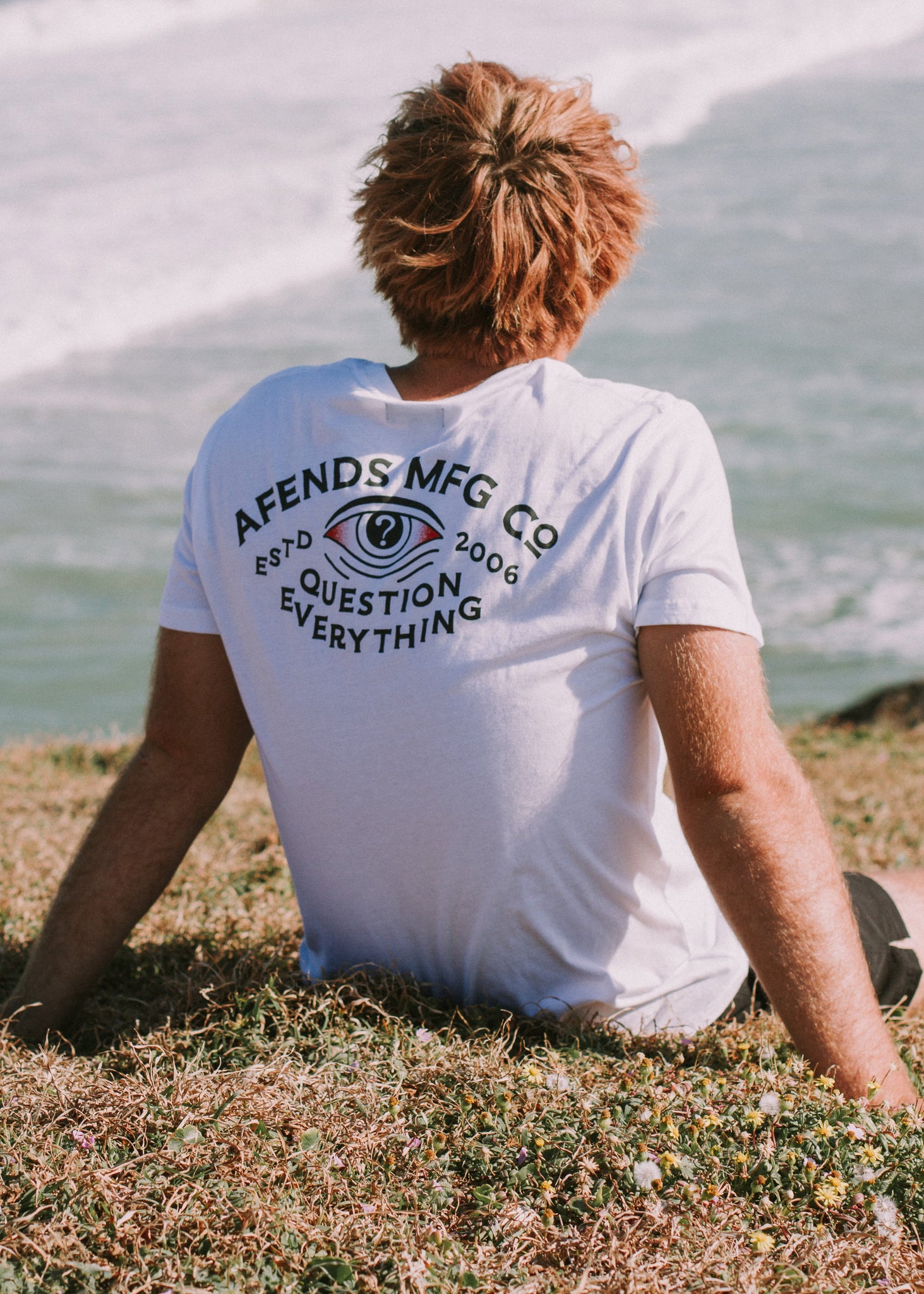 Our mens IYE tee comes in our classic Afends standard cut and features a back and left chest printed graphic