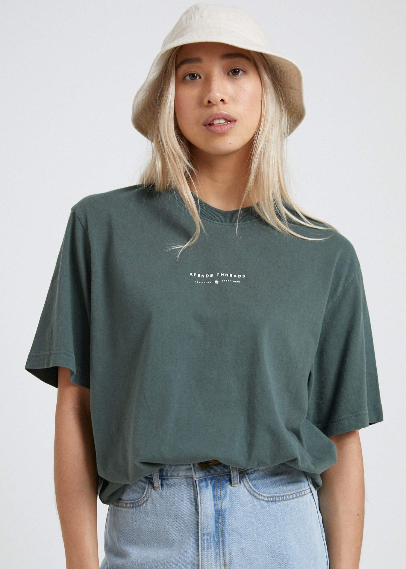 In our best-selling retro fit, you can expect a boxier fit with a higher ribbed crew neck for that sought after vintage style. Finished off with Afends logo printed front and centre, this top is always an easy decision.