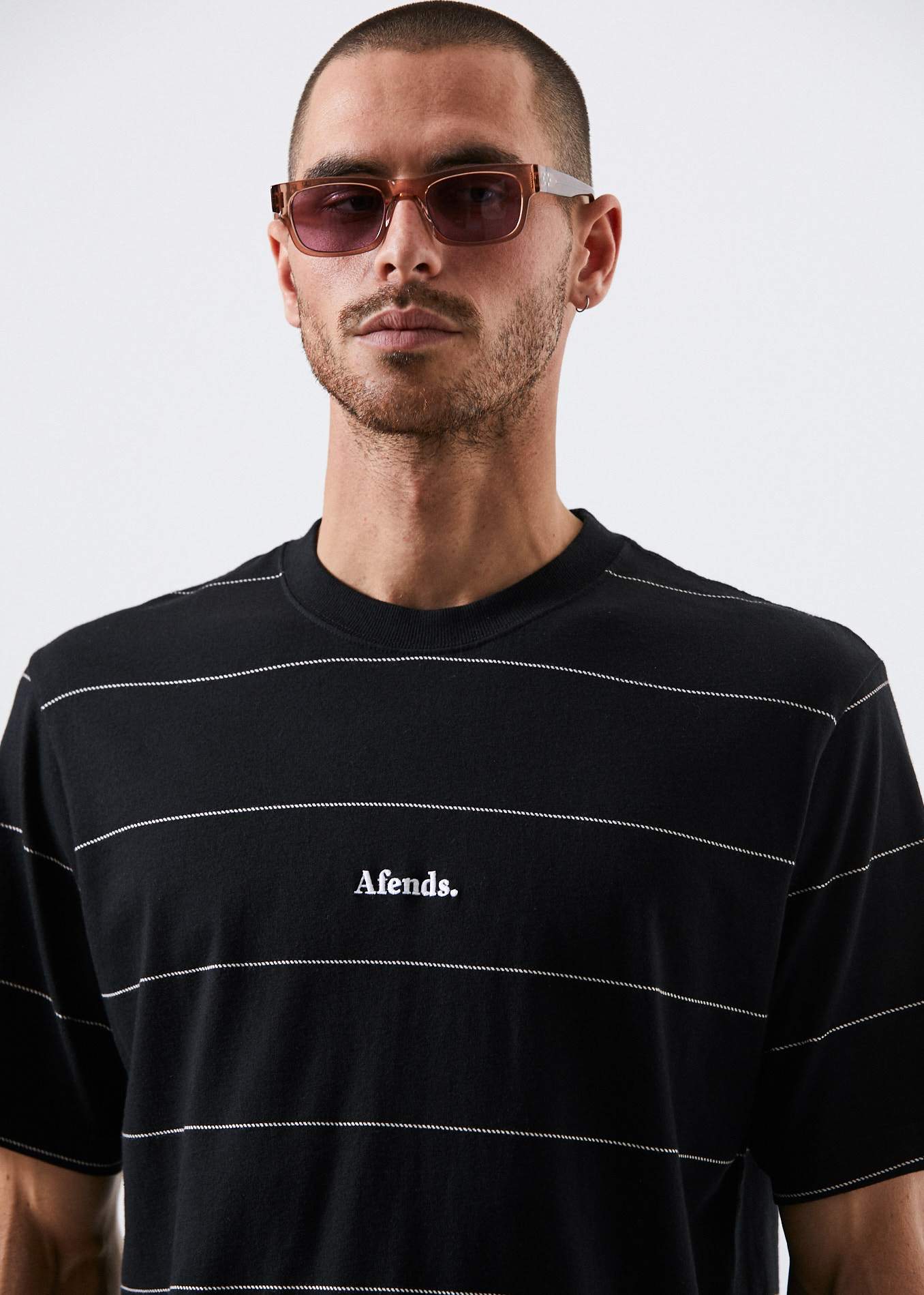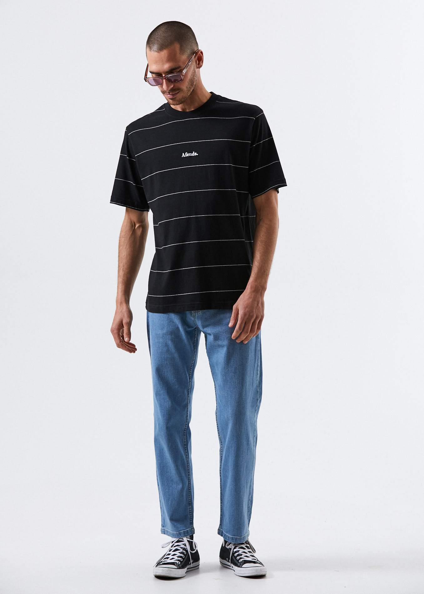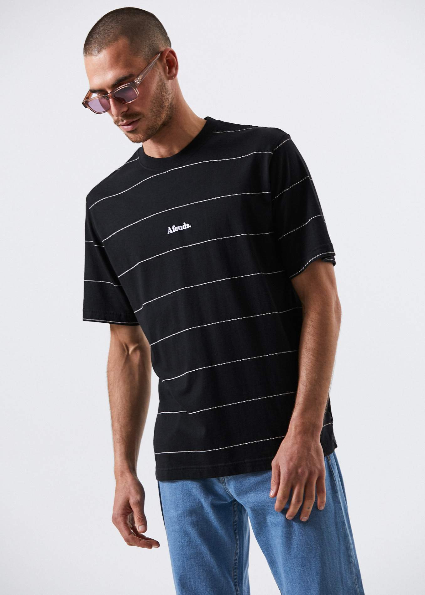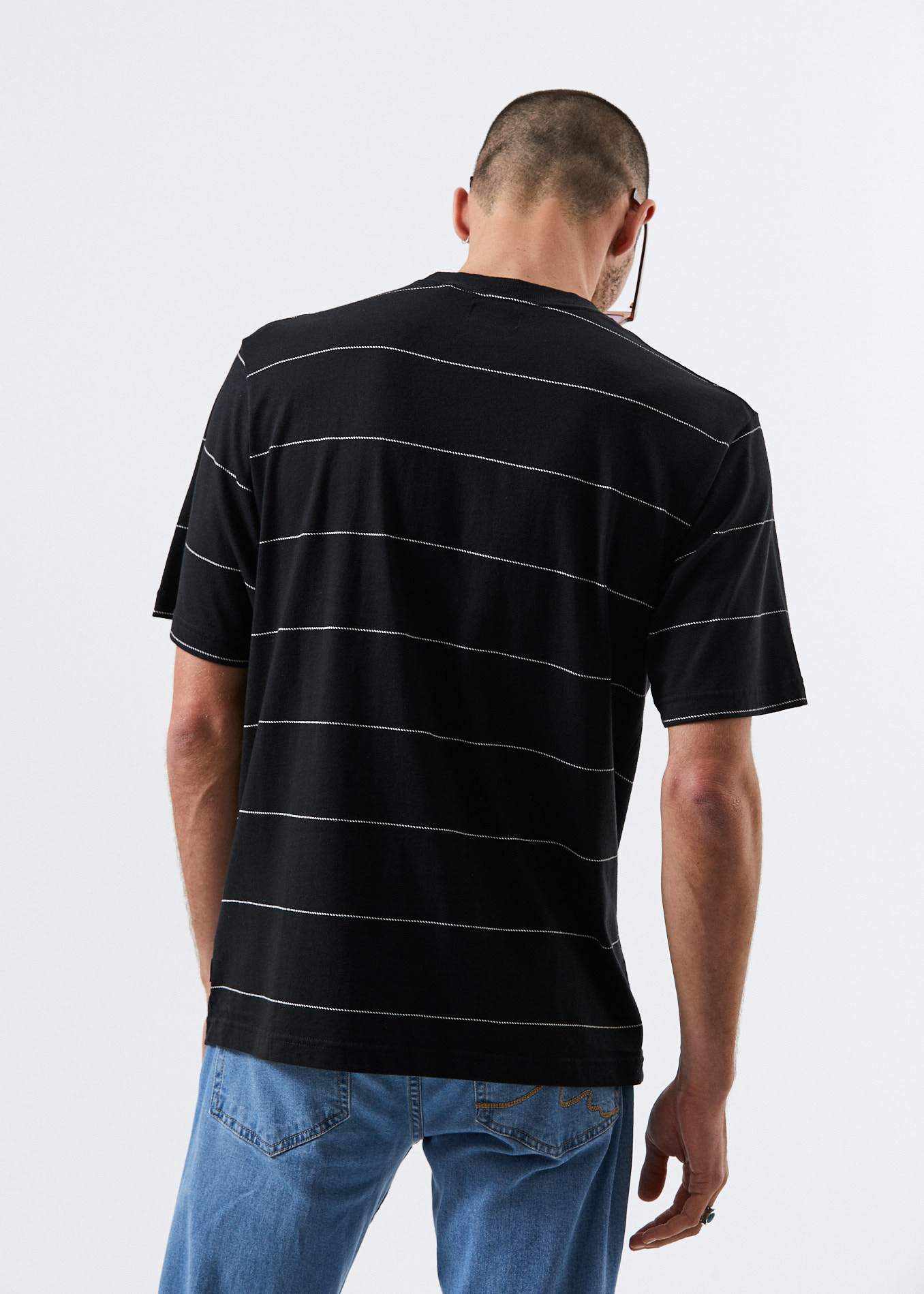 The Leasure Retro Fit Tee is spun from midweight cotton jersey and features all-over monochrome printed stripe. Designed in our favourite short sleeve retro-fit with a thicker ribbed crew neck for maximum comfort.