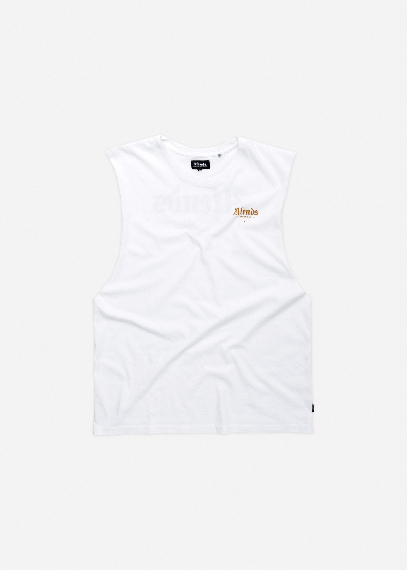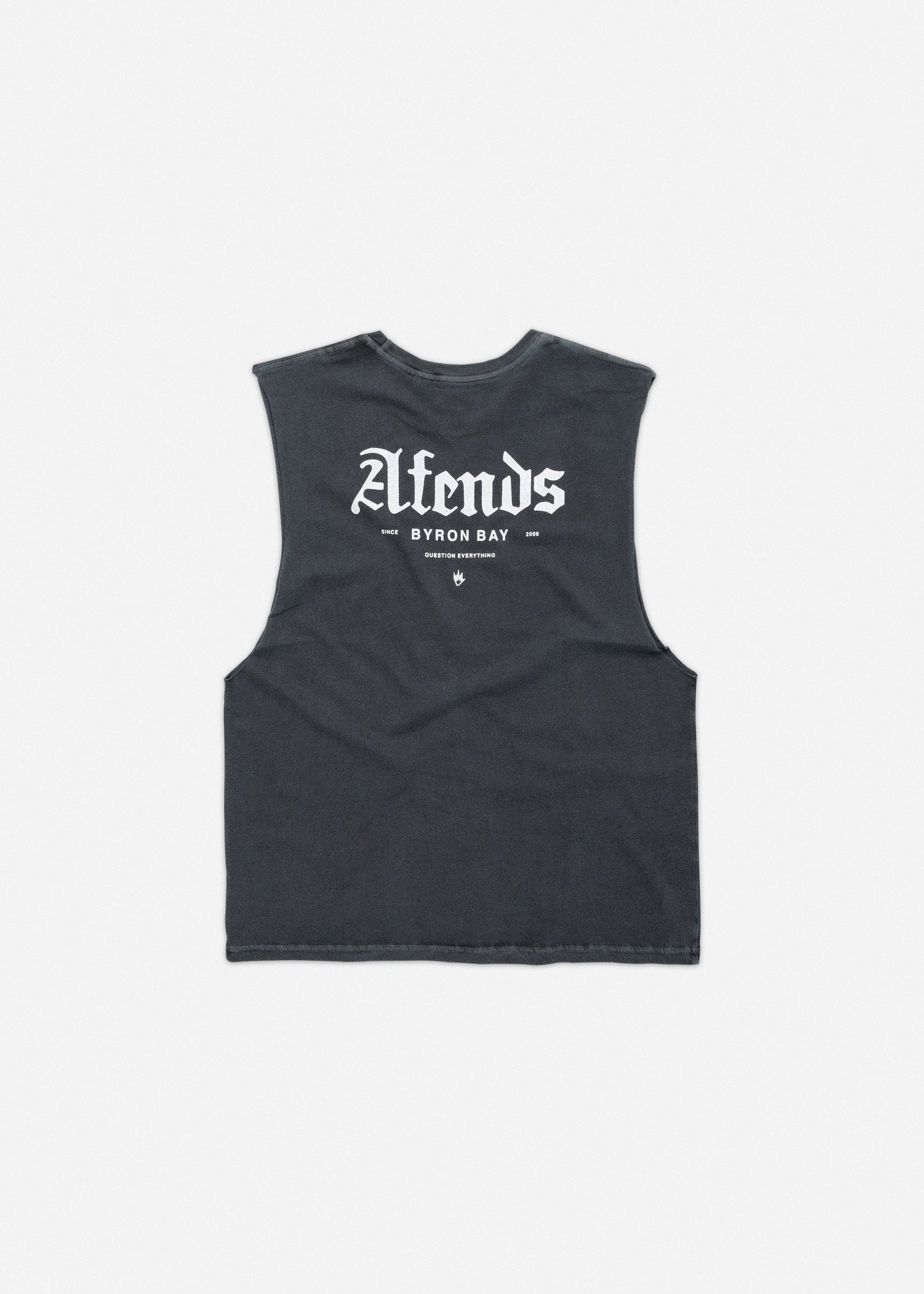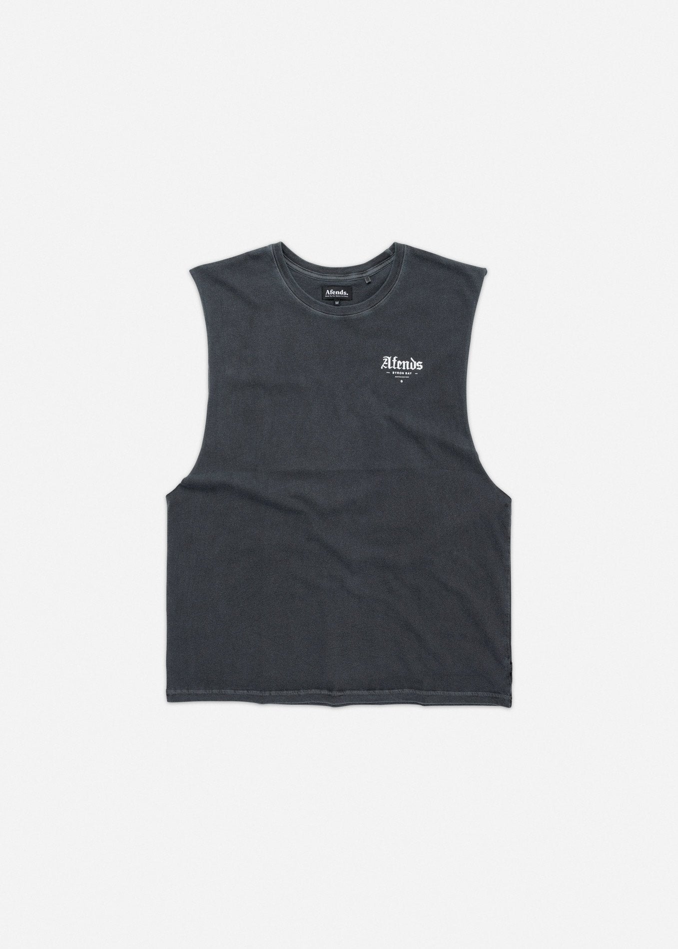 Show us your guns. The Lord Byron is a classic band cut tee, featuring a cut off sleeveless style with raw armholes and a ribbed neck band.