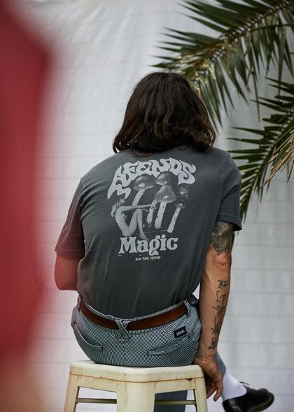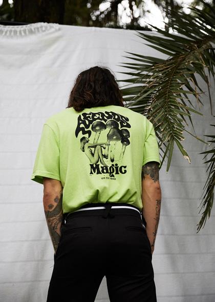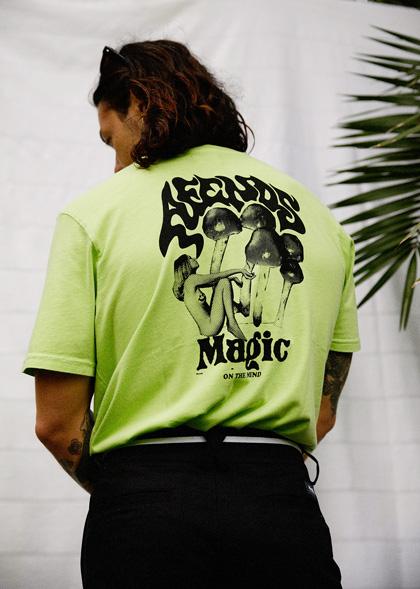 Our Magic Mushroom, a super lightweight, standard fit tee made from 100% Cotton Jersey.