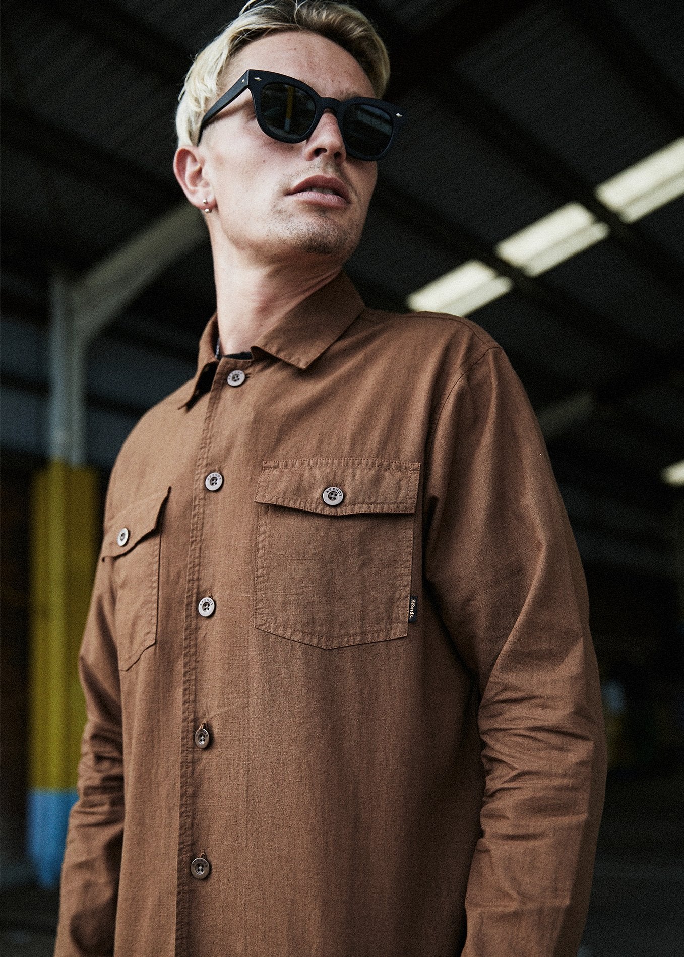 The Afends Maverick Hemp Work Shirt is our oversized utility inspired long sleeve shirt. Spun from our eco-friendly Hemp and Organic Cotton blend, it ensures the shirt is insanely durable, lightweight and breathable.