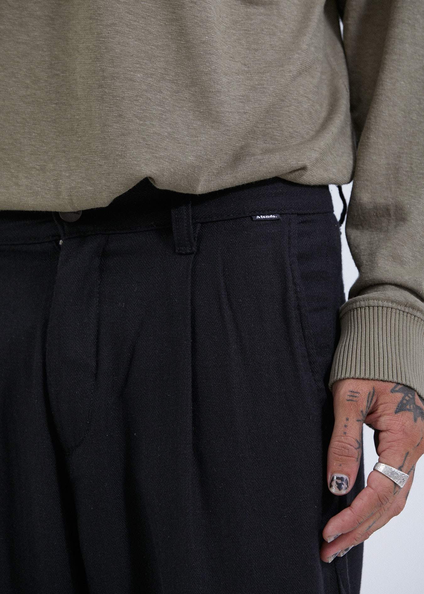 They're our go-to thanks to the relaxed straight leg with front pleats, fixed waistband with belt loops and four pocket combo. In a timeless black linen herringbone, these are the ultimate all-rounder suit pants ready for any occasion.