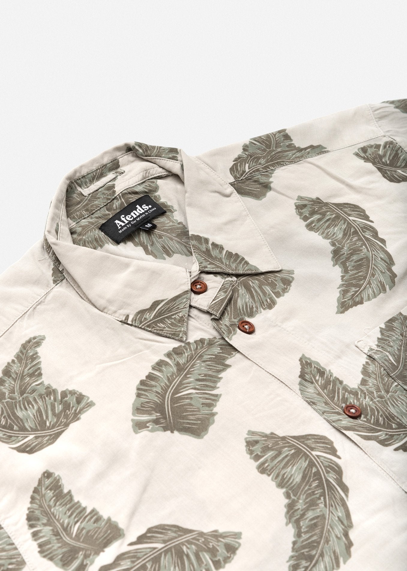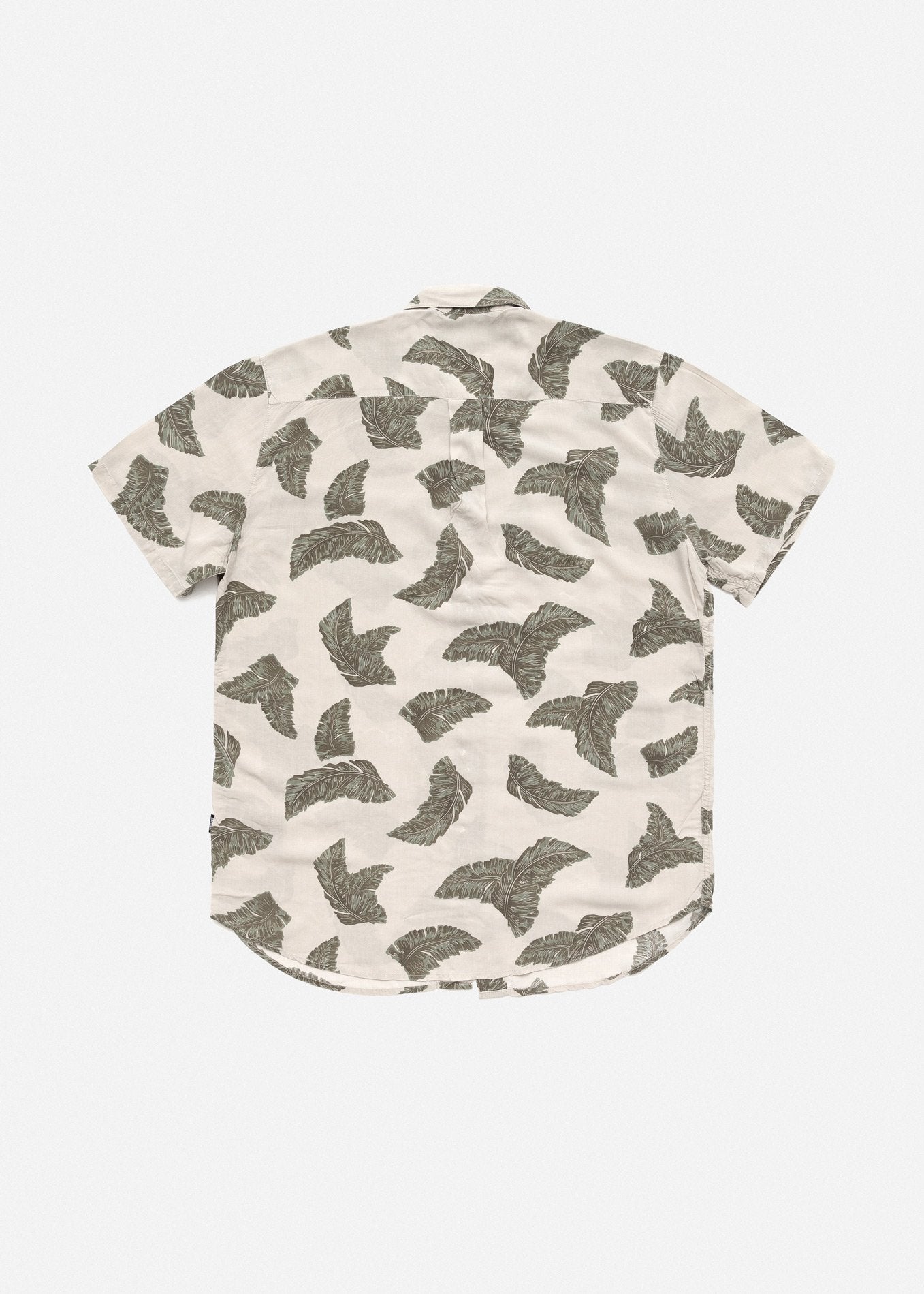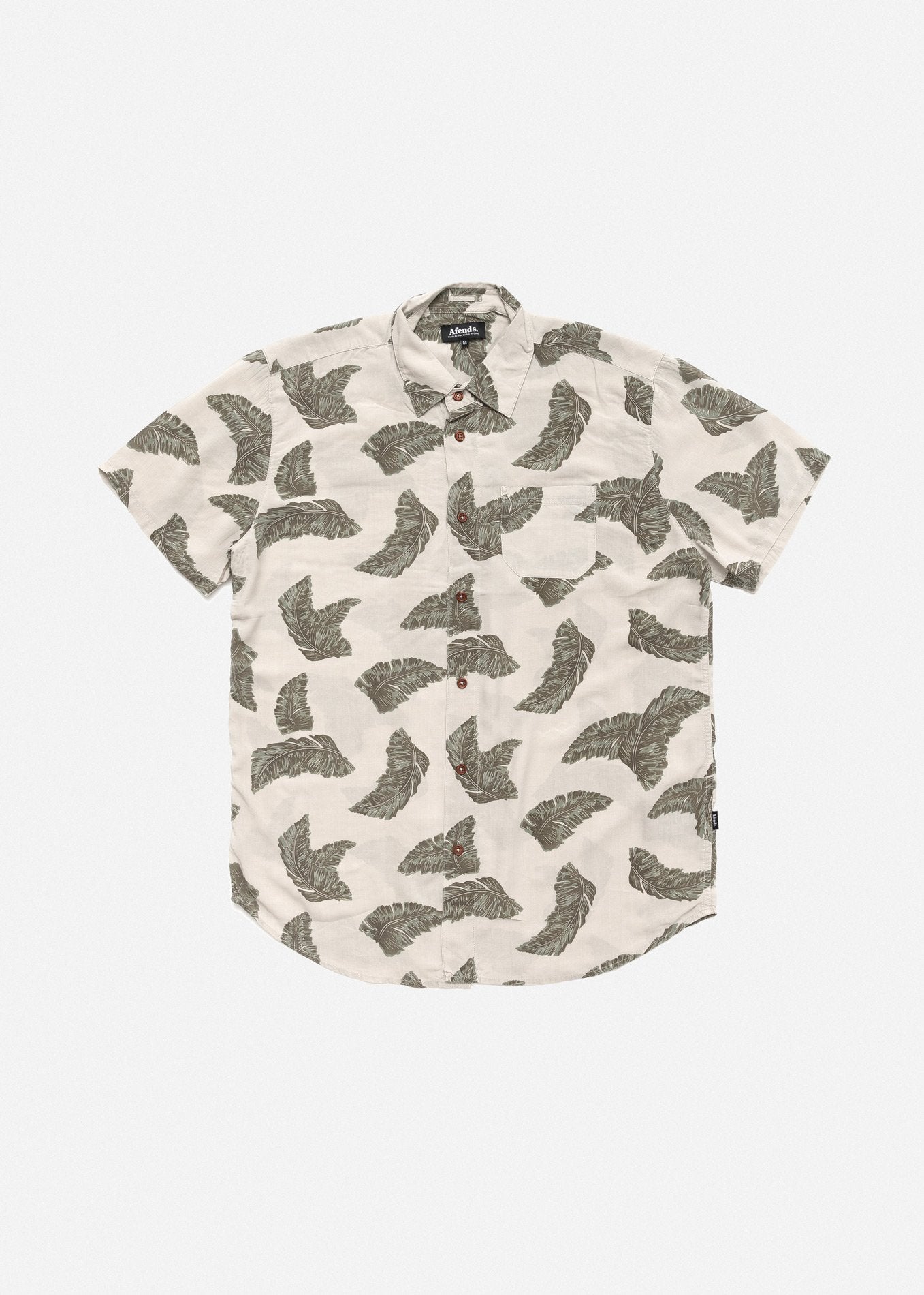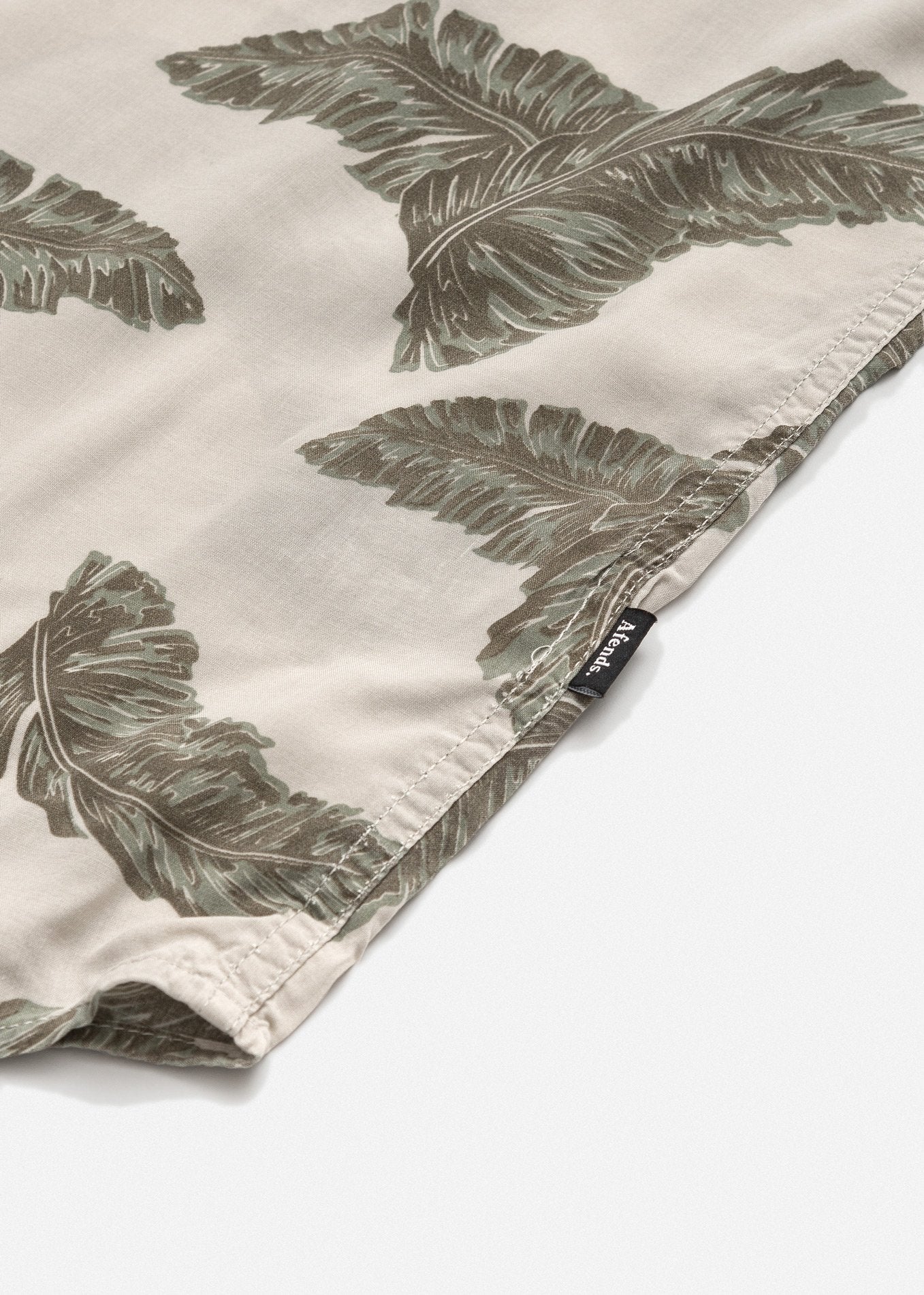 A lightweight, button-up men's shirt with an all-over leafy print, this is the Midnight palms.