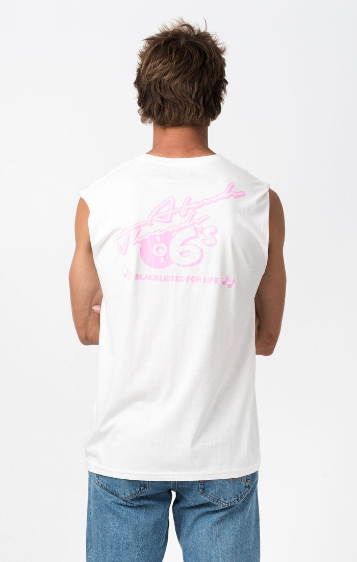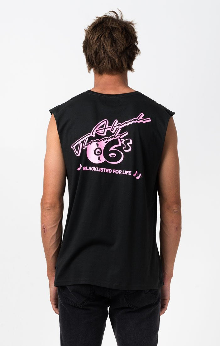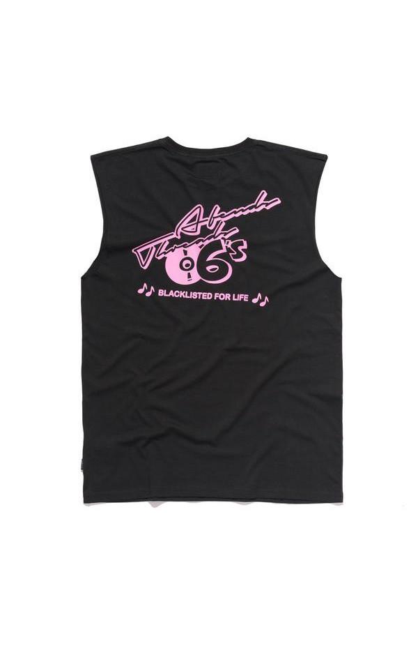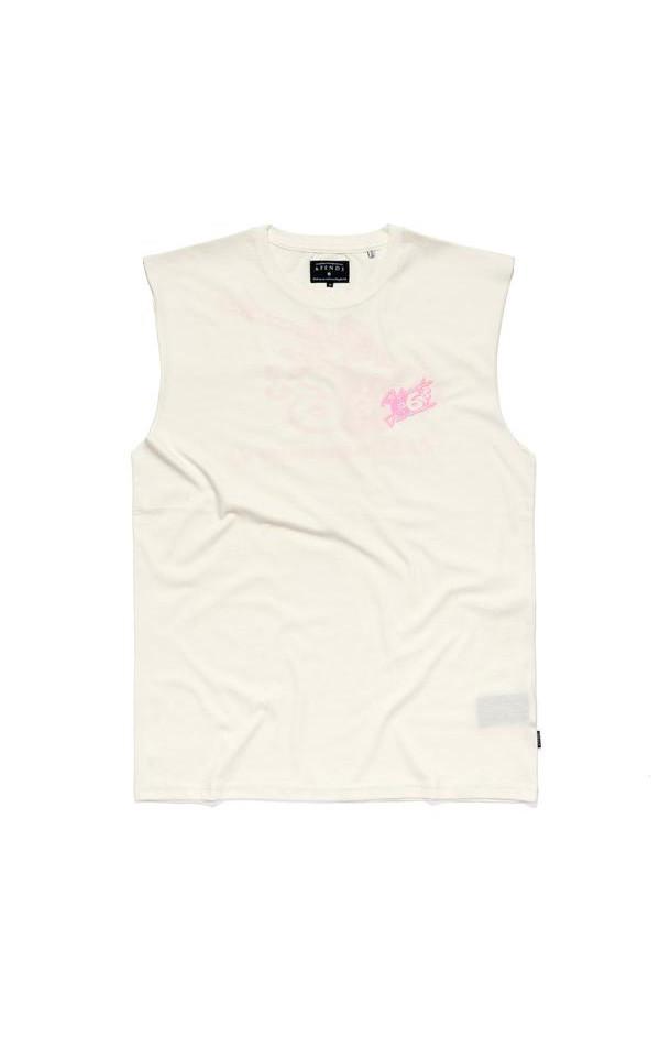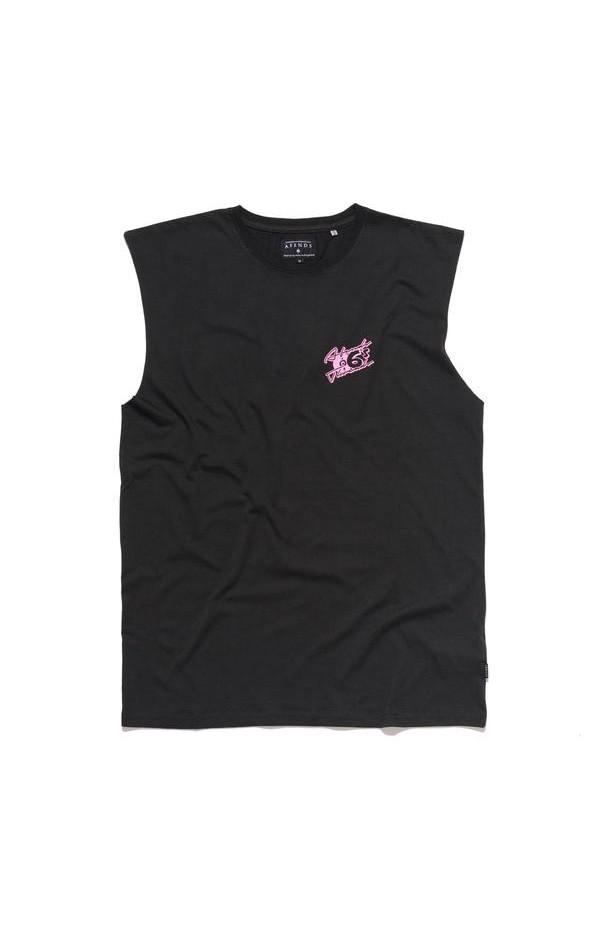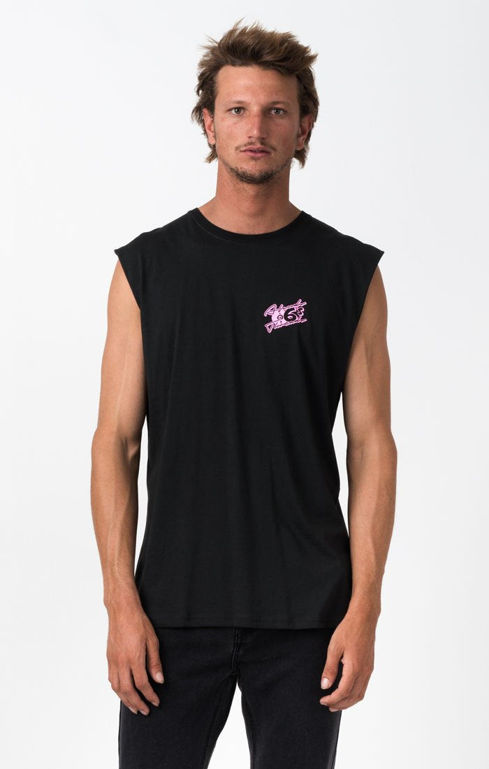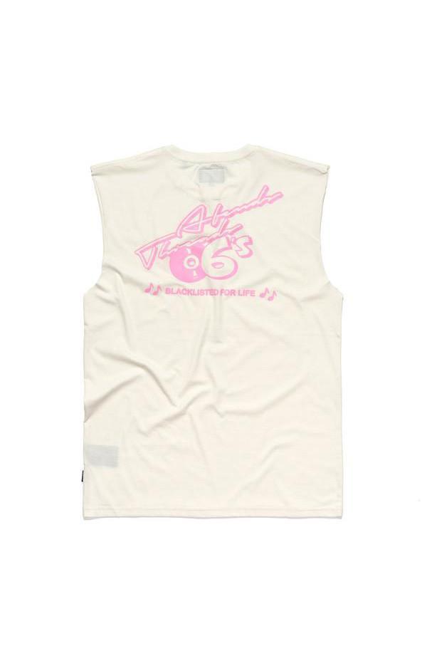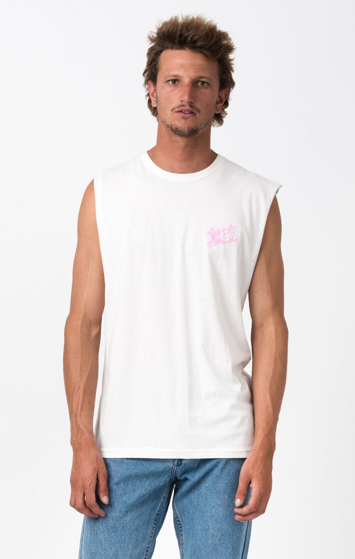 The Afends Retro Bandcut is a looser fitting, shorter, sleeveless tee cut with over-sized raw-edge armholes and cotton ribbed neck band.|
