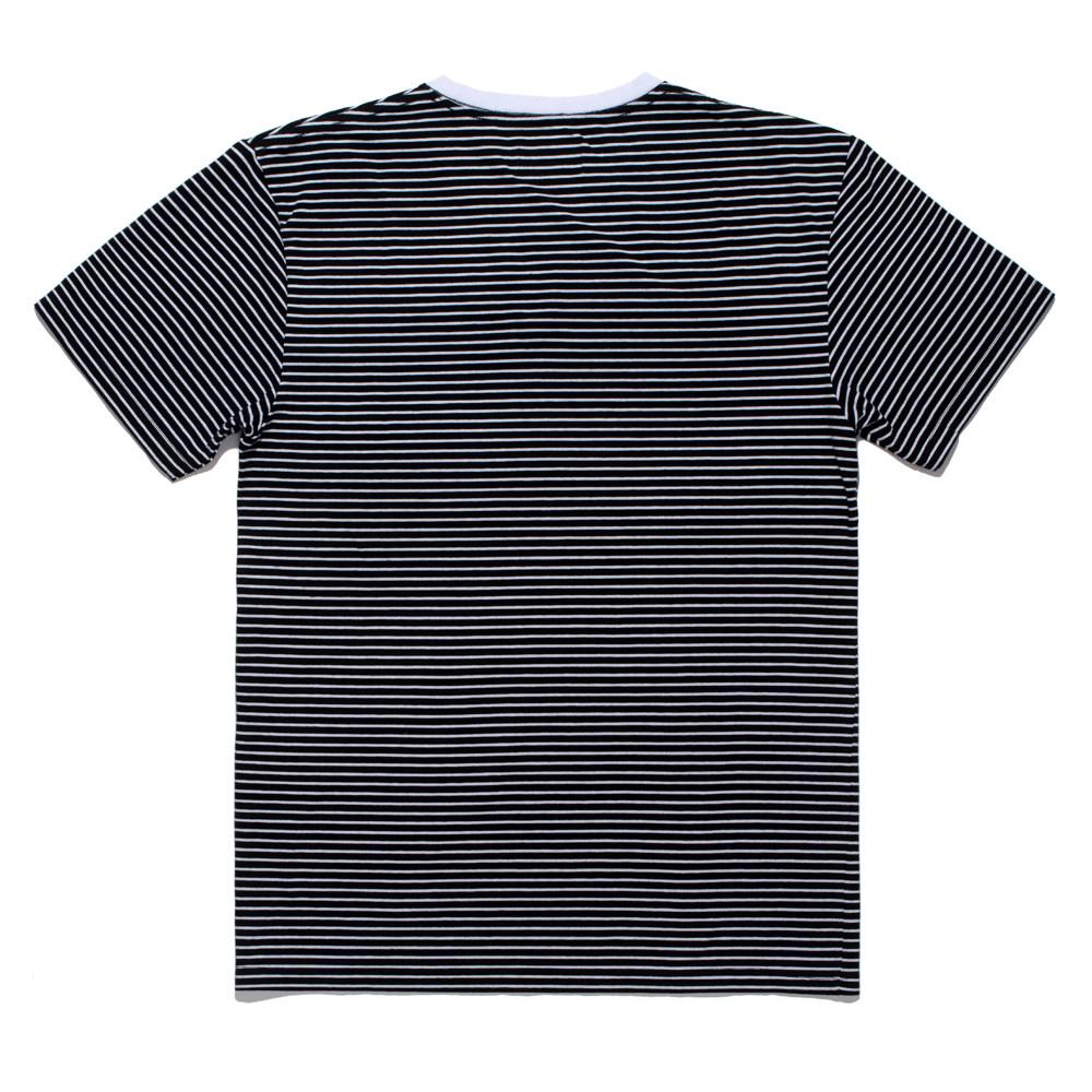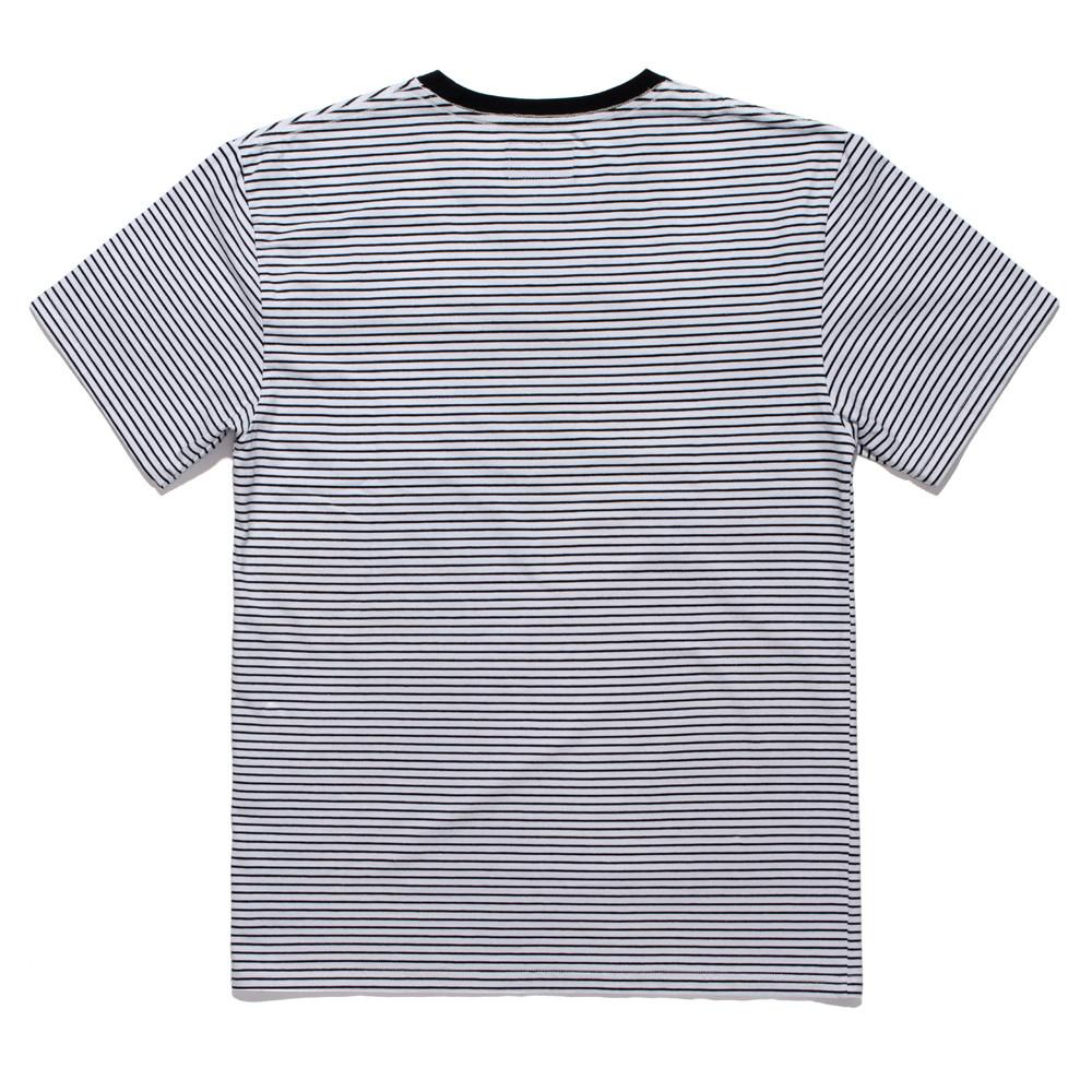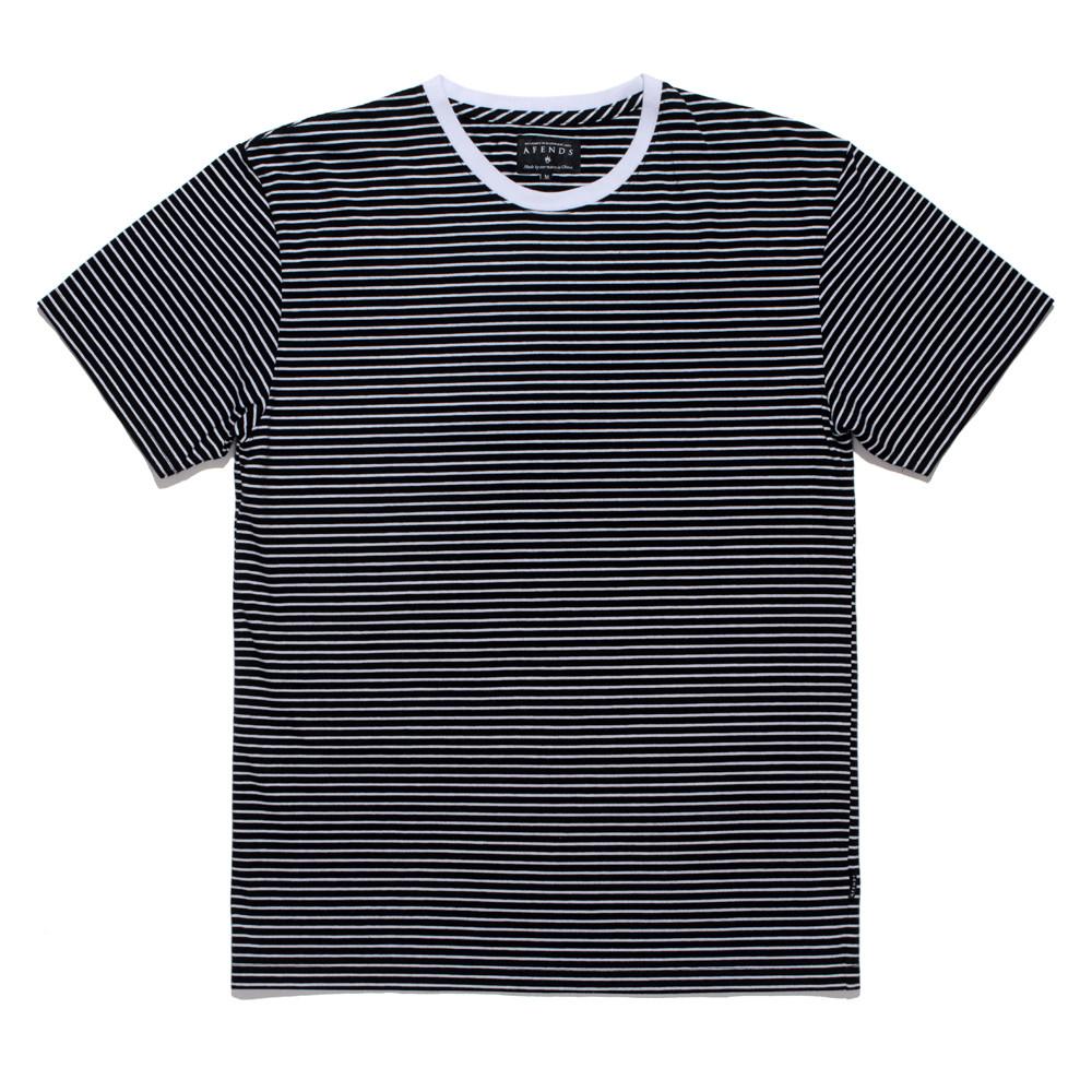 The Afends Stripe Tee is a tailored cut with fitted sleeve and narrow cotton rib collar band.