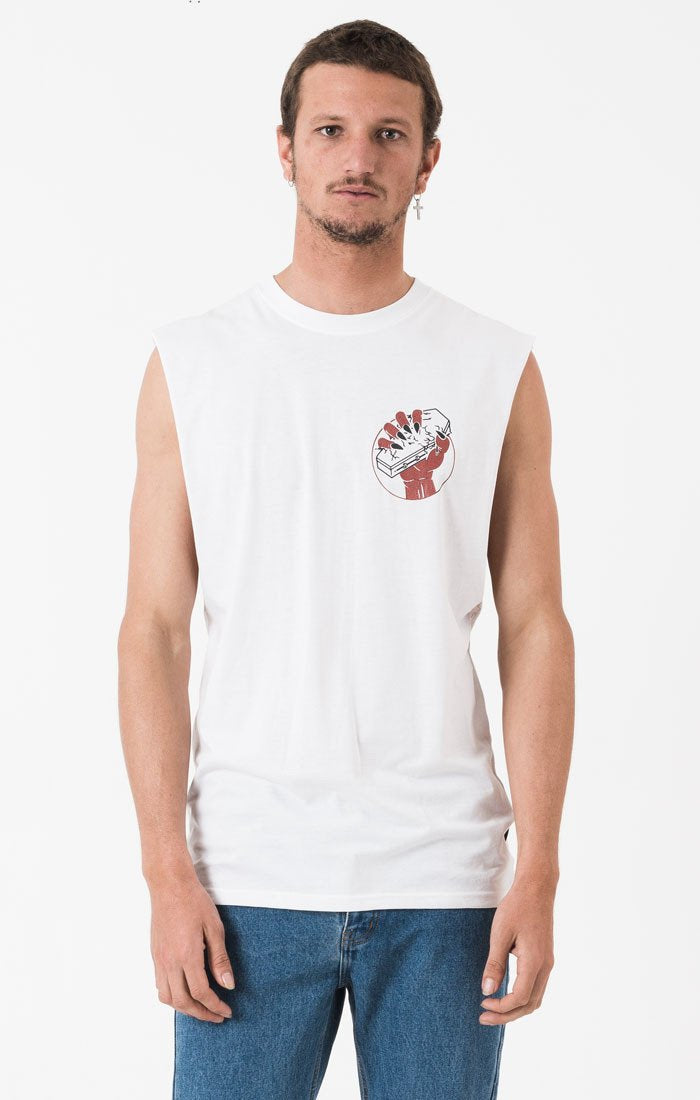 The Afends Bandcut is a comfort fit, sleeveless tee cut with over-sized raw-edge armholes and cotton ribbed neck band. Cut the same as our 'Slim Fit' tee.|