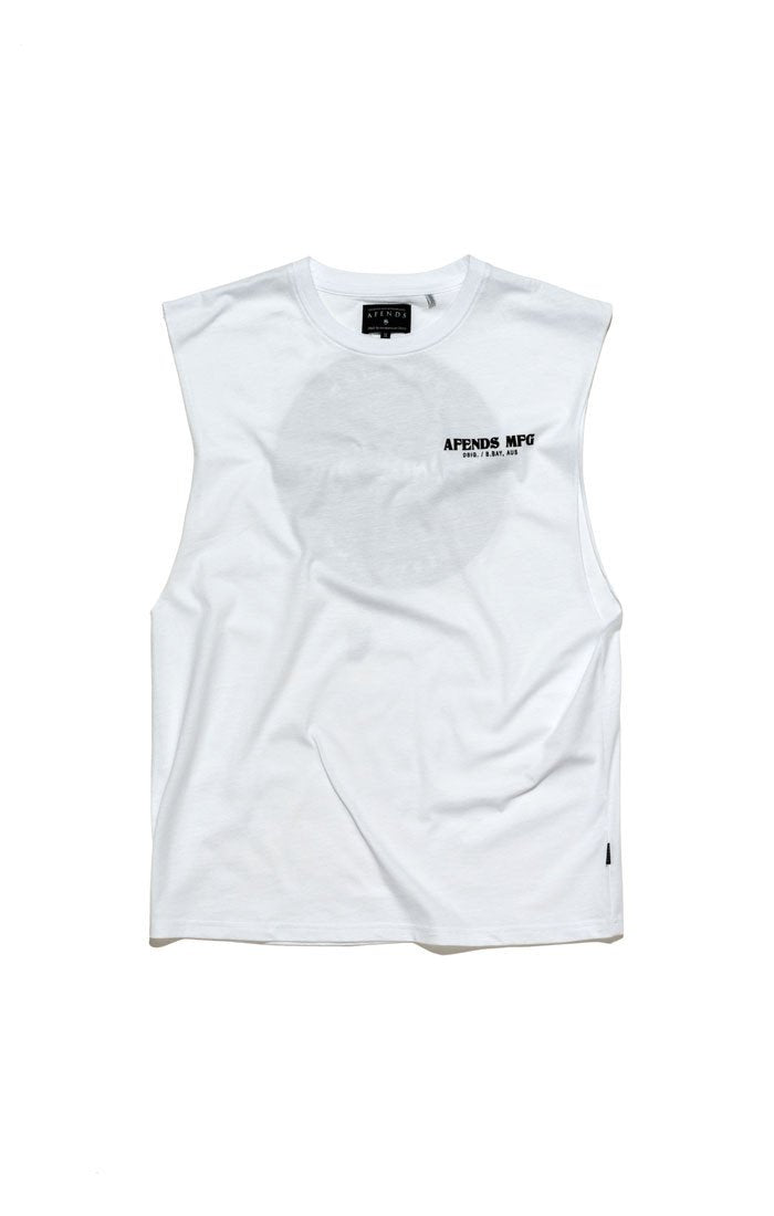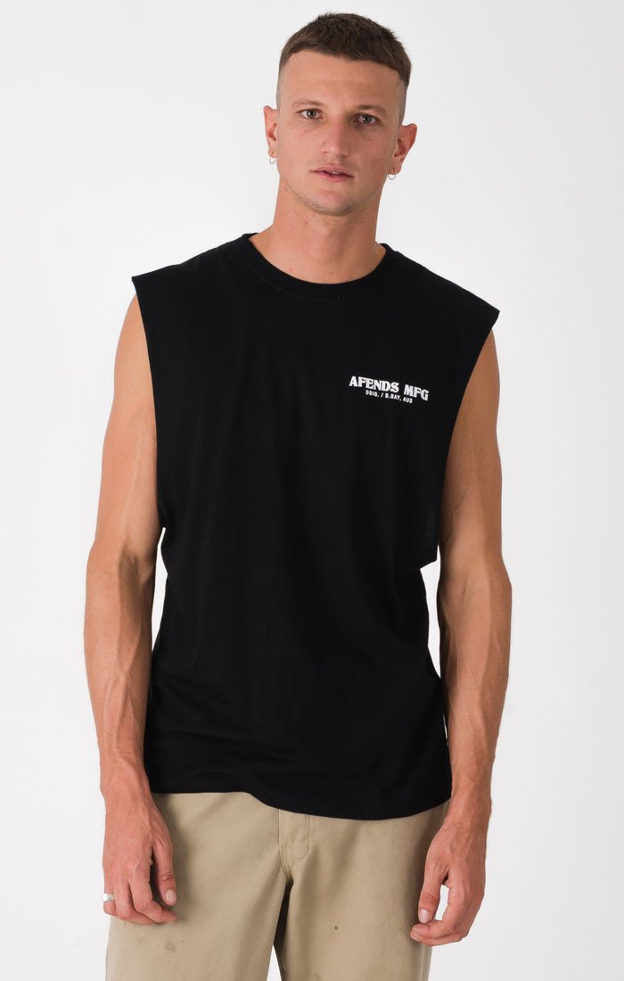 ~The Afends Bandcut is a comfort fit, sleeveless tee cut with over-sized Raw Edge armholes and cotton ribbed neck band. Cut the same as our 'Standard Fit' tee.
