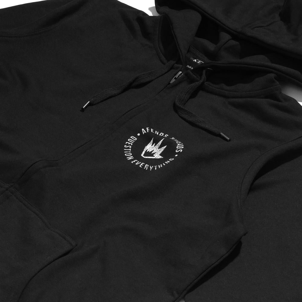 The Afends Zip hood is a loose fitting fleece with drawstrings and front pockets.