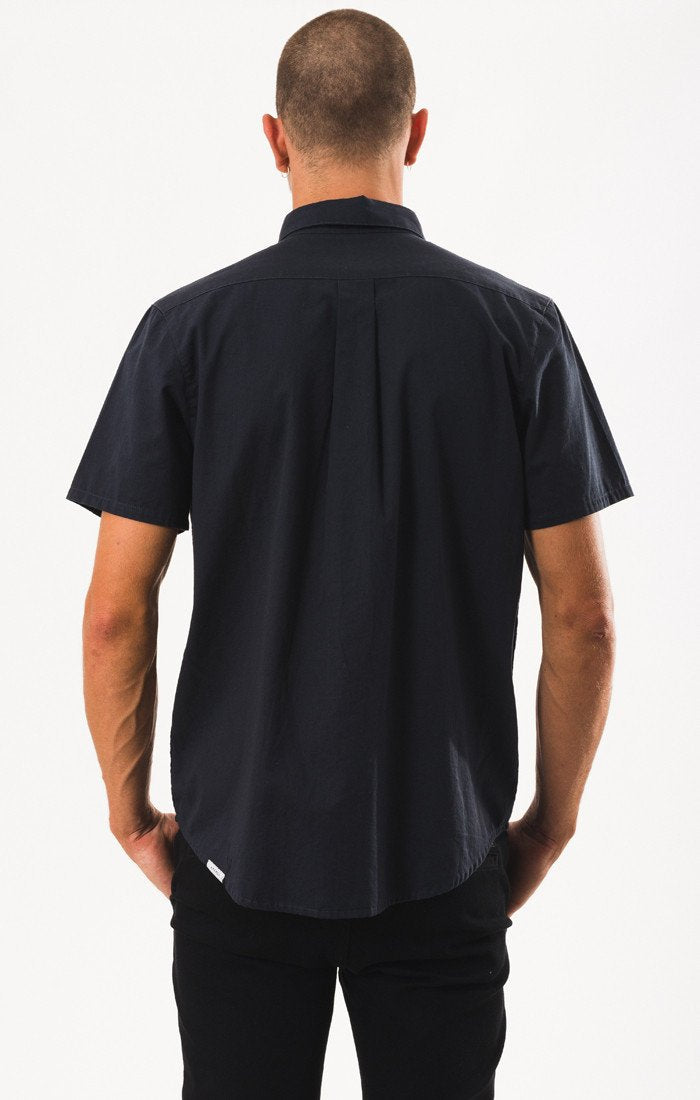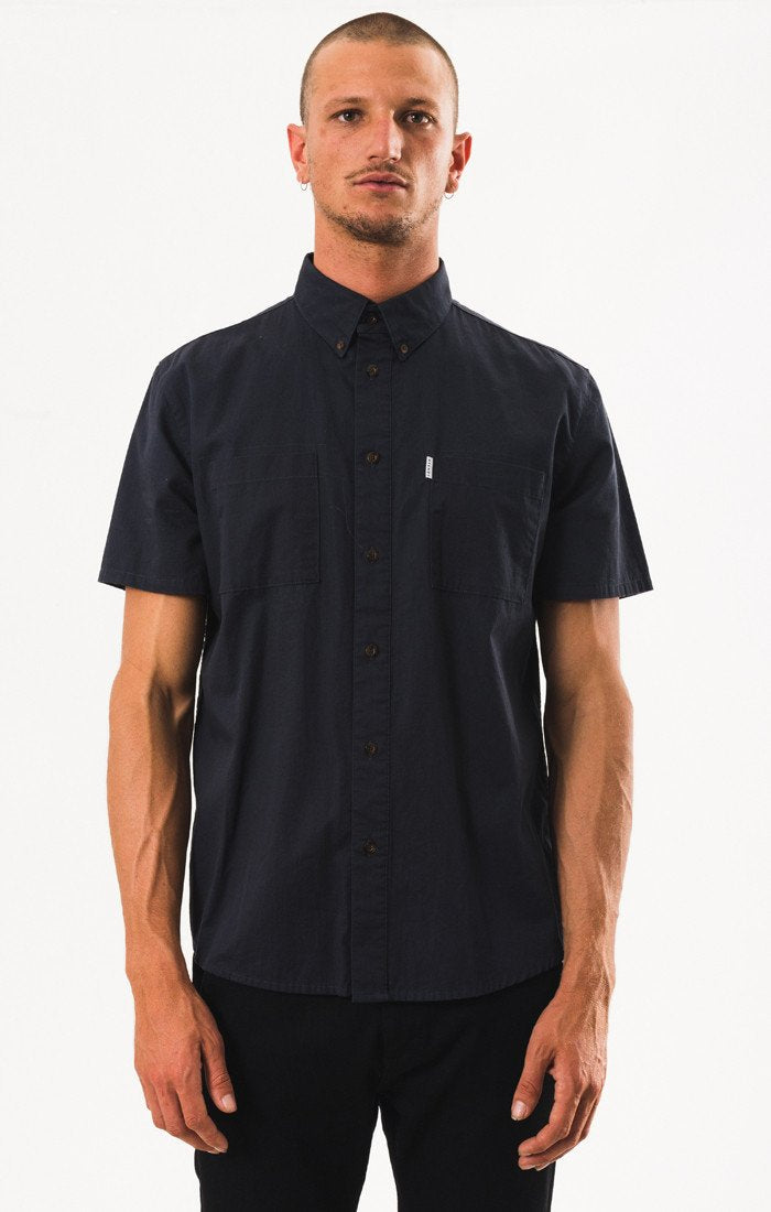 The Afends Short Sleeve Shirt comes with dozens of custom yardage prints, scalloped hem and high collar stand. Some have two chest pockets, others have one or none and they always come with unique buttons.